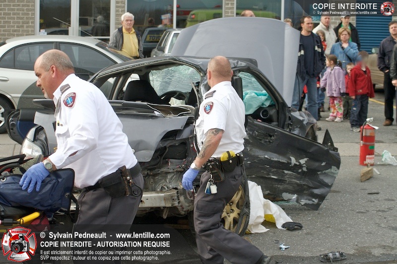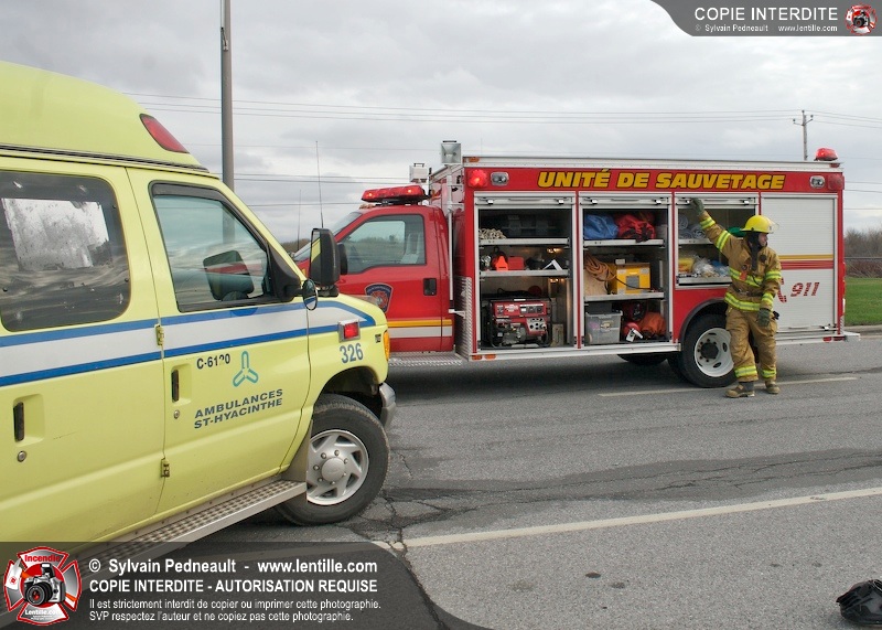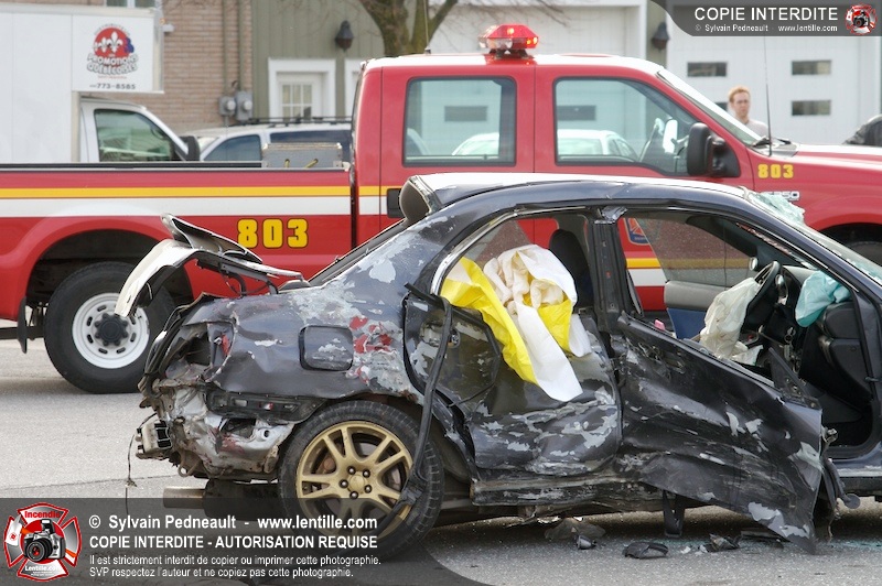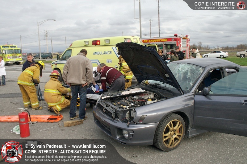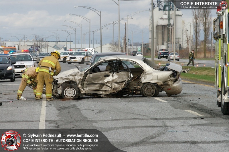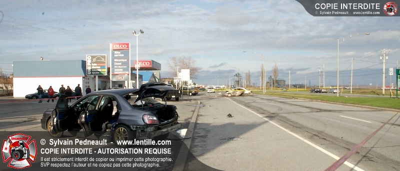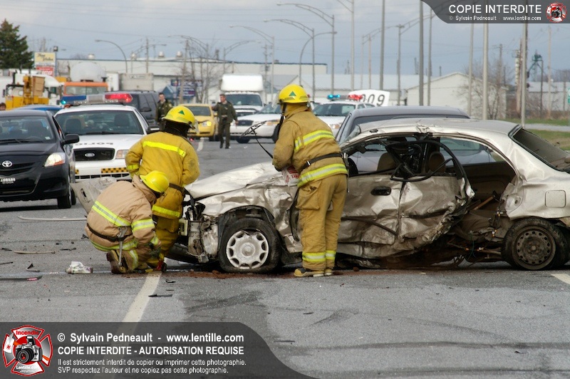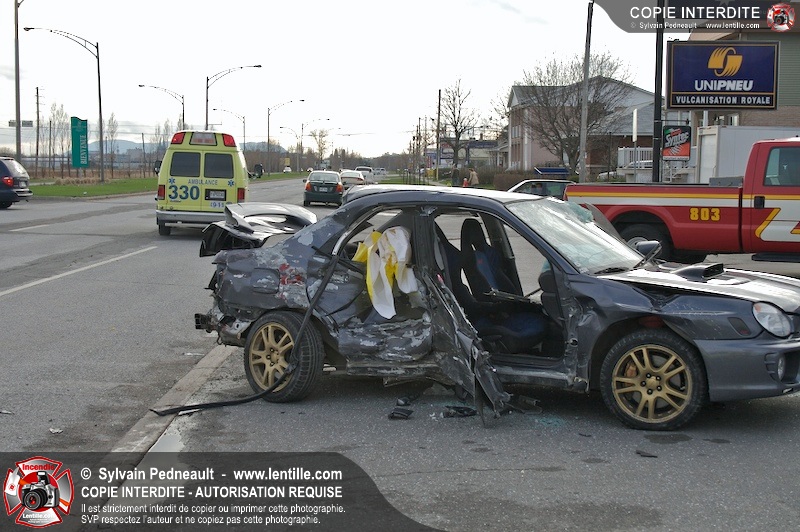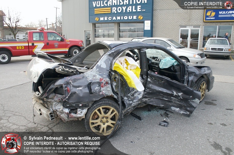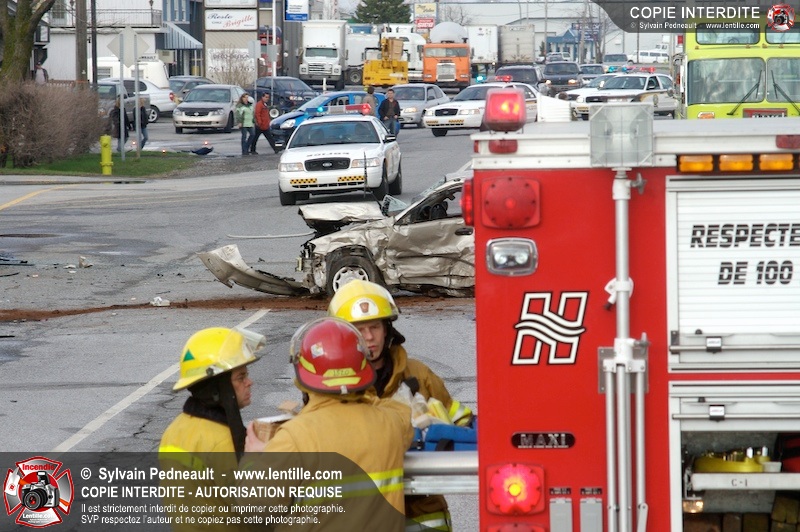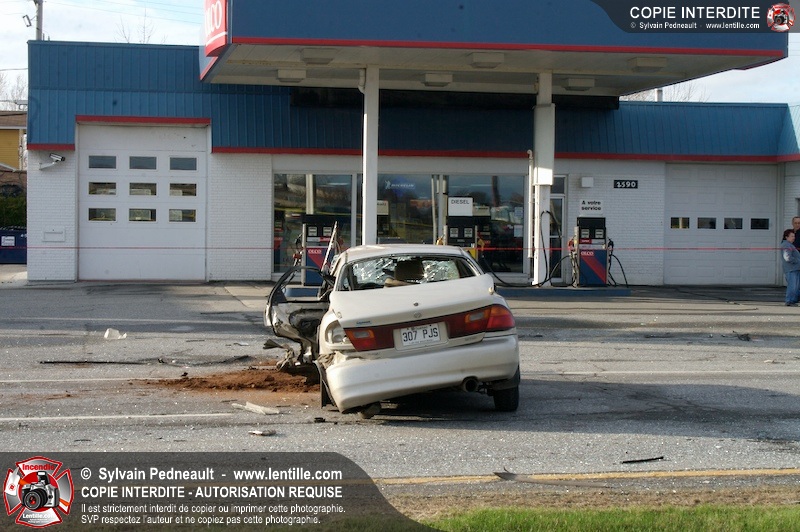 Un spectaculaire accident est survenu sur le boulevard Laurier, nécessitant l'intervention de l'unité de désincarcération et des pompiers de Saint-Hyacinthe, les paramédics de Saint-Hyacinthe et les policiers de la Sûreté du Québec.