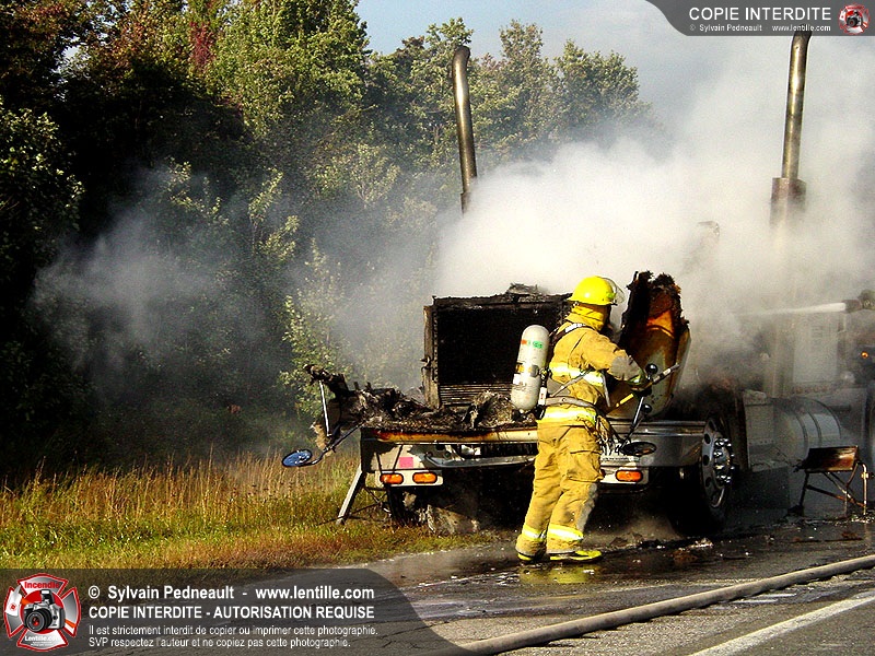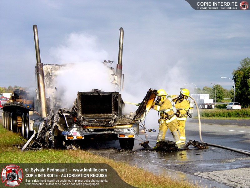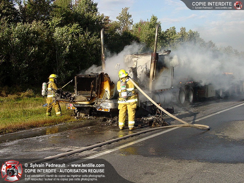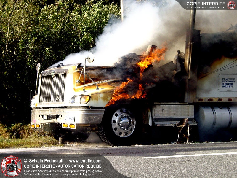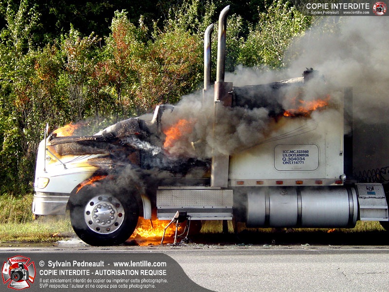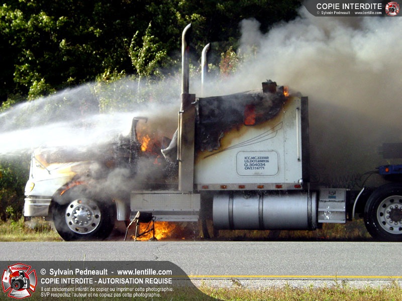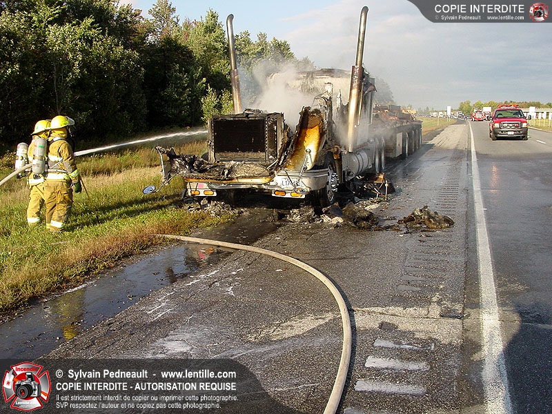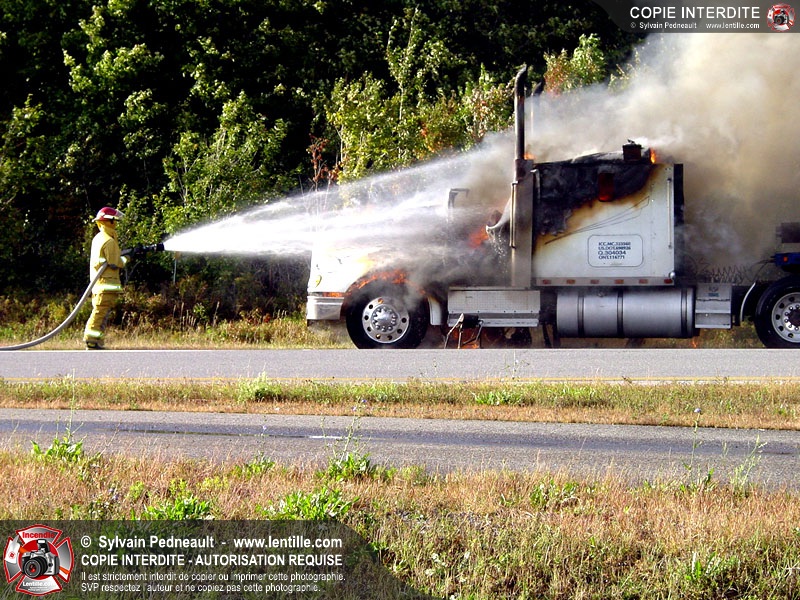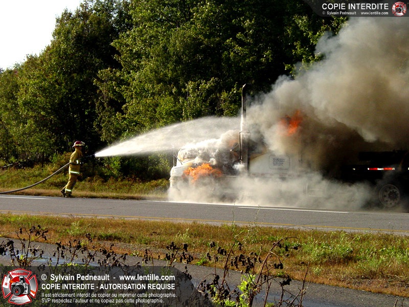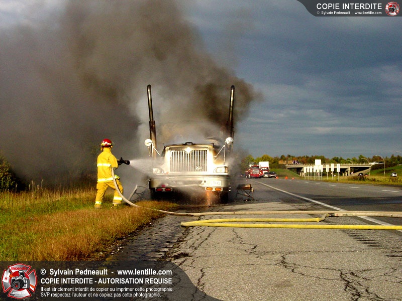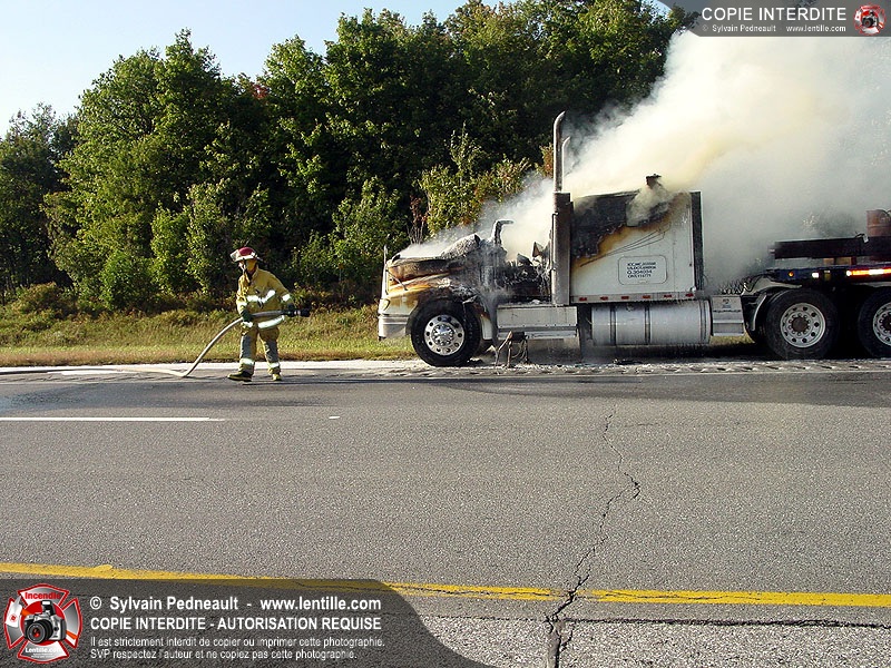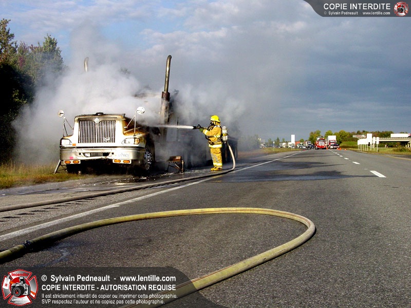Incendie accidentel dans un camion sur l'autoroute 20 Ouest, près de la sortie Ste-Rosalie.