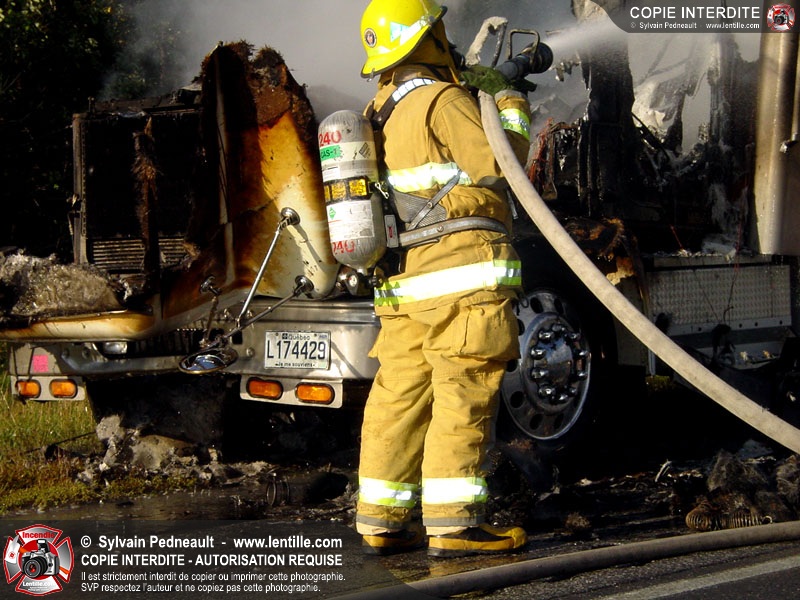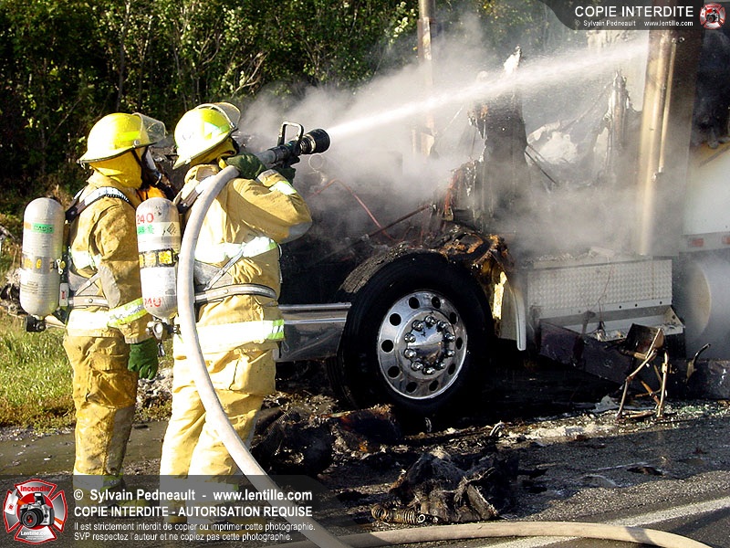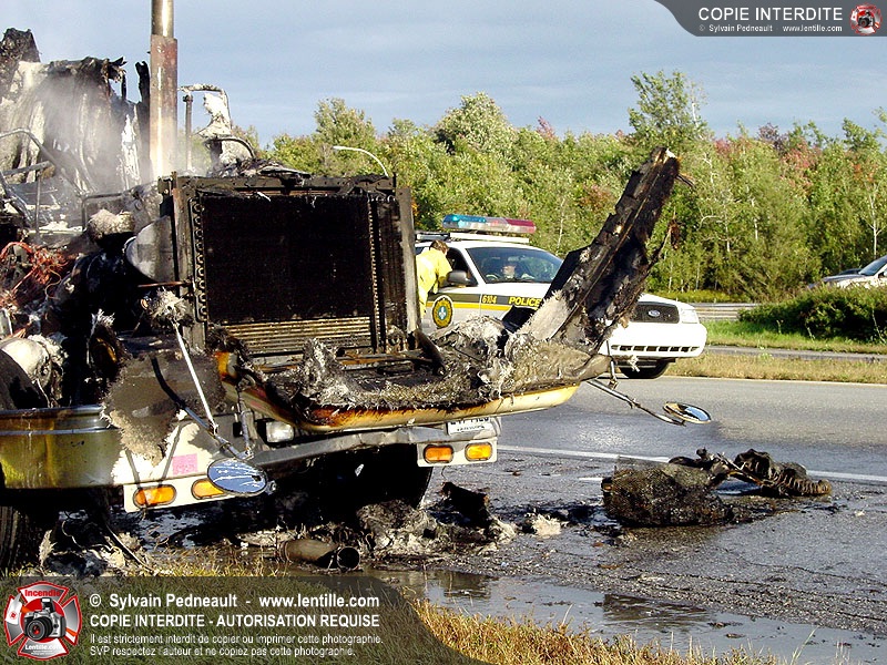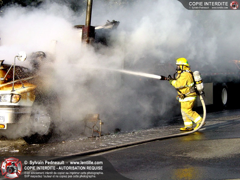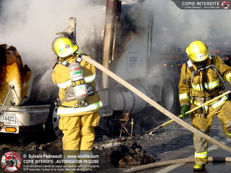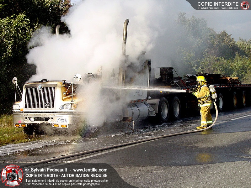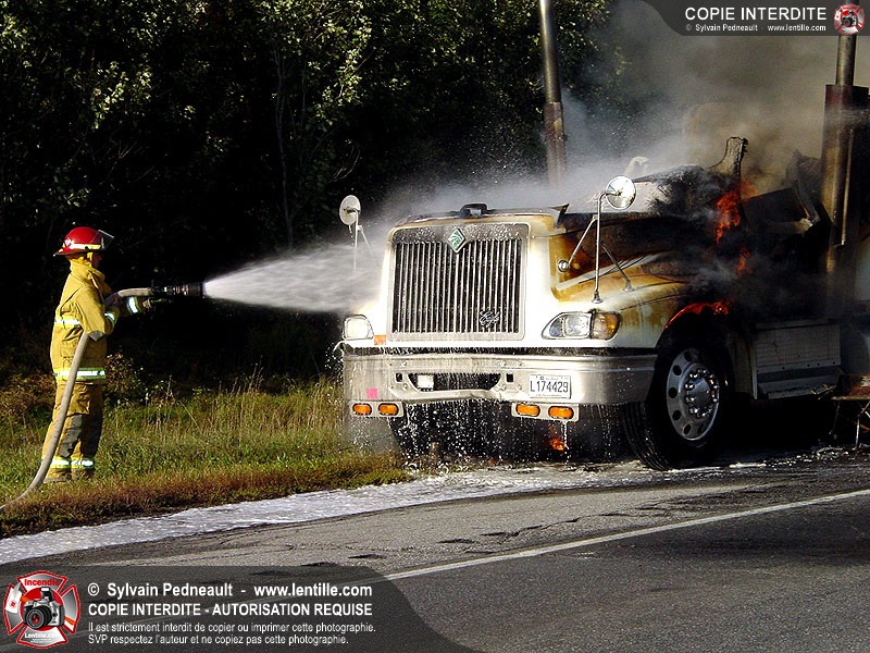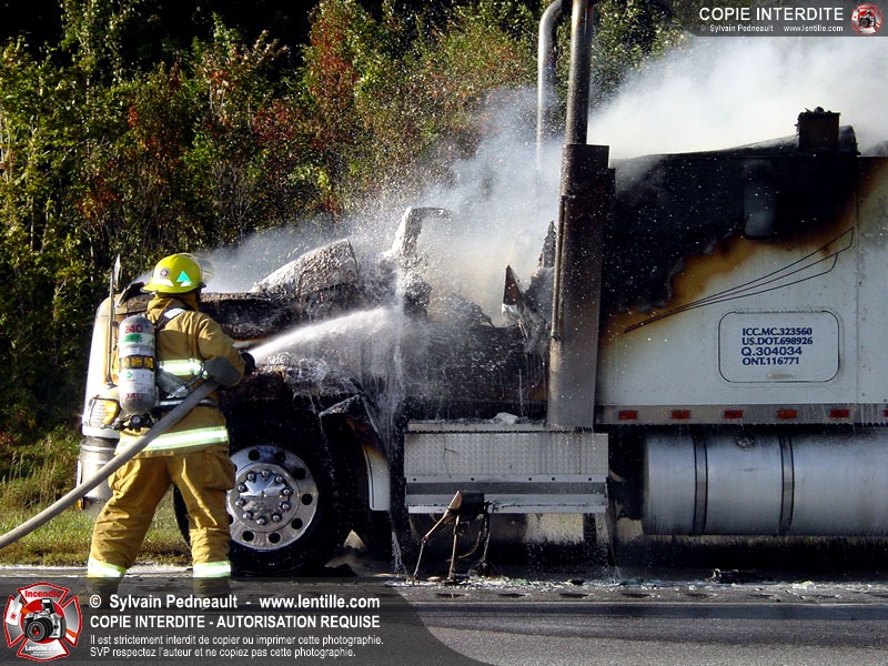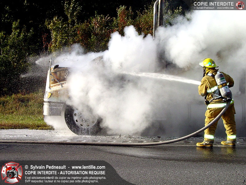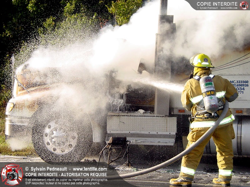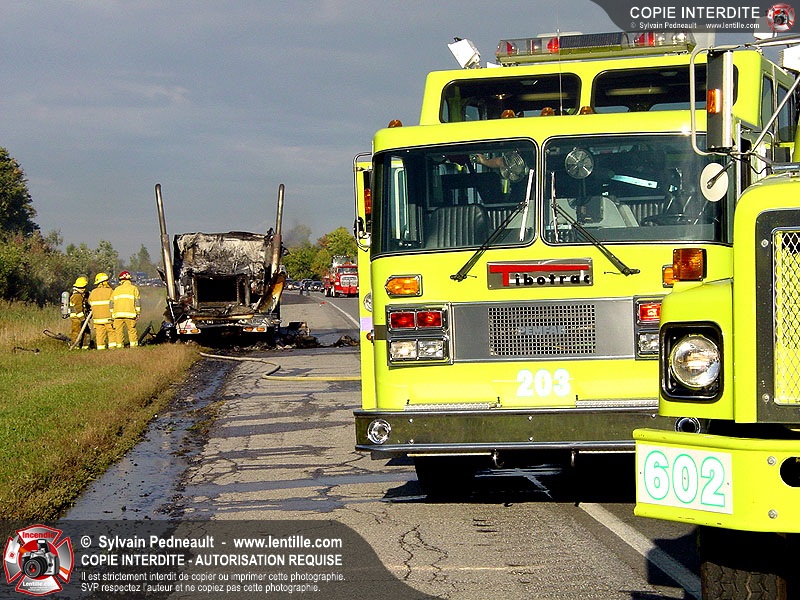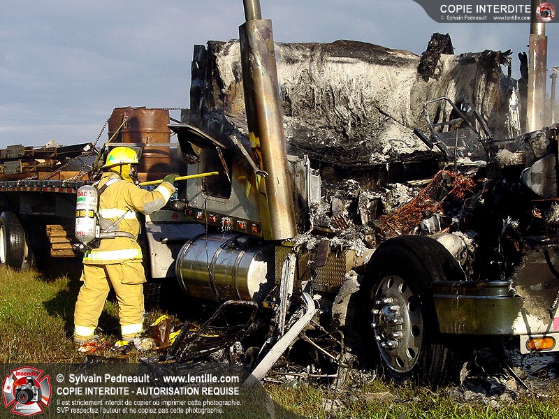 Incendie accidentel dans un camion sur l'autoroute 20 Ouest, près de la sortie Ste-Rosalie.