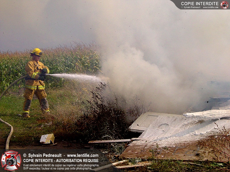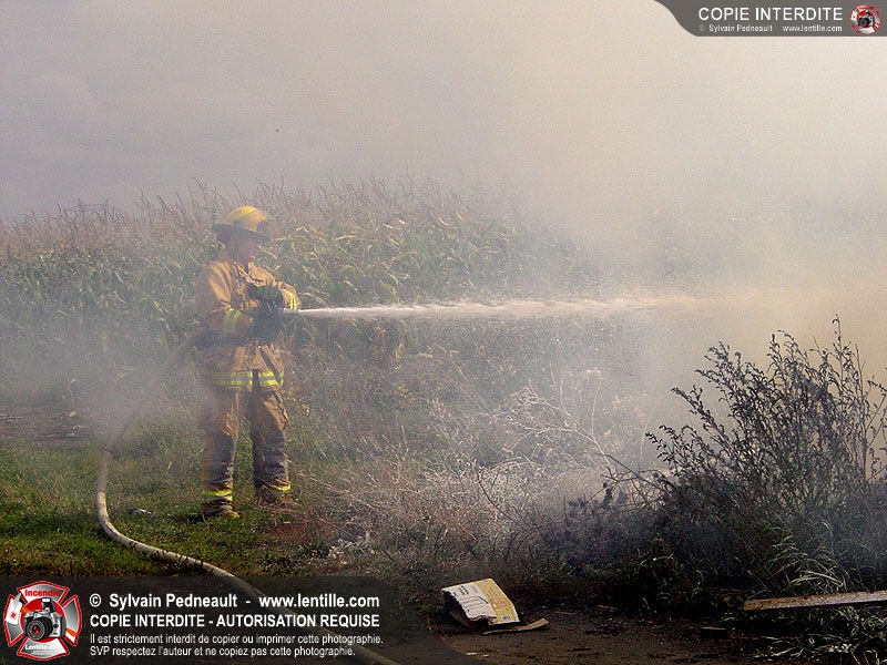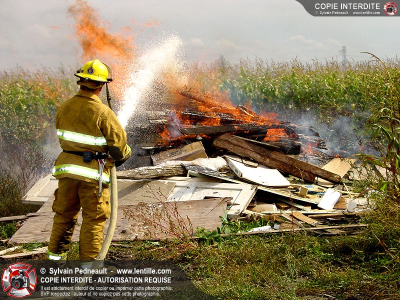 Feu à ciel ouvert non-autorisé dans un champ.