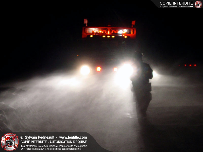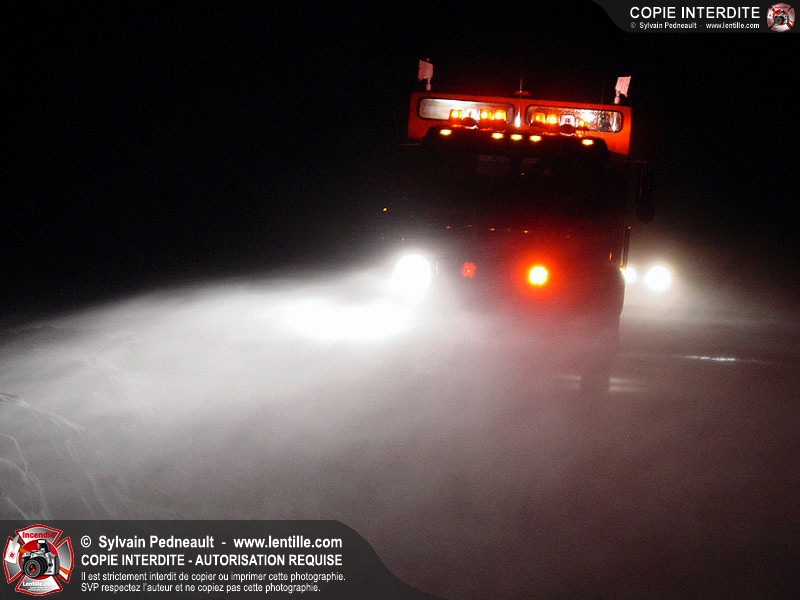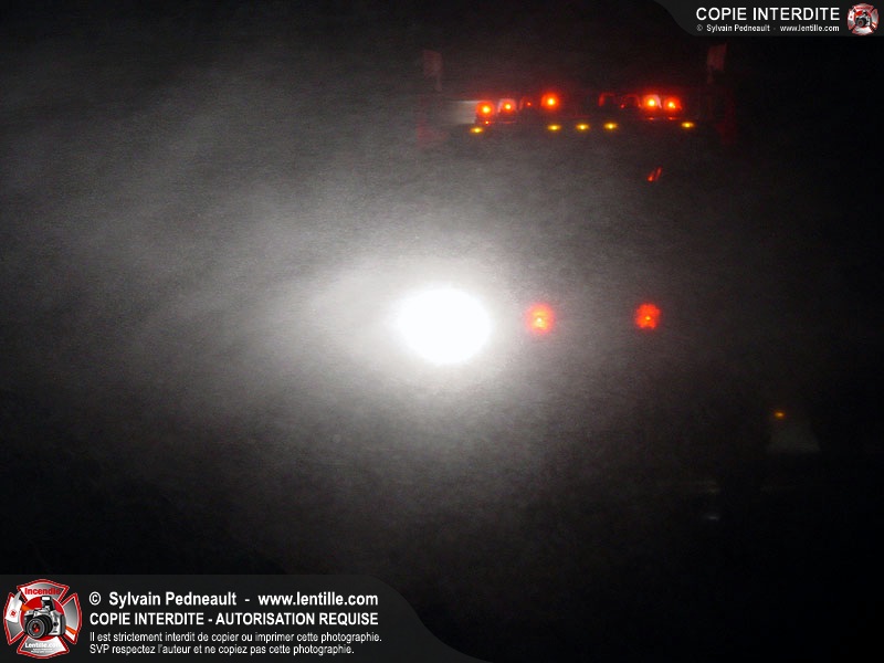 En pleine tempête de neige majeure, le 205 répond à un appel pour un incendie de poteau électrique.