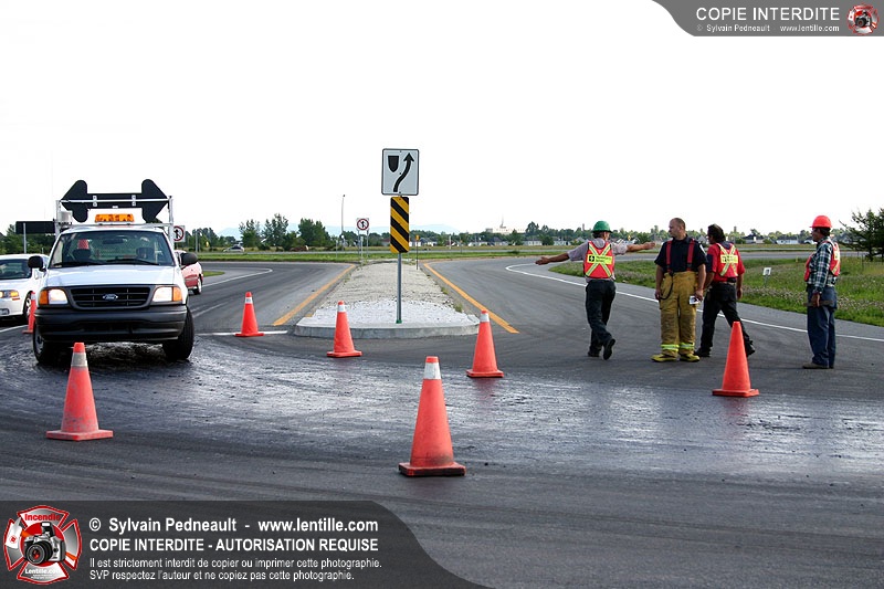 Un important déversement de goudron à la jonction d'une sortie d'autoroute et d'une rue passante à Saint-Hyacinthe nécessite la sortie des pompiers.
