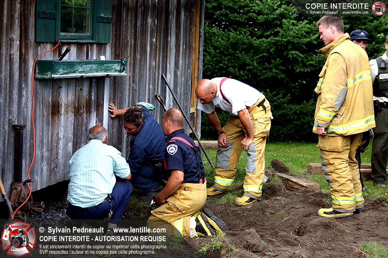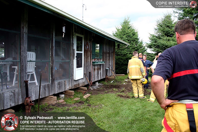 À St-Louis (environ 40 kilomètres de Saint-Hyacinthe), un homme est coinçé sous un grand cabanon lorsque les poutres de ce dernier s'enfoncent dans le sol.