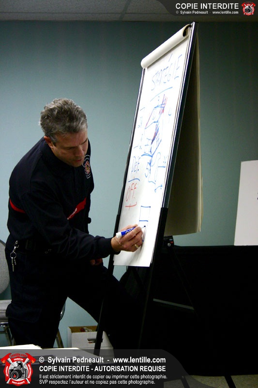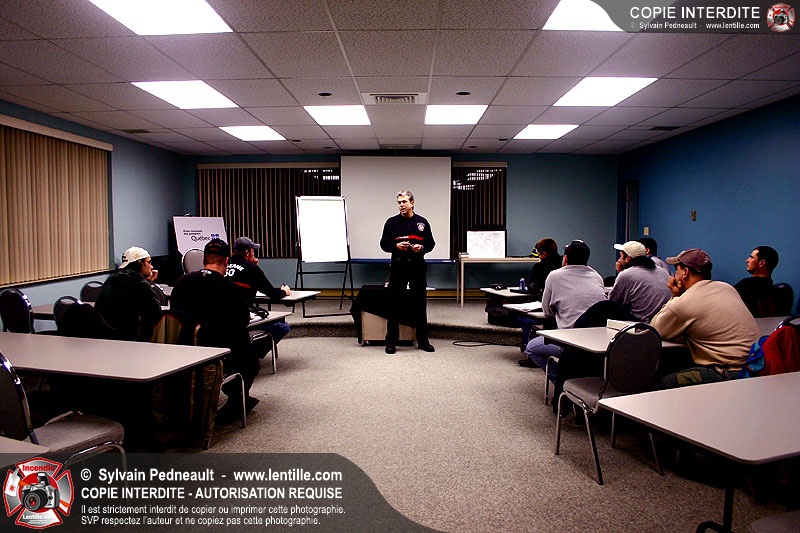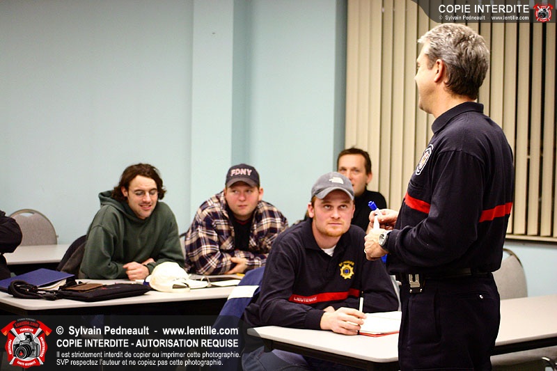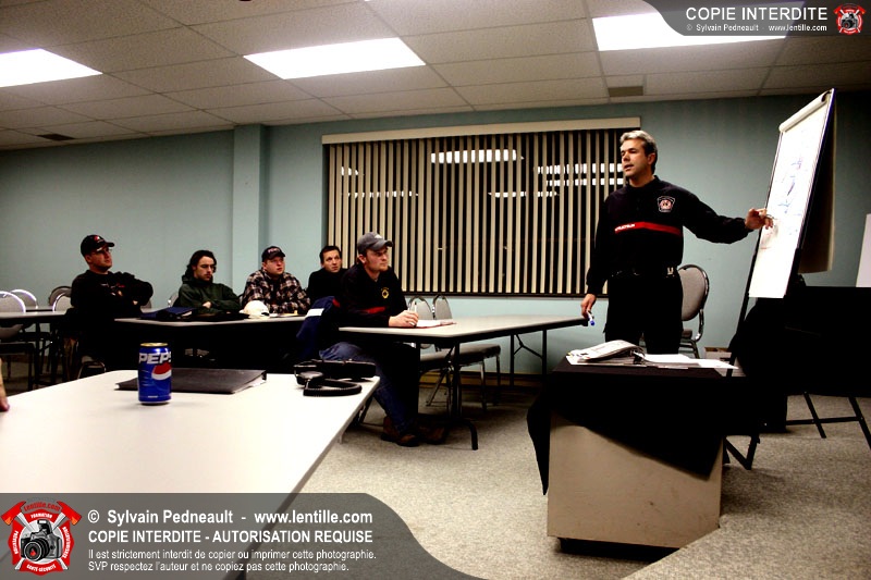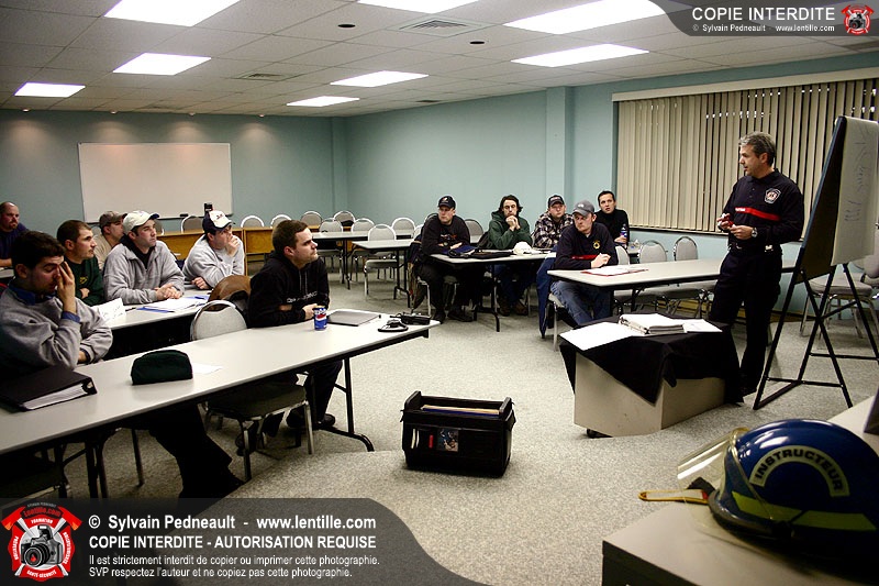Le Centre de Formation Régional de Saint-Hyacinthe donnait une formation en intervention incendie, composée d'une partie théorique et de deux simulations extérieures.