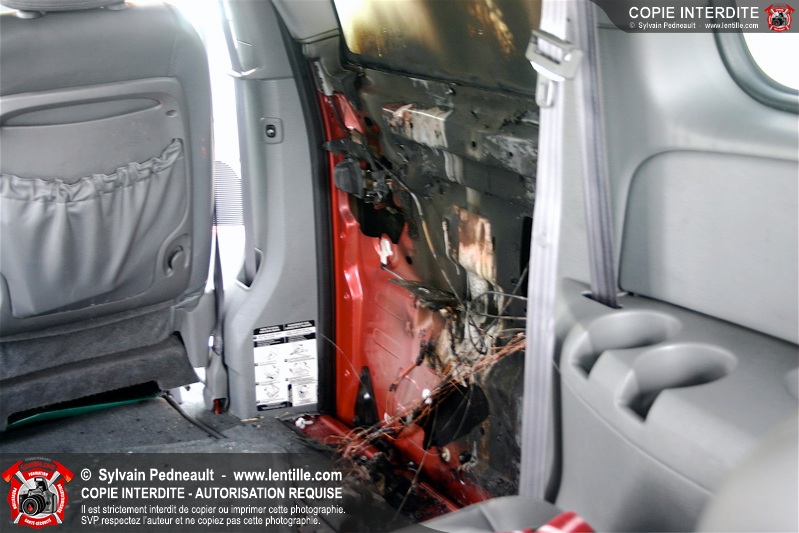 Un court-circuit dans la portière électrique d'une minivan cause un incendie.