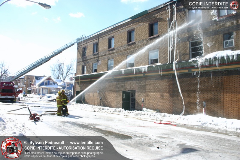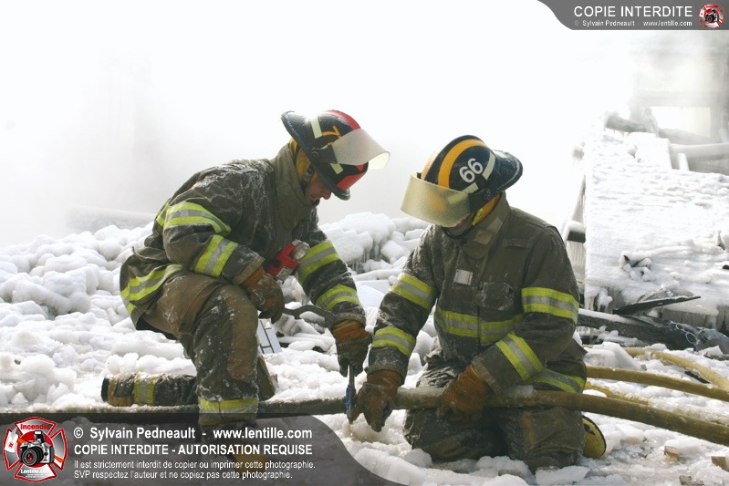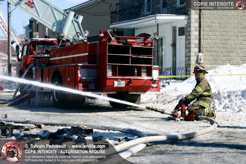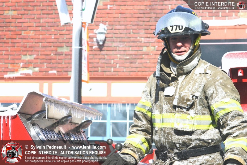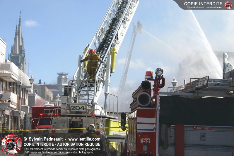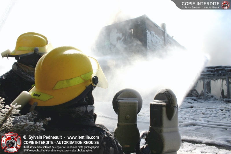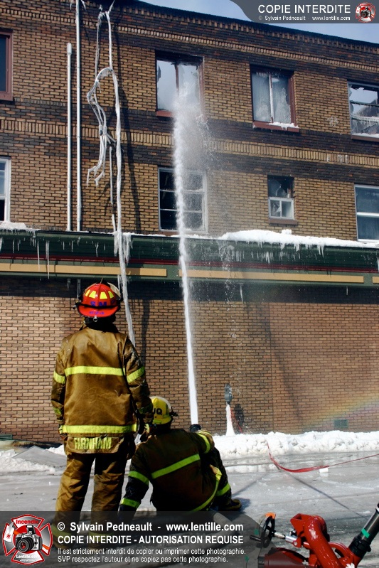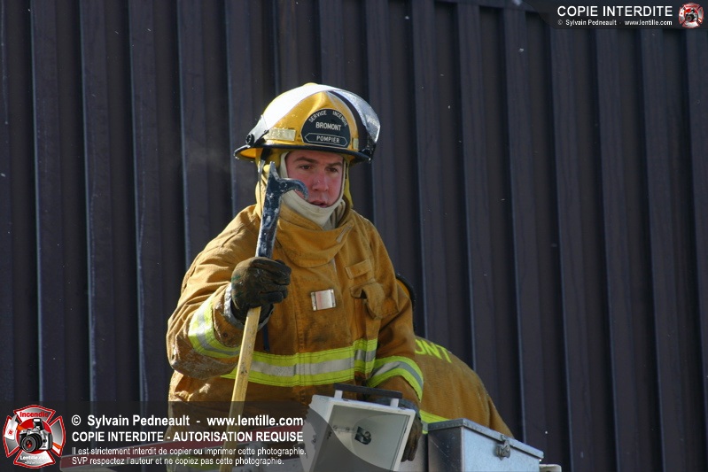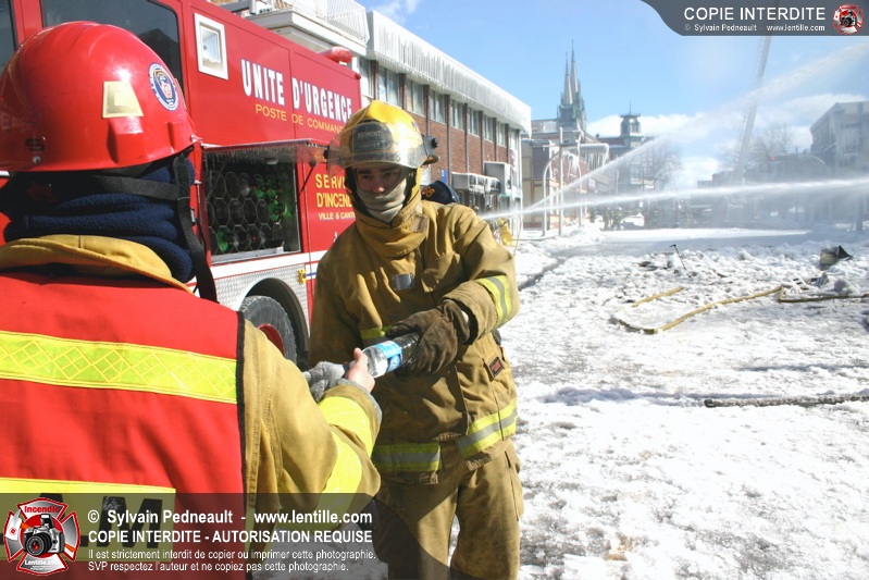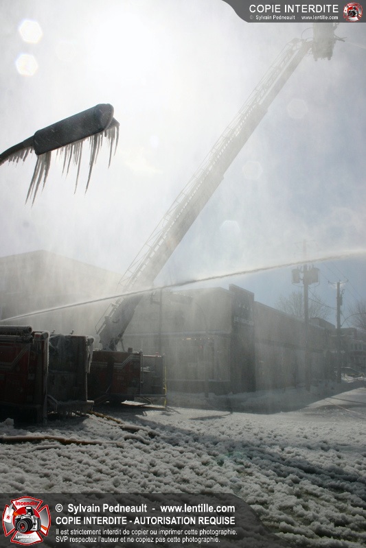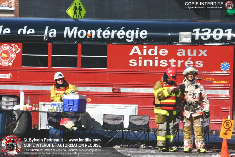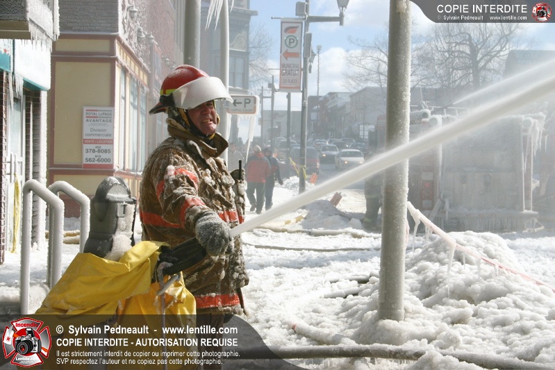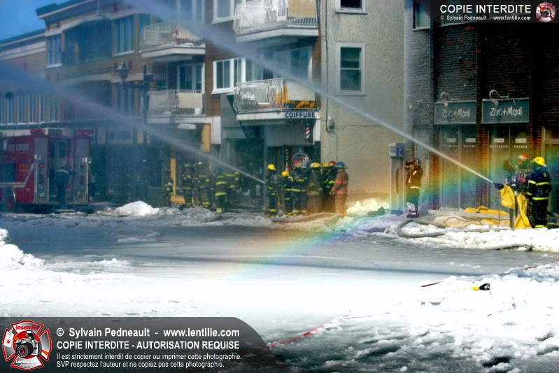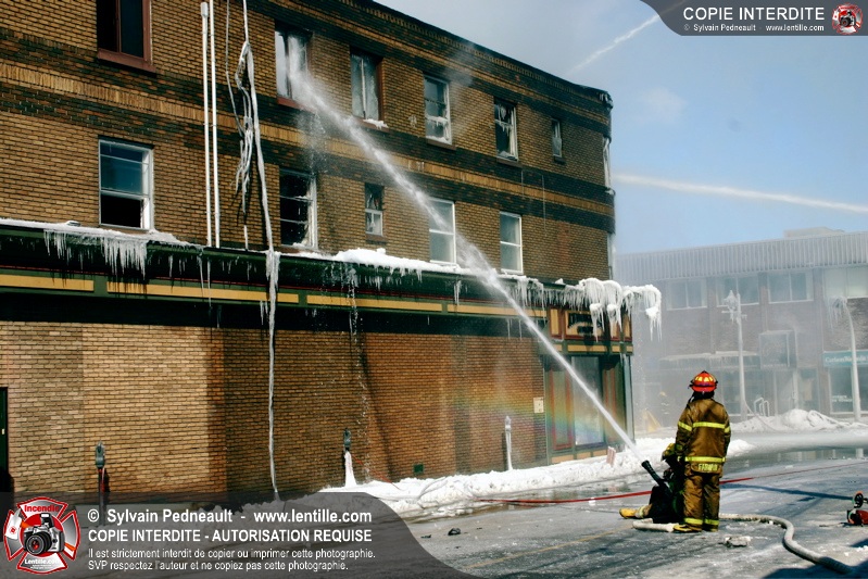 Un incendie particulièrement violent a détruit plusieurs édifices d'un quadrilatère commercial à Granby. L'incendie a nécessité une 4ième alarme et plusieurs demandes d'entraide aux villes environnantes et à l'APAM. Quelques pompiers ont été blessés lorsqu'un mur de briques s'est effondré au secteur 5. -- Note aux pompiers en service sur cette intervention: vous pouvez commander vos photos au prix spécial Saint-Hyacinthe; elles seront livrées à la caserne de Granby à la fin mars
