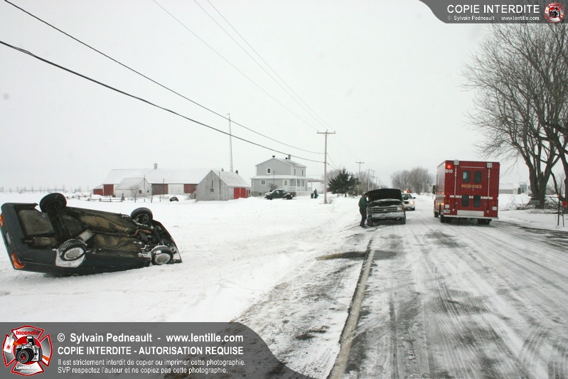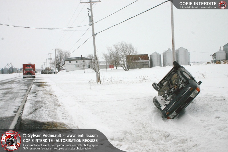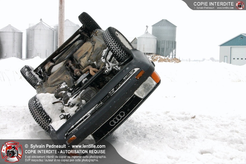 Une voiture fait une sortie de route et se retrouve sur le toit.