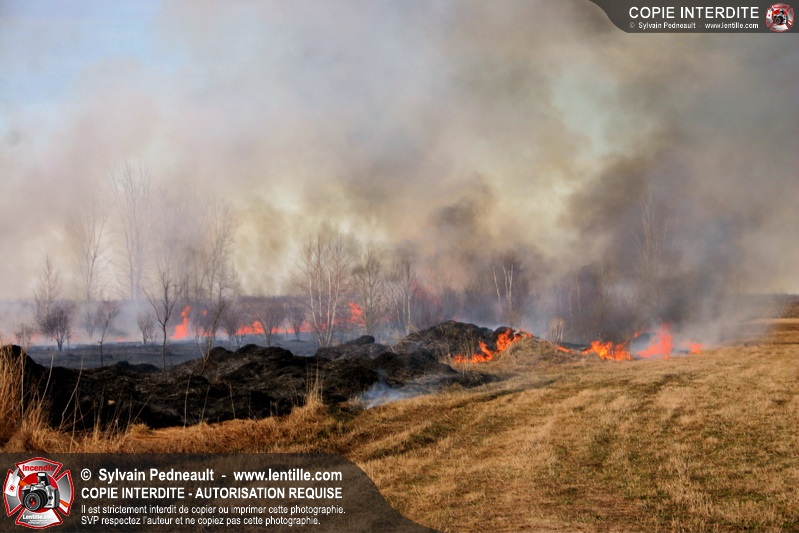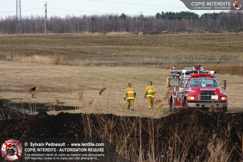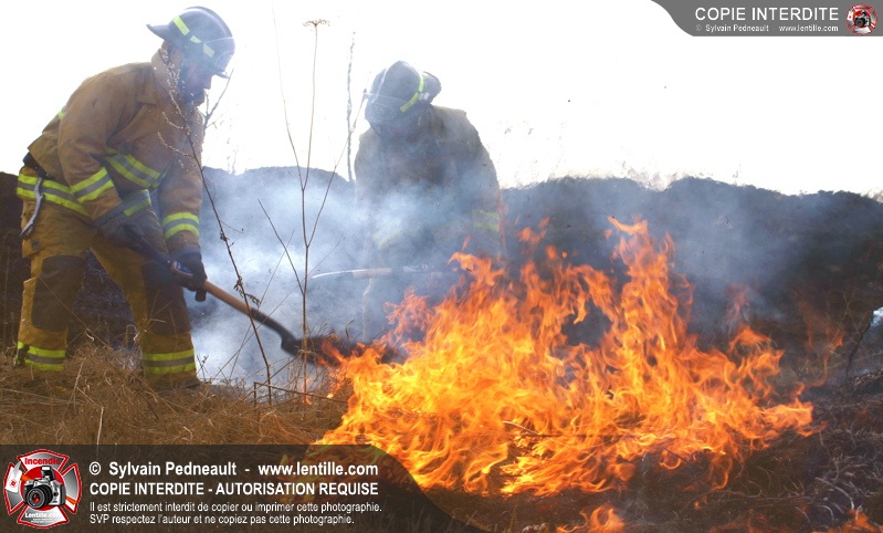 À St-Dominique, un important incendie se propage dans un champ. Les pompiers de St-Dominique arrive rapidement sur les lieux et maîtrisent rapidement la situation avant qu'elle ne devienne pire.