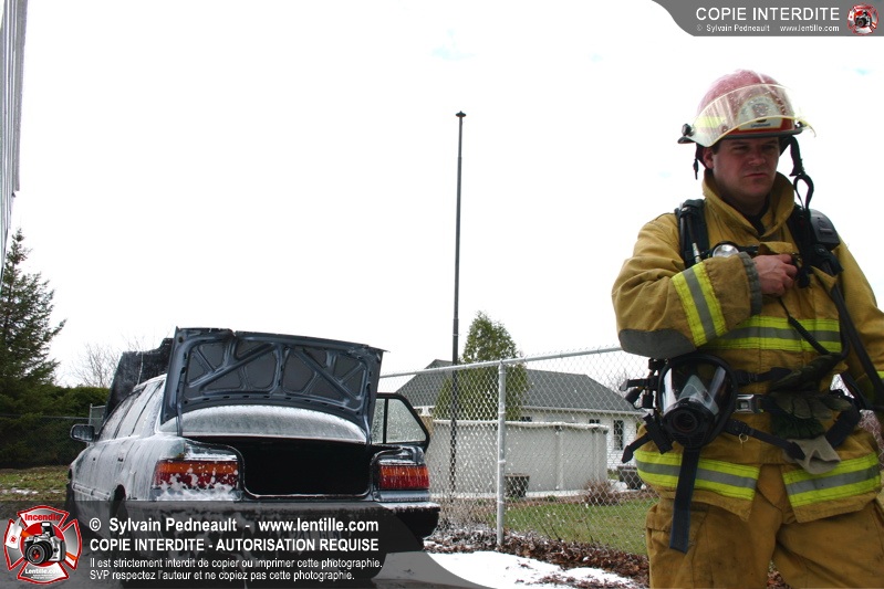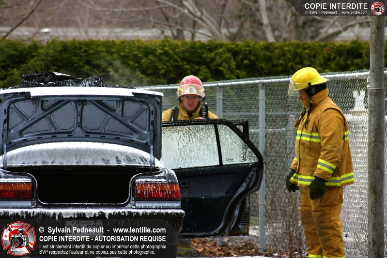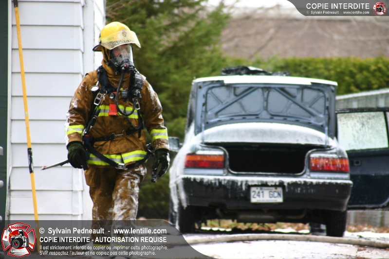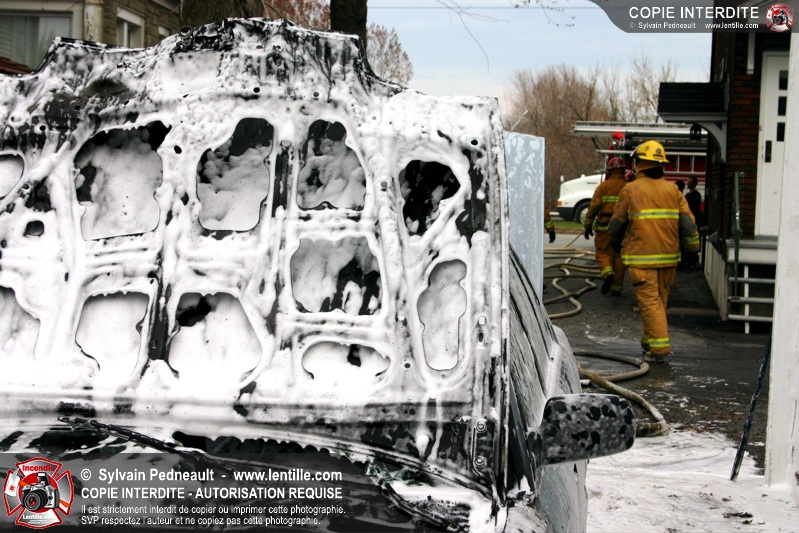 Un incendie a détruit une voiture stationnée près d'un garage dans le secteur Douville à Saint-Hyacinthe.