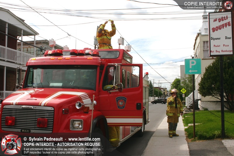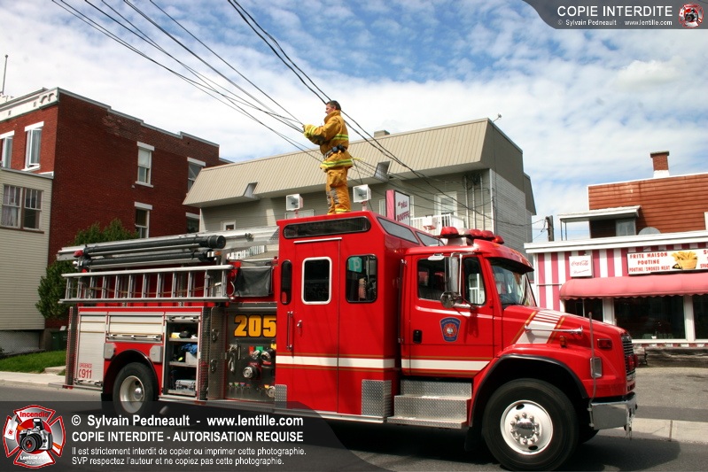 Les pompiers ont été appelés pour vérifier l'état d'un fil accroché par un camion sur la rue Concorde. Le fil de télécommunications pendait à une hauteur anormalement basse, tout comme plusieurs fils dans ce secteur.