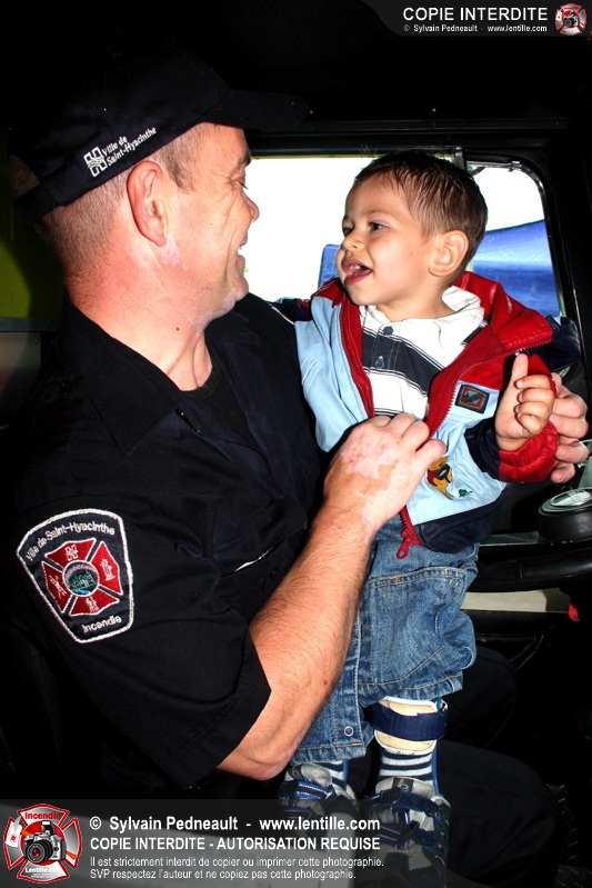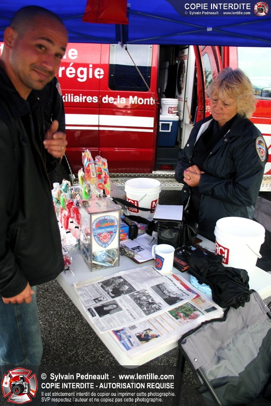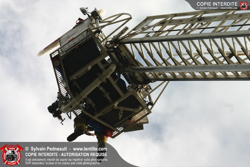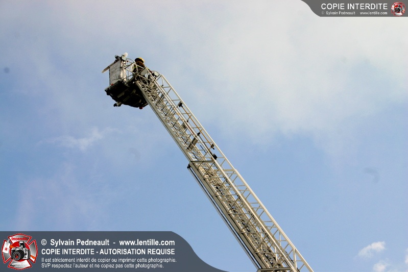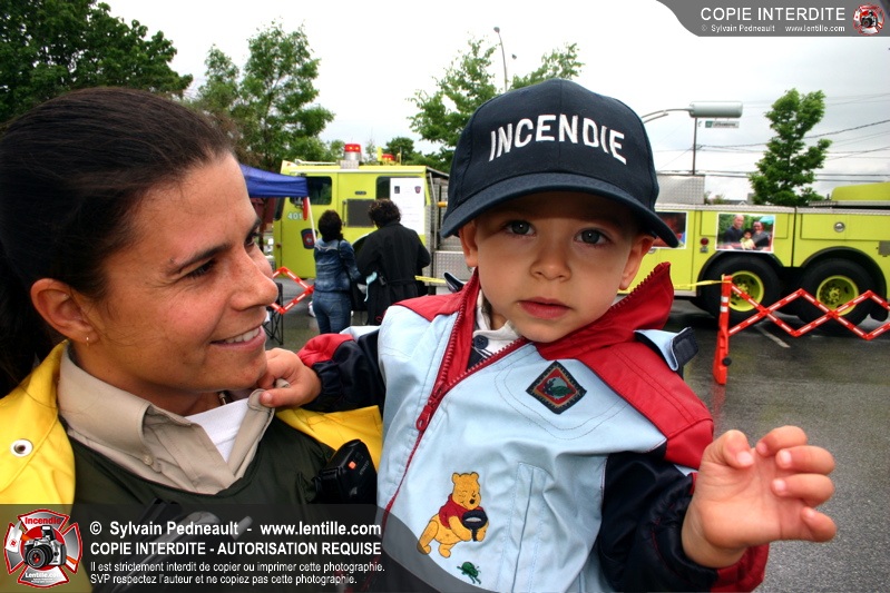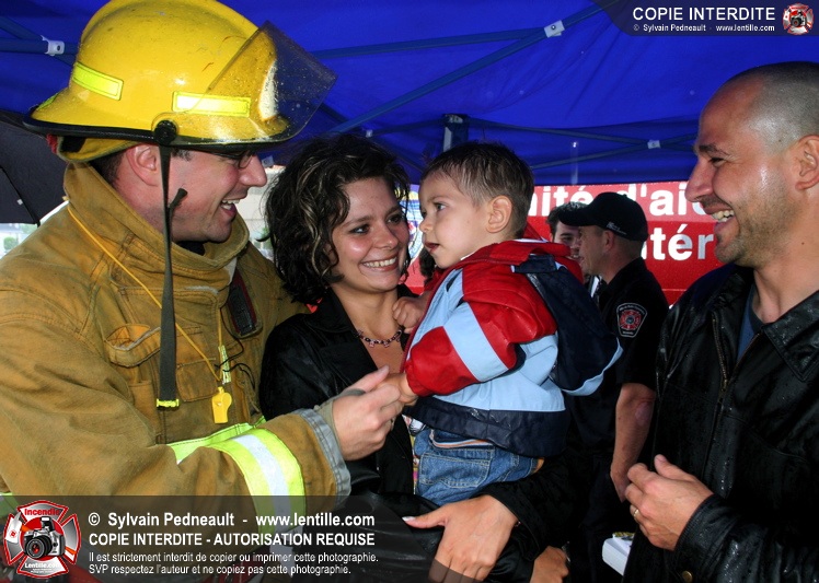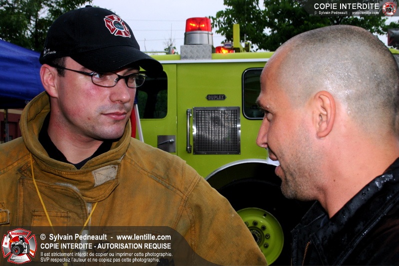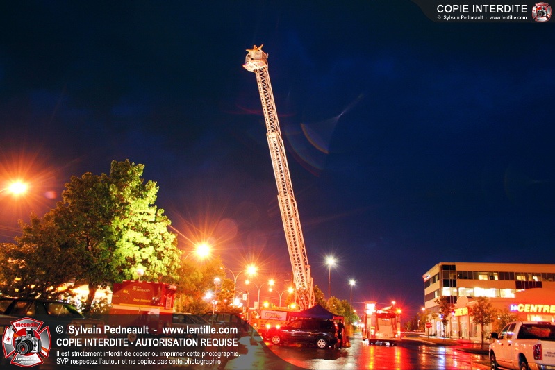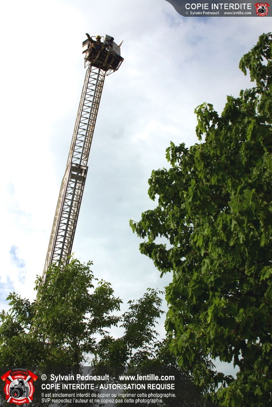 Bravant un violent orage, le pompier Sylvain Beauvais du Service de sécurité incendie de Saint-Hyacinthe a entammé un échelle-o-thon de 30 heures en ce 15 juin 2005 à midi.
