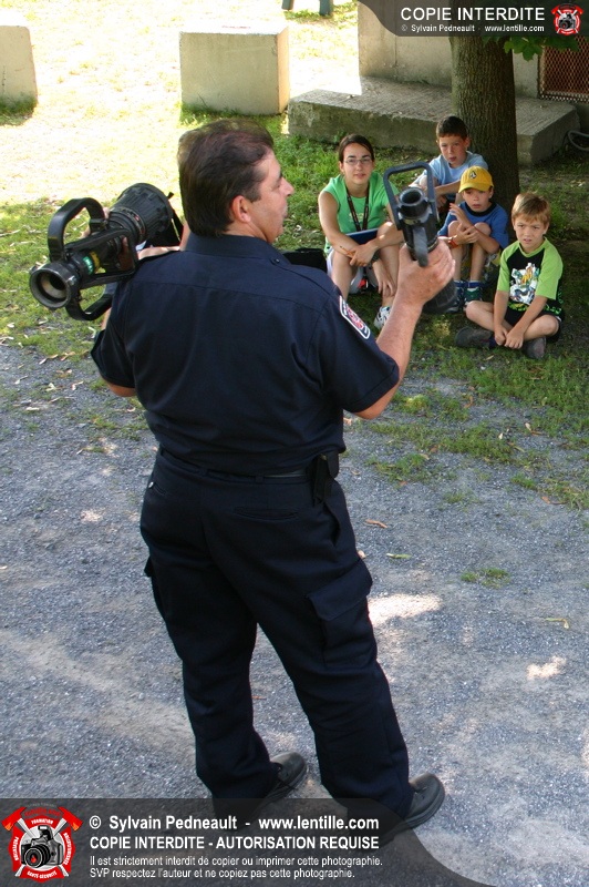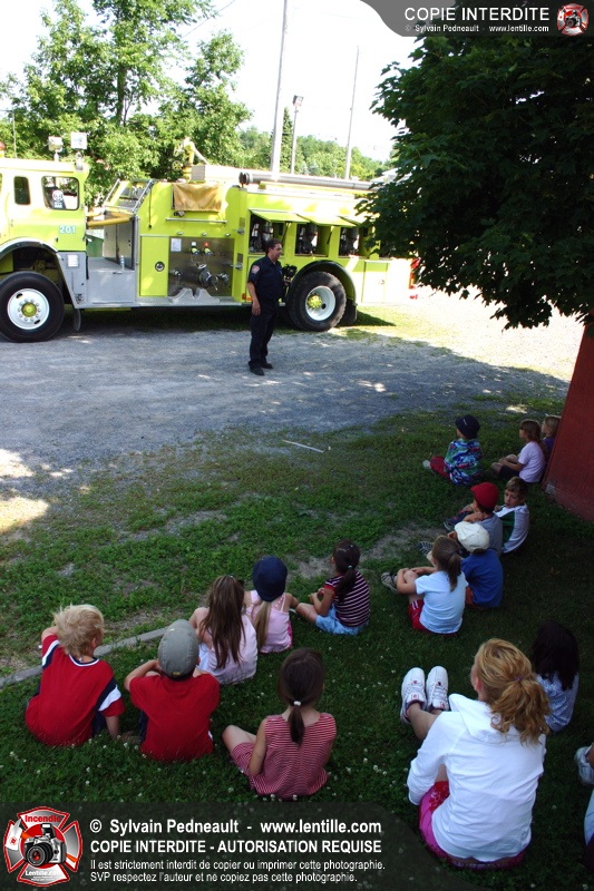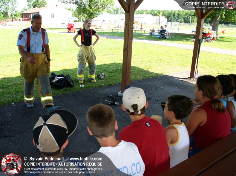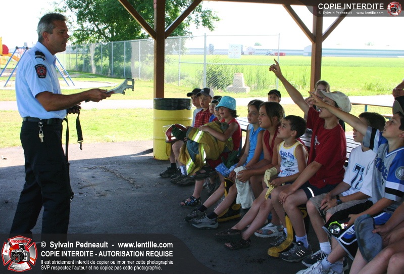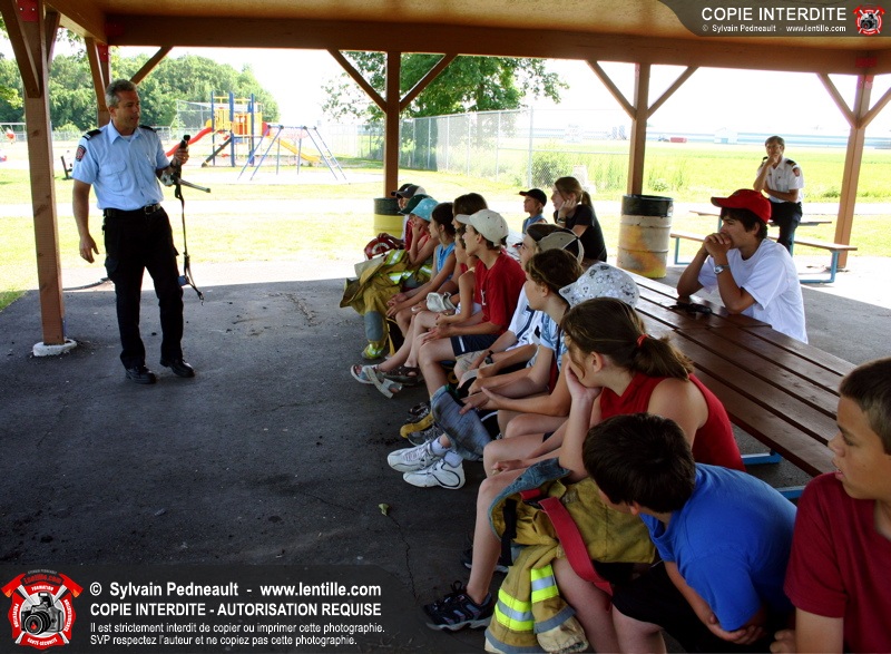 Le service de la prévention des incendies de Saint-Hyacinthe effectue un exercice d'évacuation dans un camp de jour d'été, impliquant une auto-pompe et un véhicule de service se présentant sur les lieux en code A.