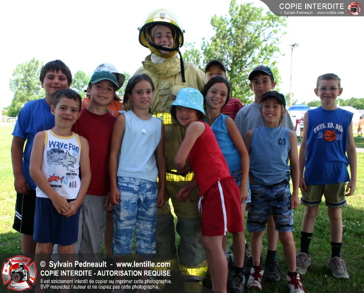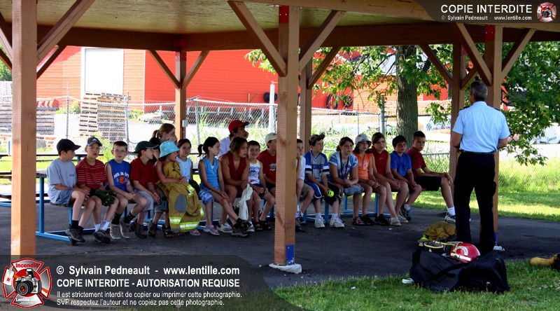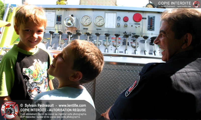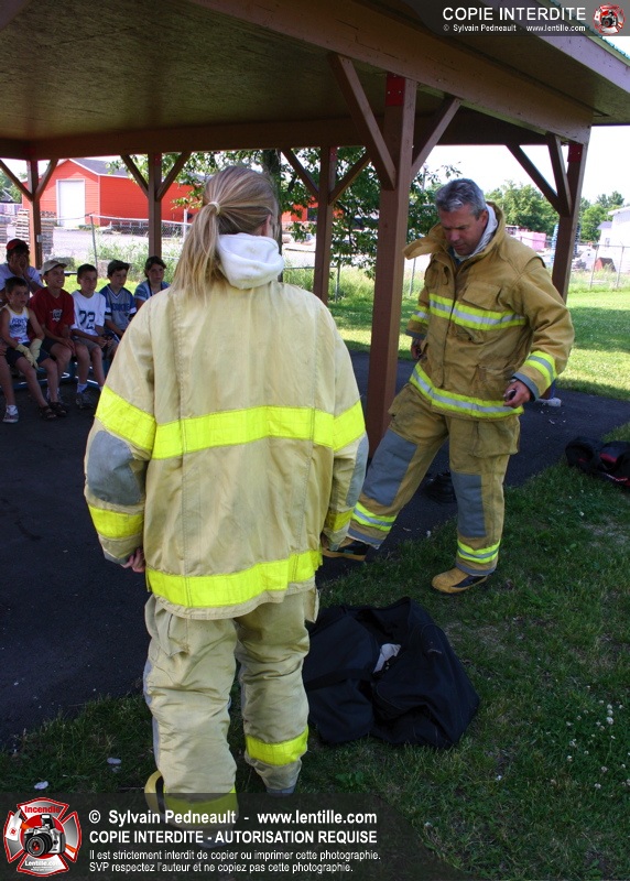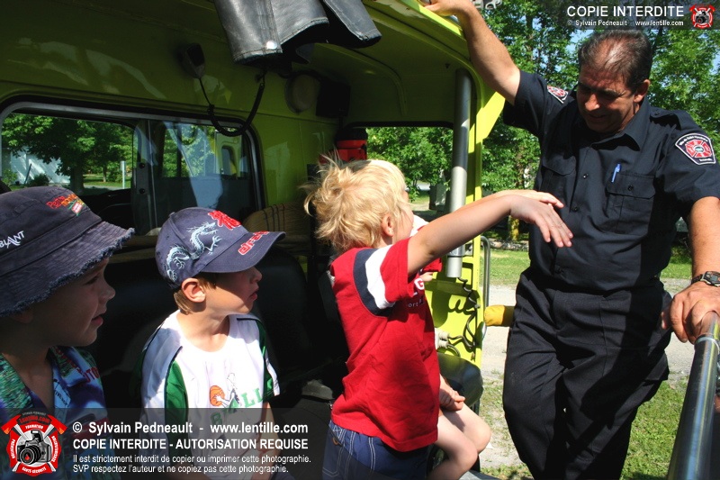 Par la suite, les enfants ont pu participer à deux ateliers: la visite de l'auto-pompe et la démonstration de l'uniforme de combat incendie.