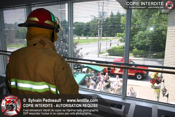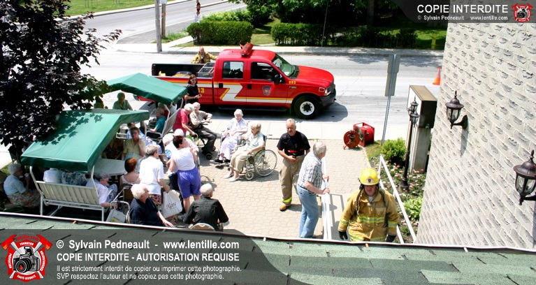 Un début d'incendie dans un appartement d'une grande résidence pour personnes agées a nécessité l'évacuation de tous les locataires. Deux 10-34 ont été appelés pour les résidents évacués étant donné la chaleur intense.