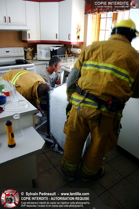 À Douville, un lave-vaisselle surchauffe et produit de la fumée. Les pompiers de Saint-Hyacinthe ont répondu à l'appel.
