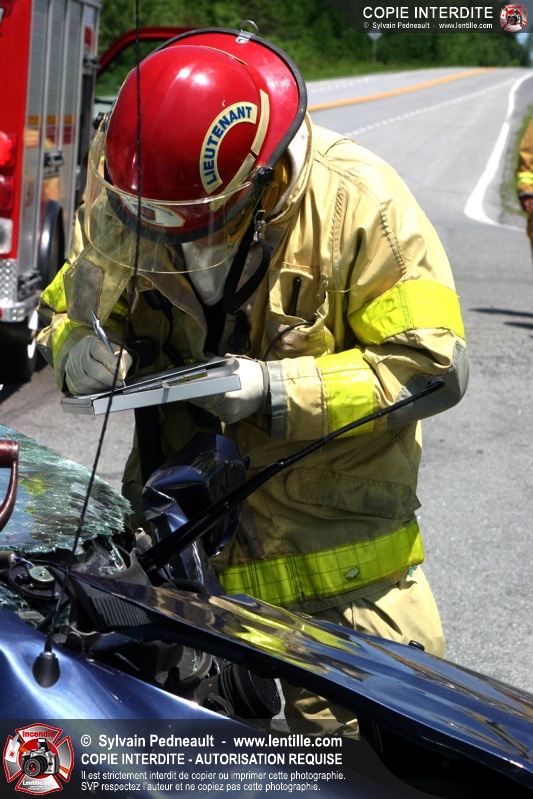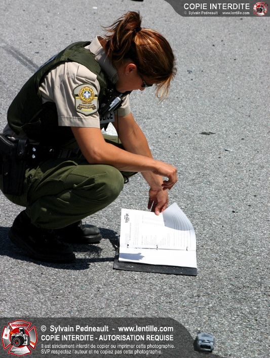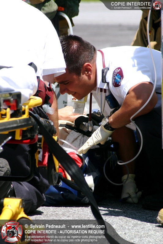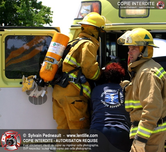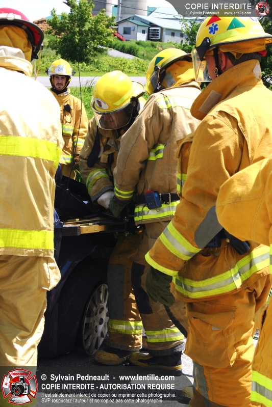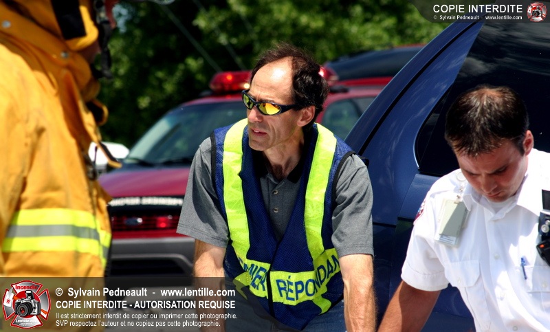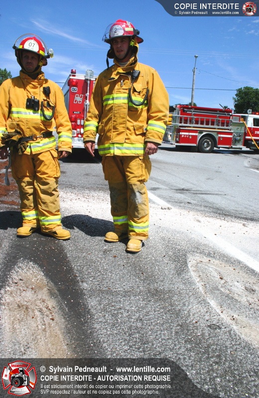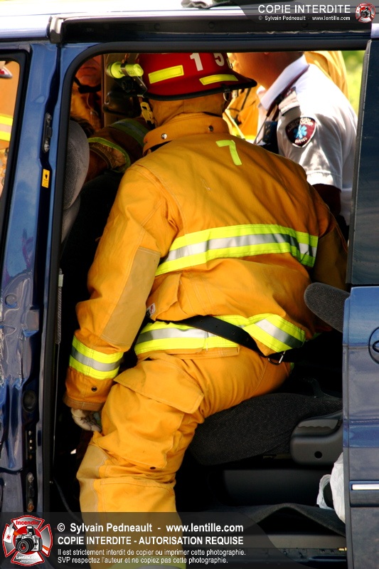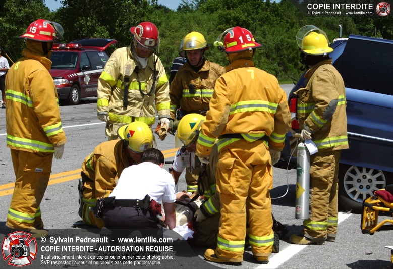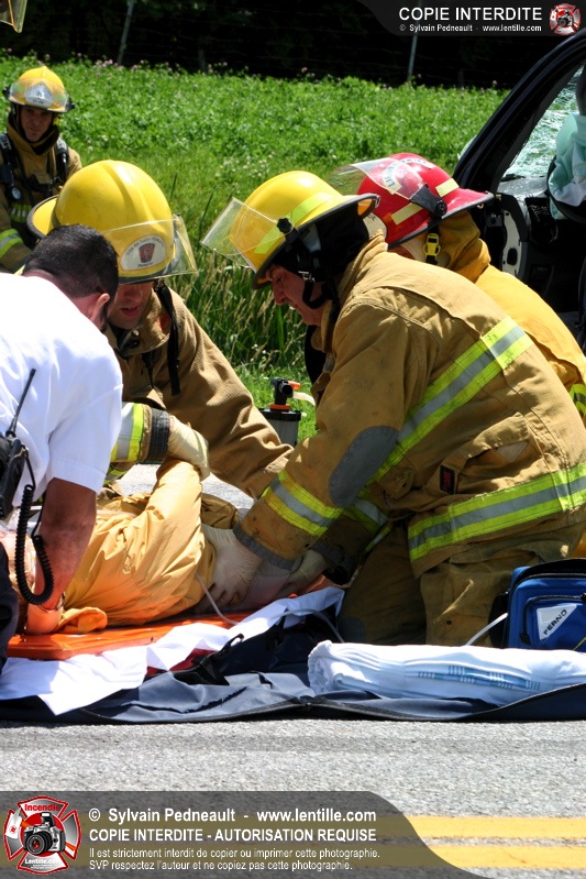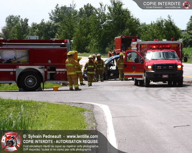 Peu après midi, un camion percute avec force une minifourgonette sur la route 235 à St-Pie. L'impact est si violent que le camion est projeté une centaine de mètres plus loin, à l'envers sur le bord de la route.