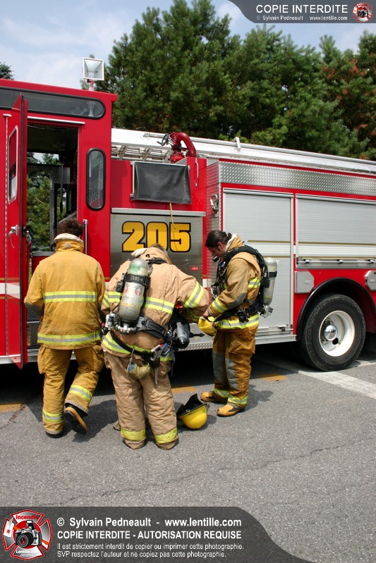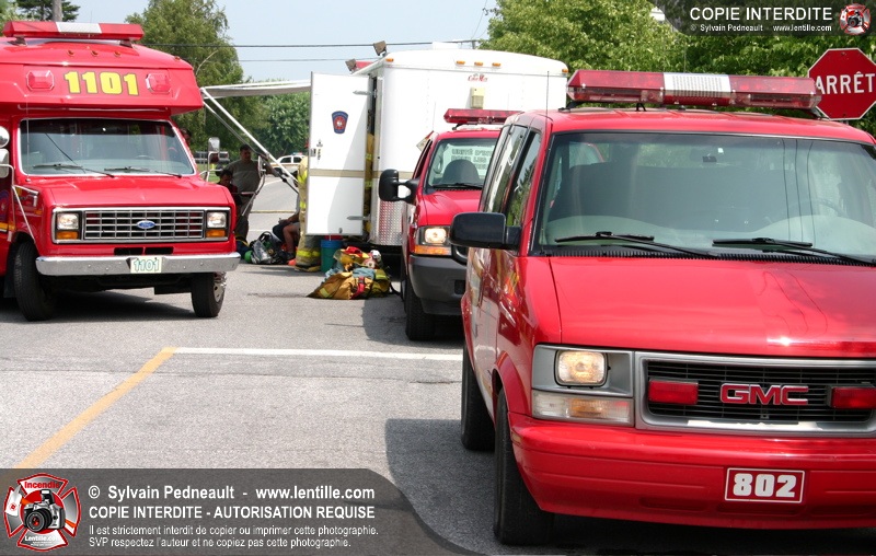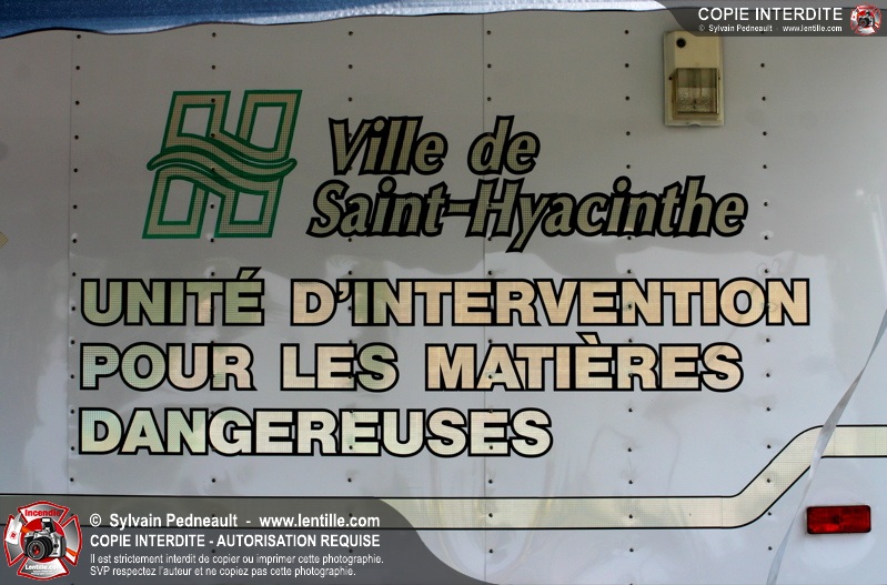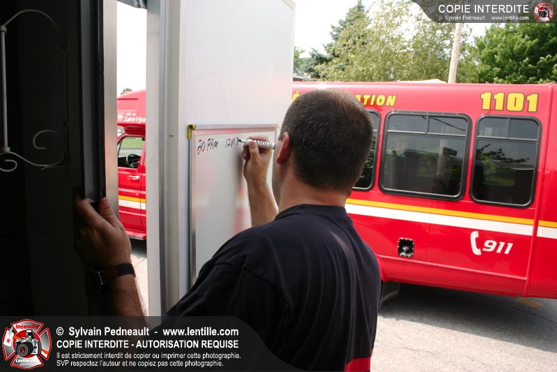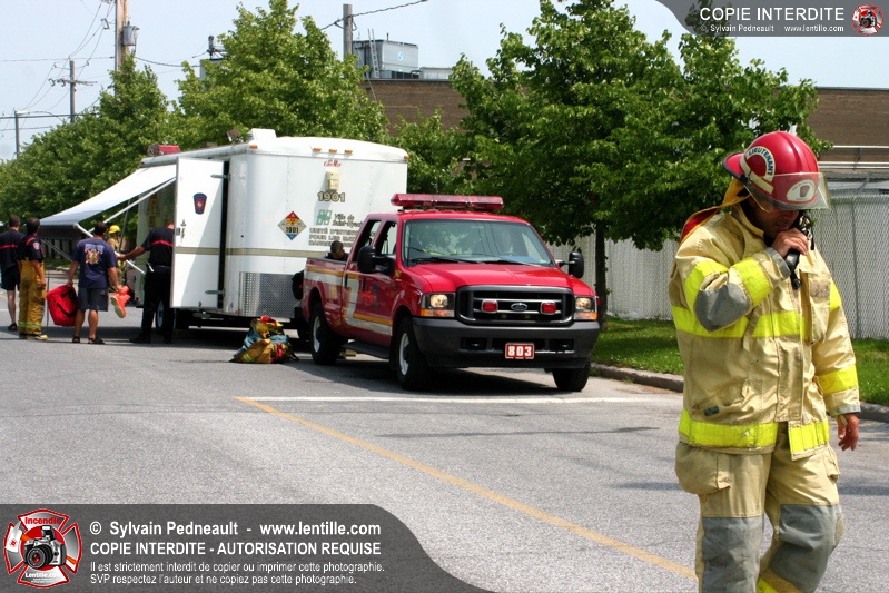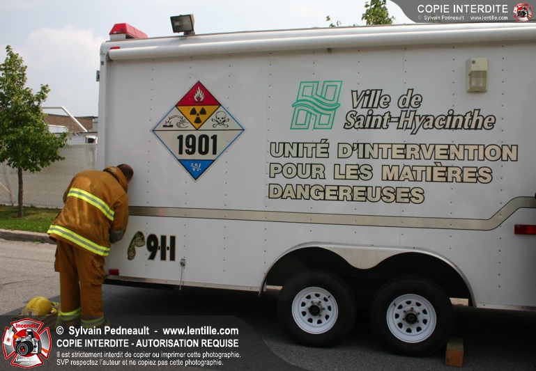 L'équipe hazmat du Service de sécurité incendie de Saint-Hyacinthe répond à un appel pour une fuite d'amoniac dans une industrie.