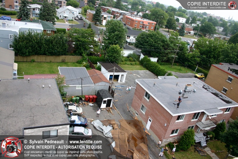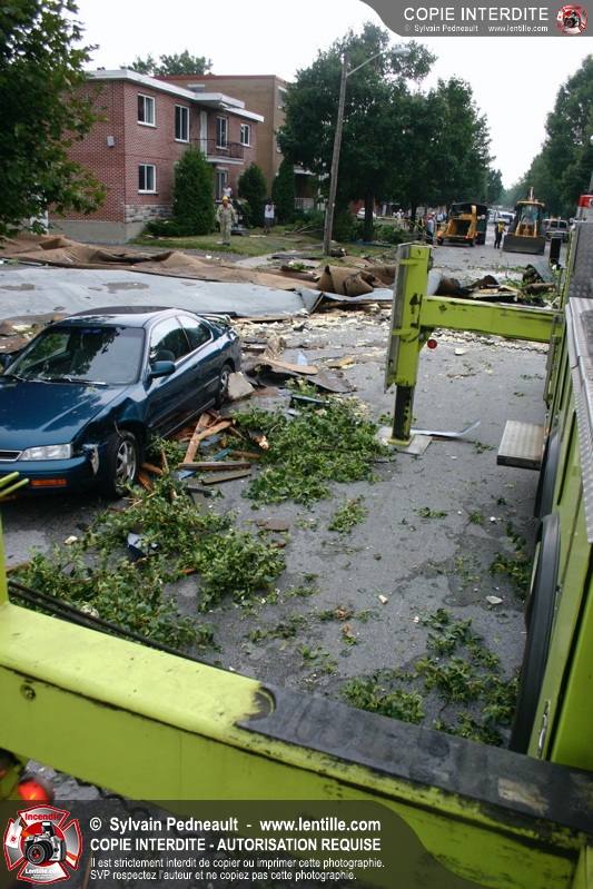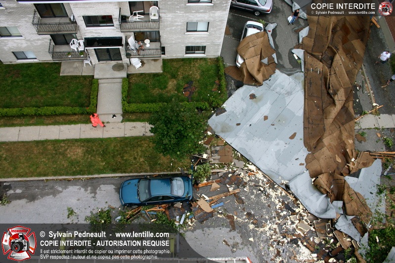 Pendant un orage particulièrement violent, une micro-rafale se forme dans le secteur Cartier-Dumesnil et emporte une grande partie de la toiture d'un commerce de grande surface. Le toit est projeté plusieurs dizaines de mètres plus loin dans la rue, causant d'importants dommages à des arbres, voitures et autres objets.