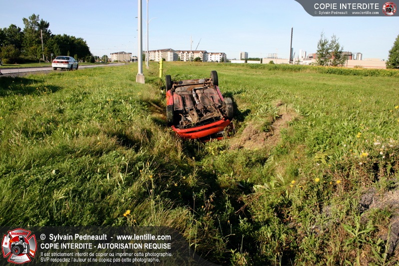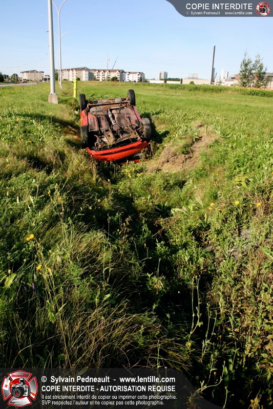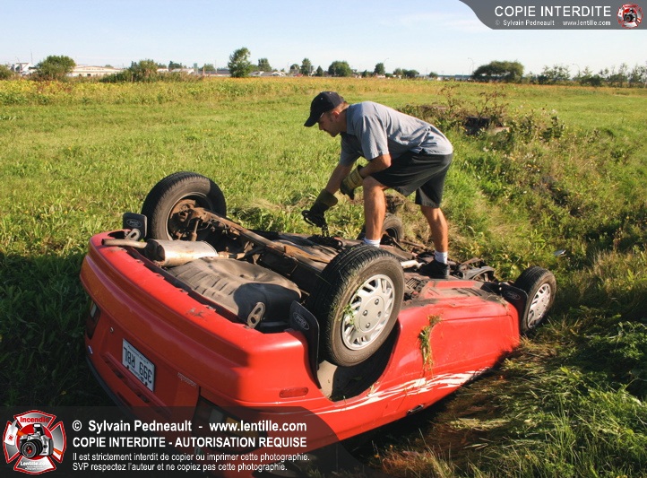 Un jeune a eu toute une frousse et quelques blessures mineures en perdant le contrôle de son véhicule dans une courbe et en se retrouvant à l'envers dans un fossé.
