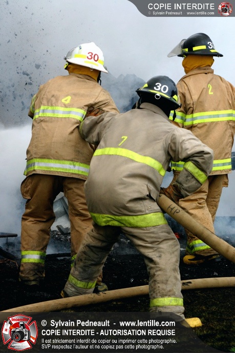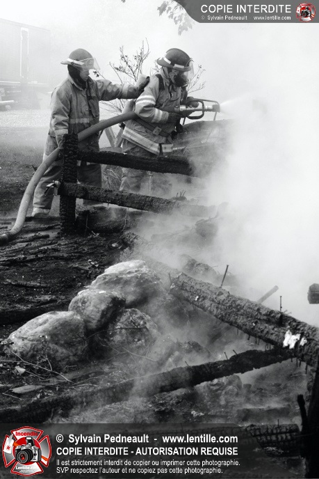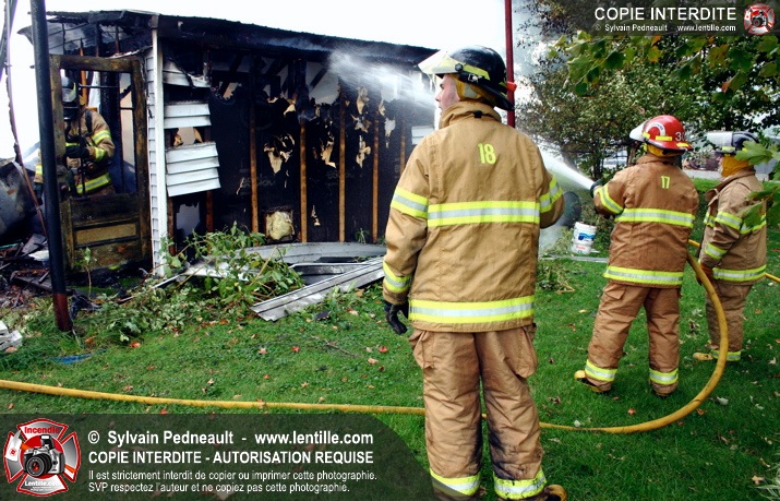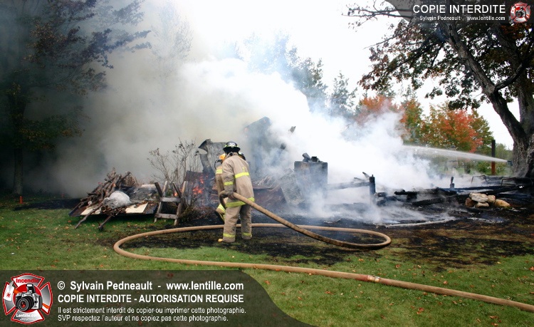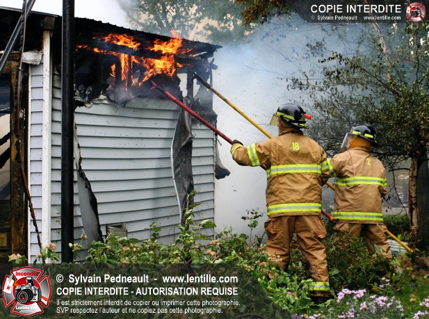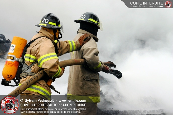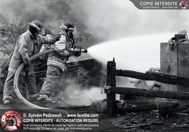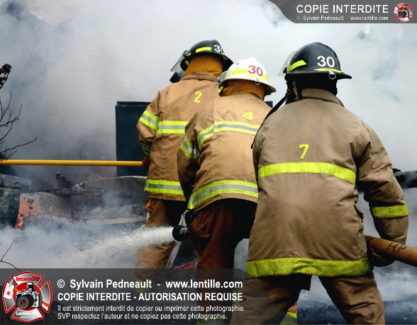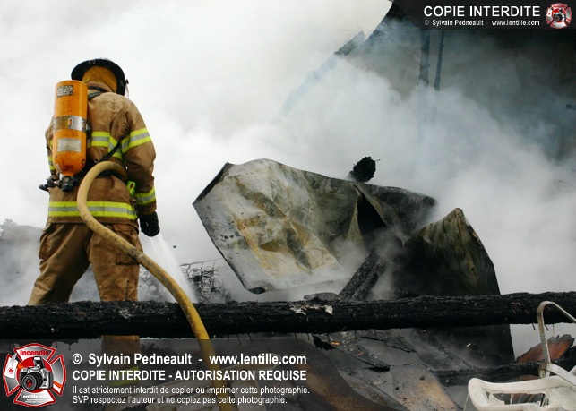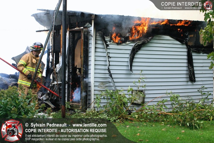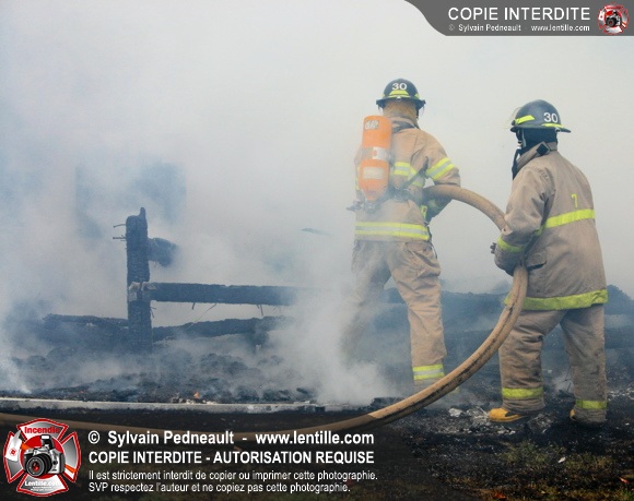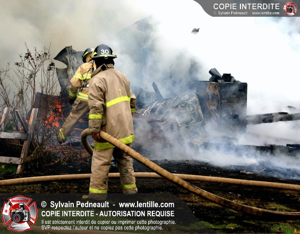L'incendie était tout de même d'une bonne dimension puisque la colonne de fumée se voyait à plusieurs kilomètres de distance et la maison adjacente a été légèrement endommagée par la chaleur.