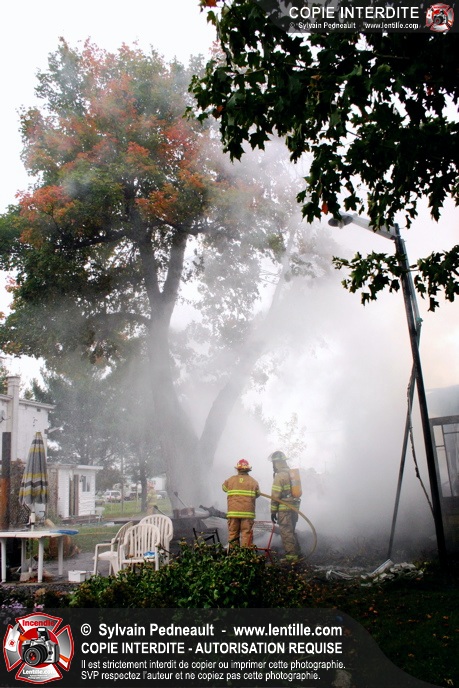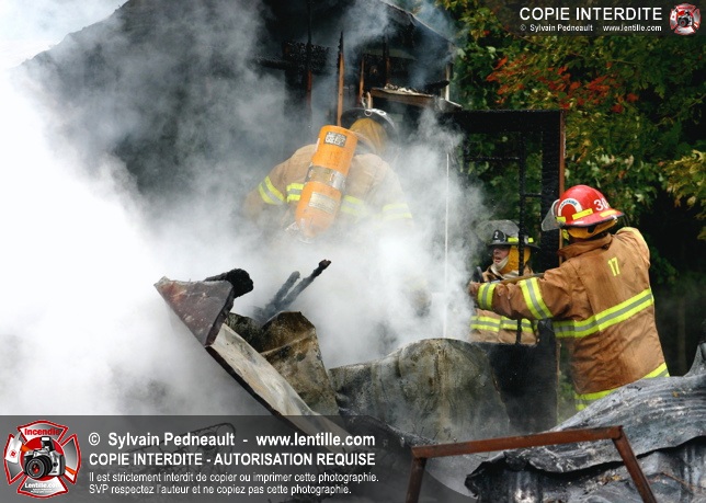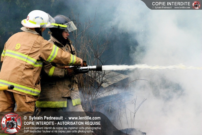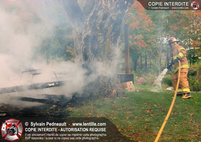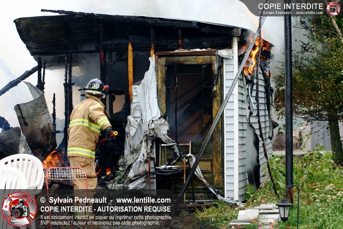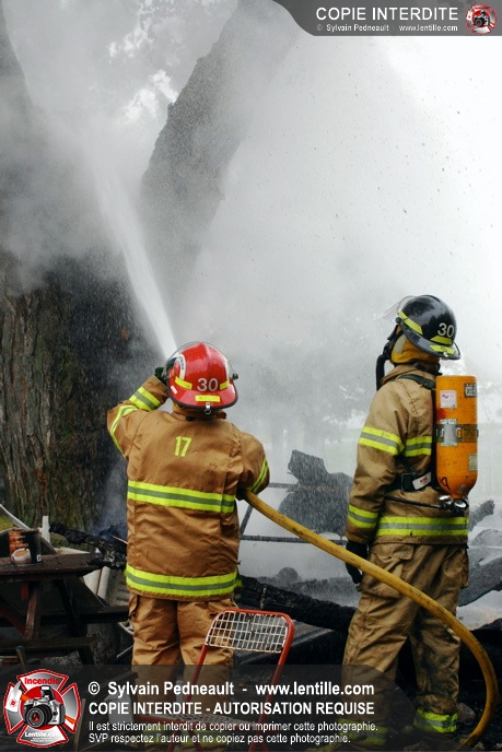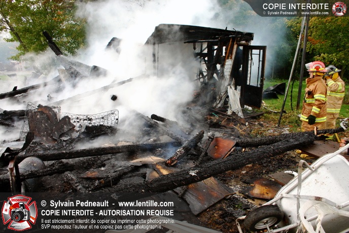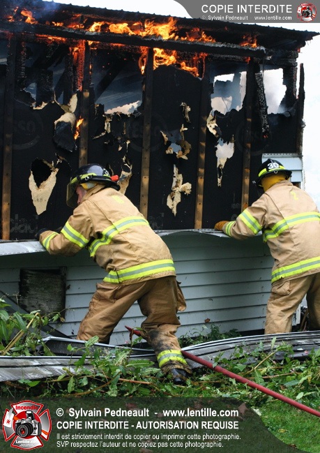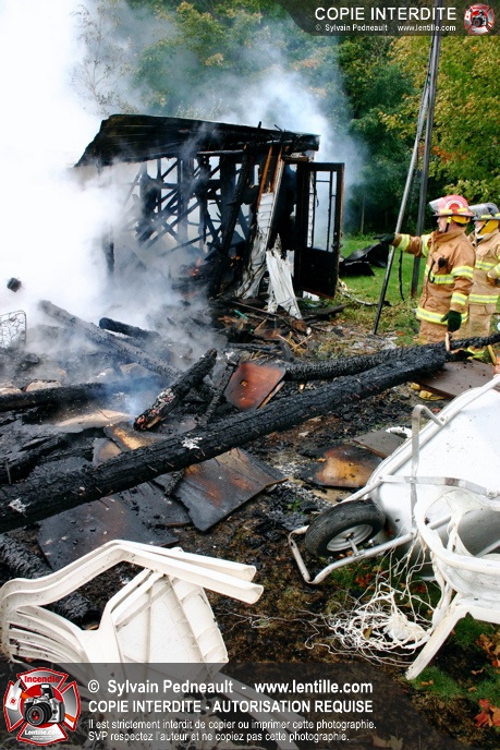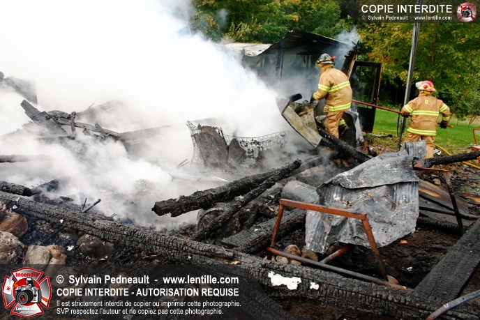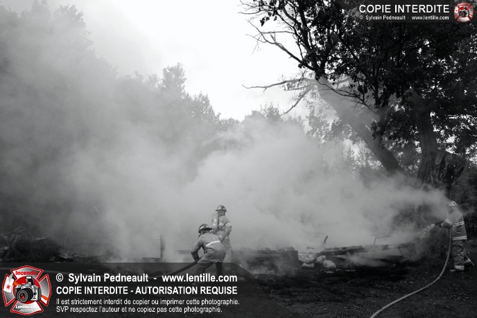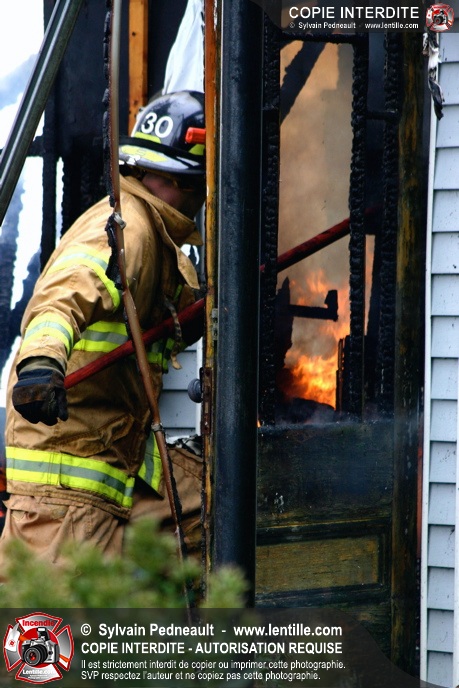 L'incendie était tout de même d'une bonne dimension puisque la colonne de fumée se voyait à plusieurs kilomètres de distance et la maison adjacente a été légèrement endommagée par la chaleur.