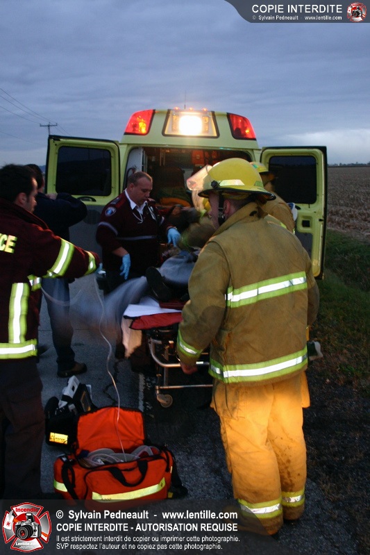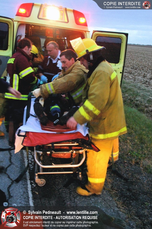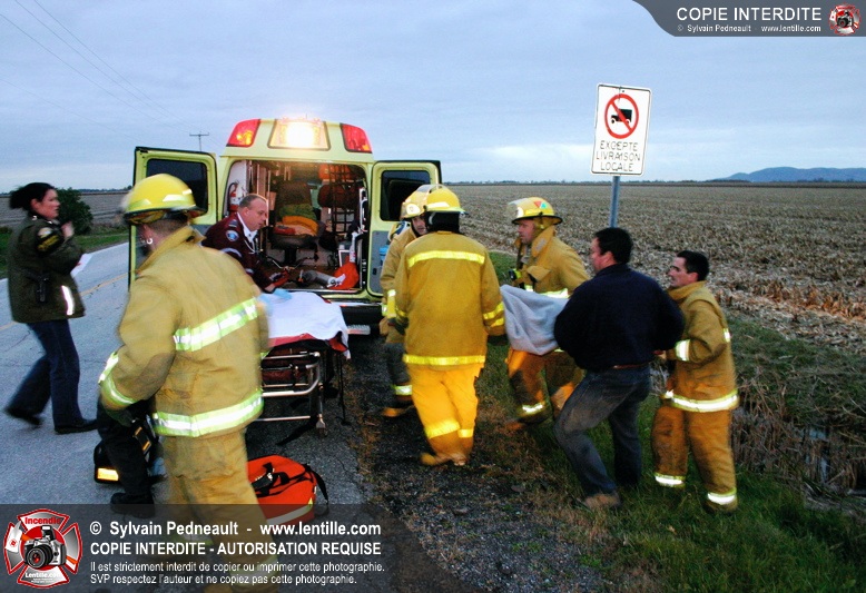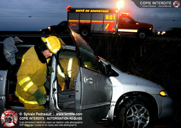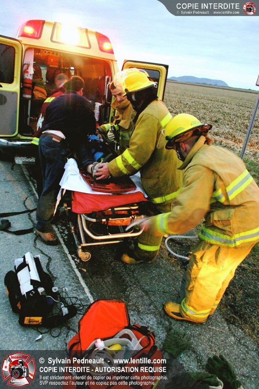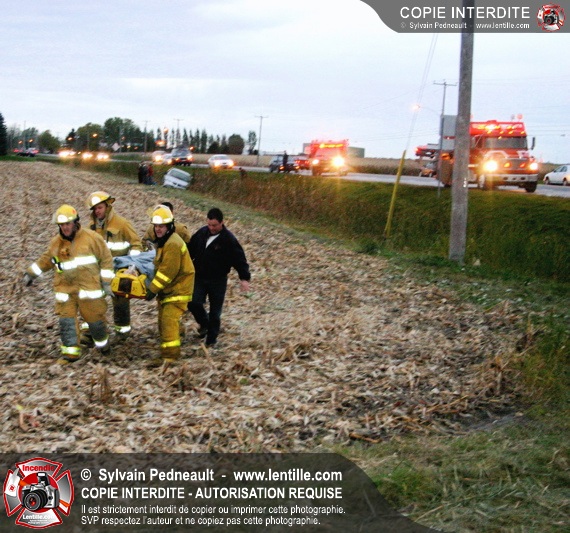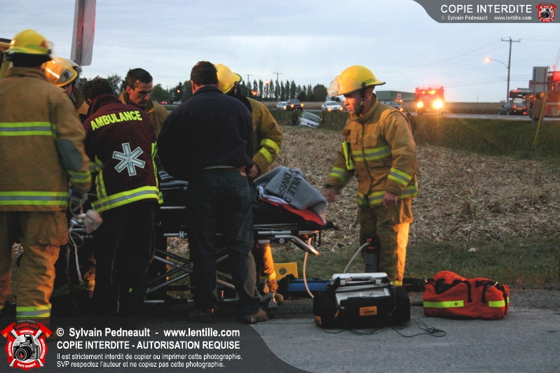 L'unité de sauvetage du Service de sécurité incendie de Saint-Hyacinthe a été appelée sur le Grand Rang St-François pour évacuer la conductrice d'un véhicule ayant fait une sortie de route. La victime étant inconsciente, les secours se sont rapidement organisés pour l'acheminer à l'hôpital.