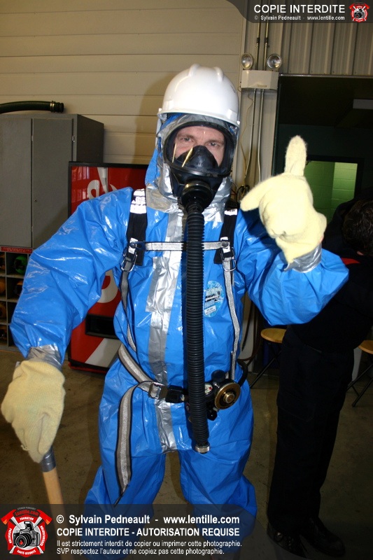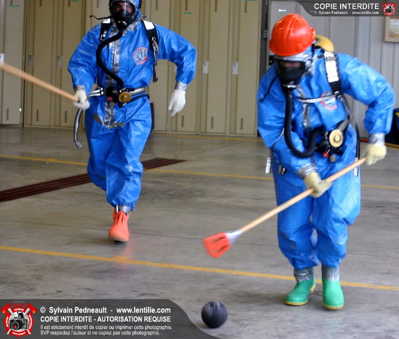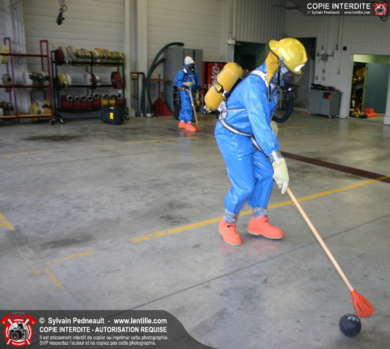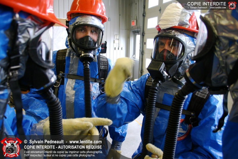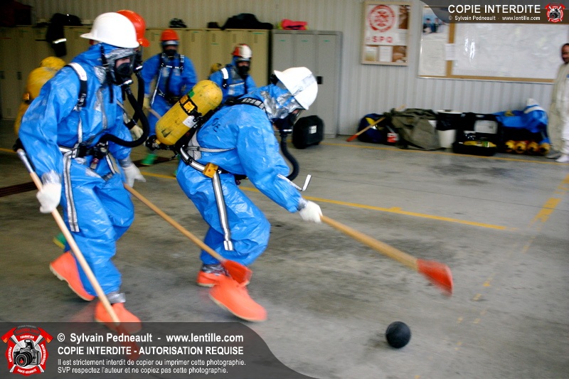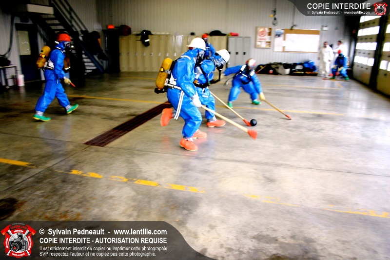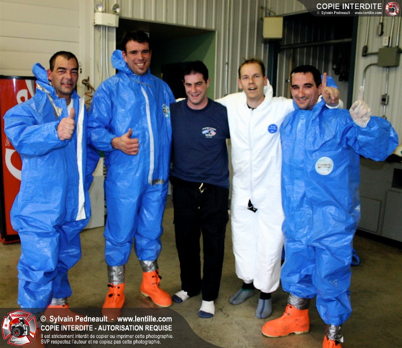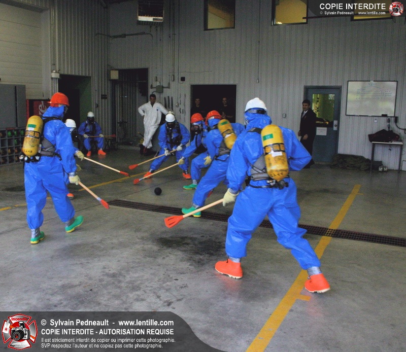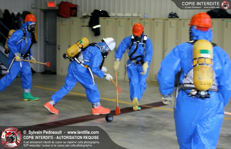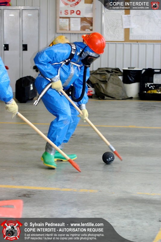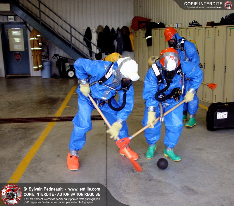 Comment joindre l'utile à l'agréable! Le CFR de Saint-Hyacinthe organisait aujourd'hui un match de hockey bien spécial: nos pompiers s'affrontaient vêtus de l'habit de protection haz-mat code B complet et réglementaire avec ARA.