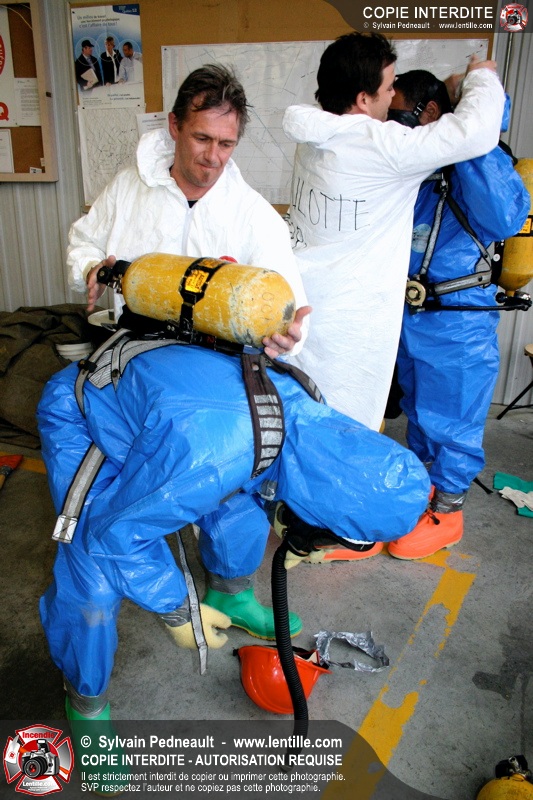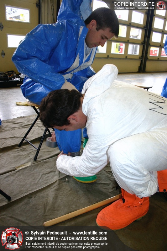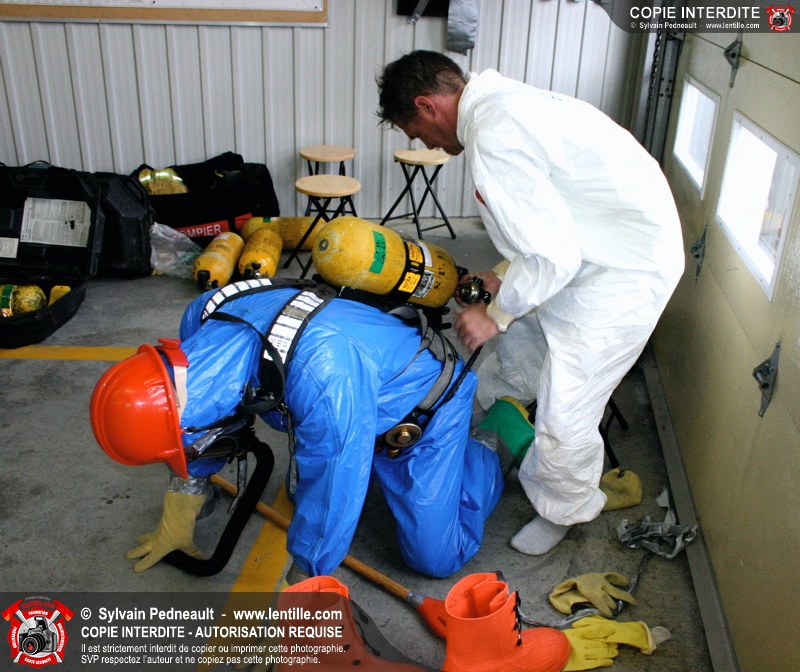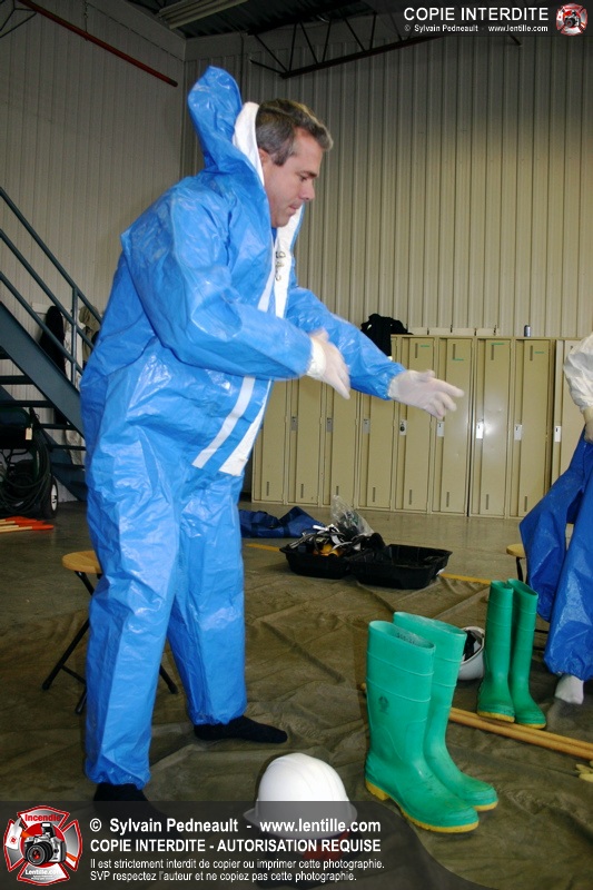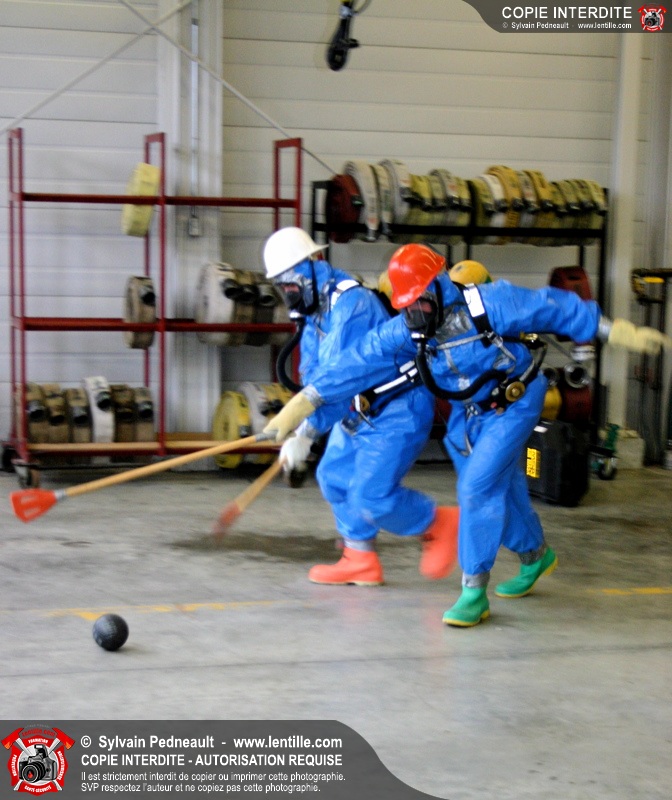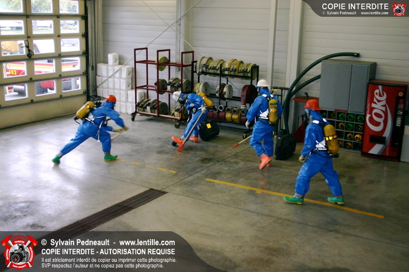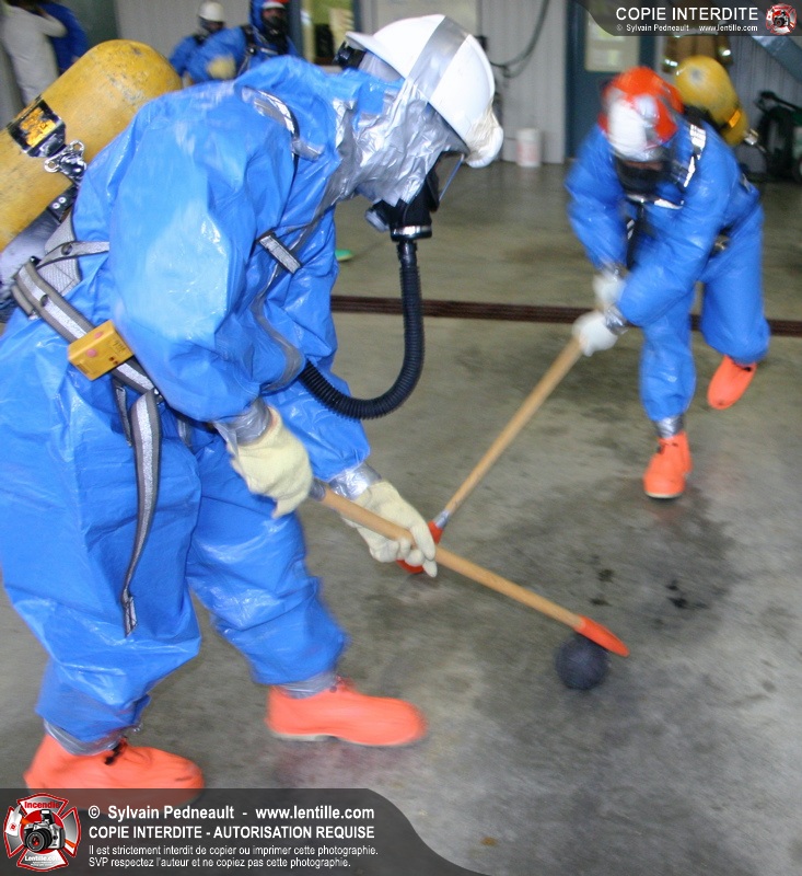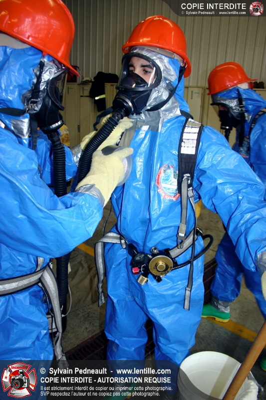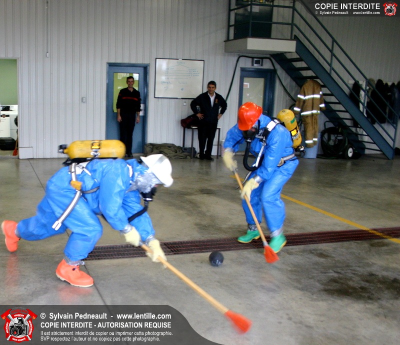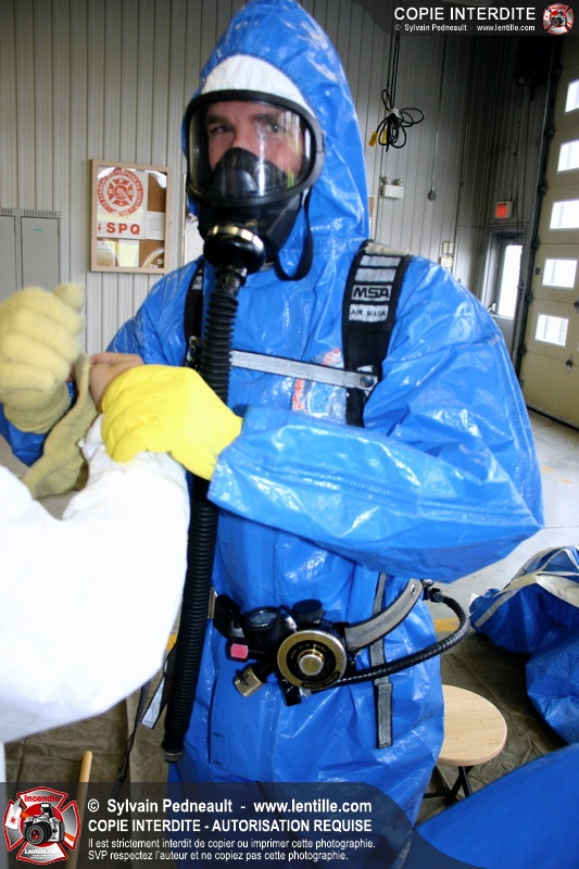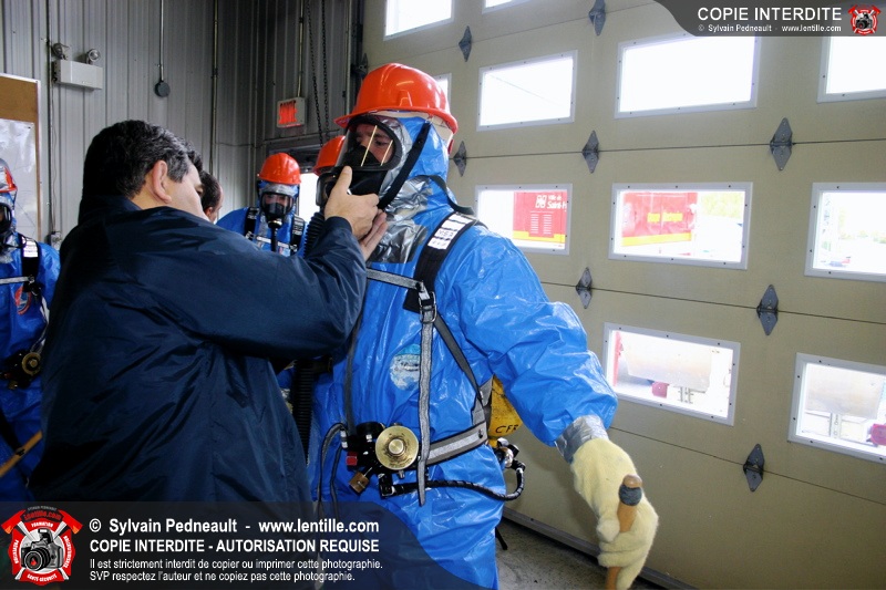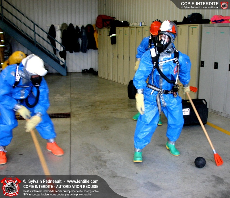 Comment joindre l'utile à l'agréable! Le CFR de Saint-Hyacinthe organisait aujourd'hui un match de hockey bien spécial: nos pompiers s'affrontaient vêtus de l'habit de protection haz-mat code B complet et réglementaire avec ARA.