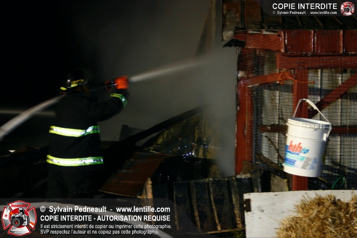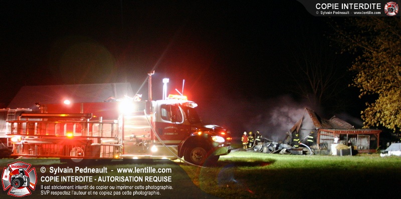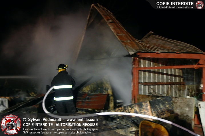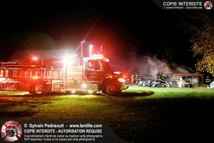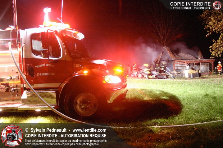 Une petite ferme habritant des lapins et des poules a été la proie des flammes à St-Barnabé. Le SSI de St-Barnabé a répondu à l'appel, inaugurant par le fait même sa nouvelle auto-pompe 260.