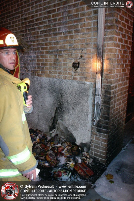 Un incendie de matières recyclables cause quelques dommages mineurs à un garage annexé à un immeuble résidentiel.