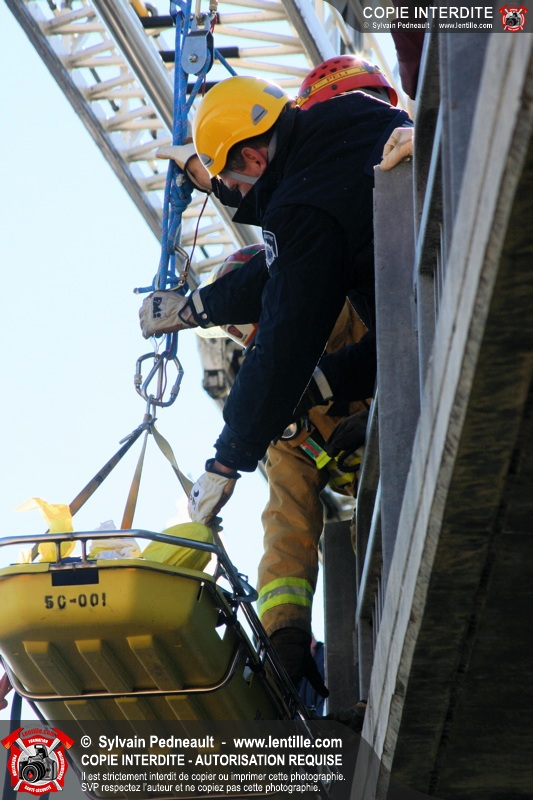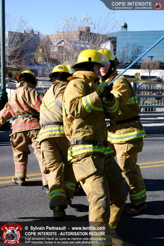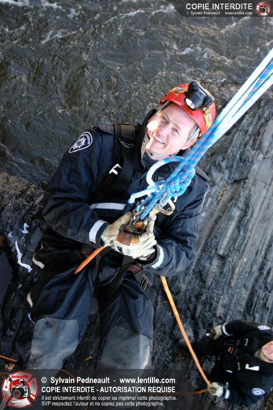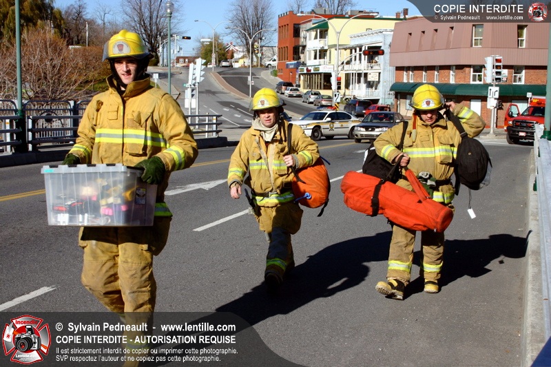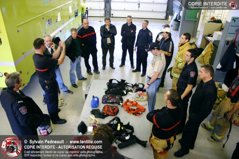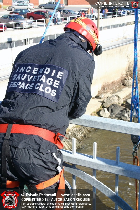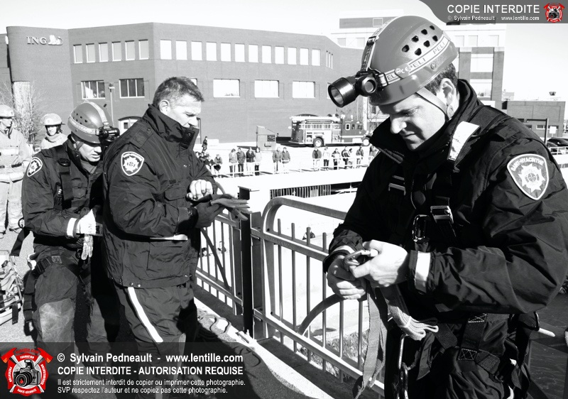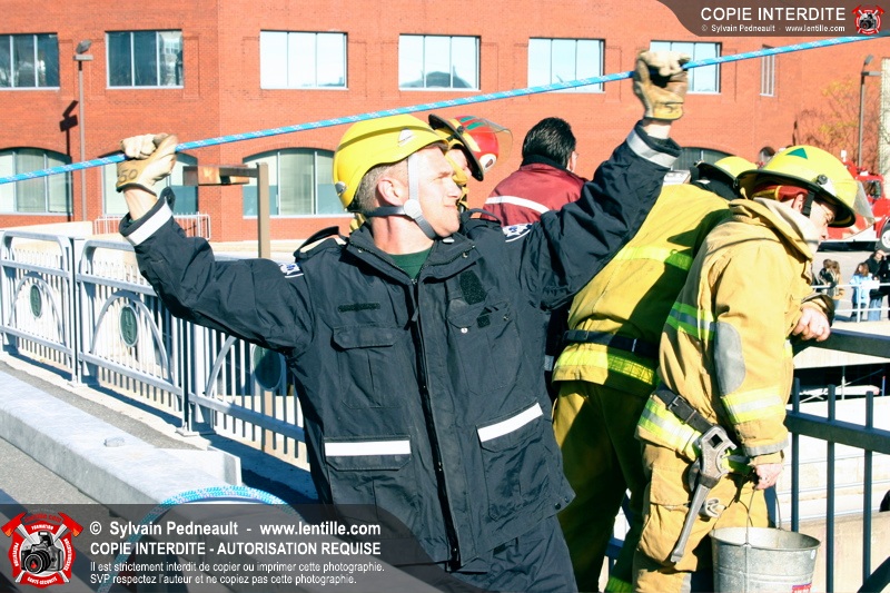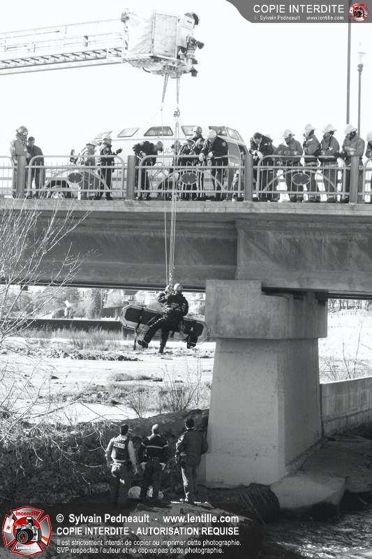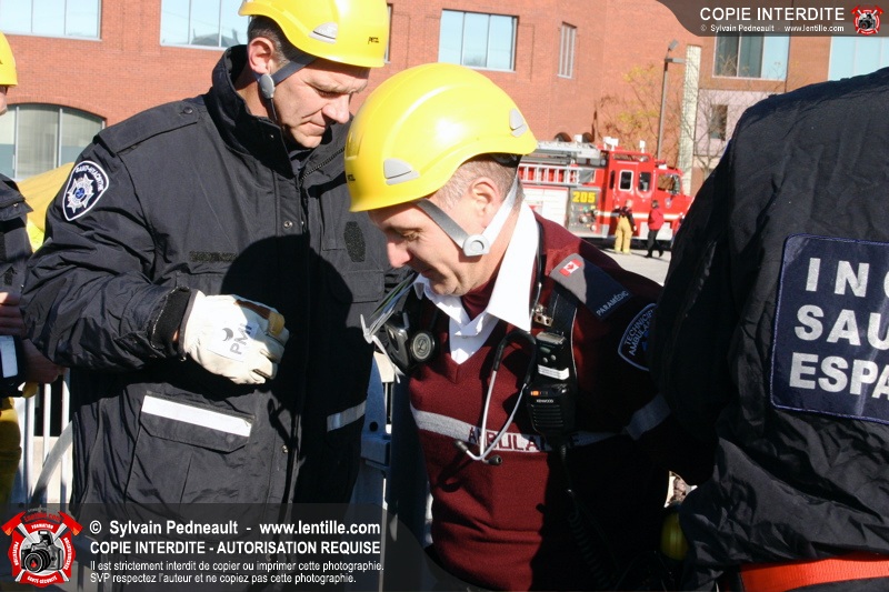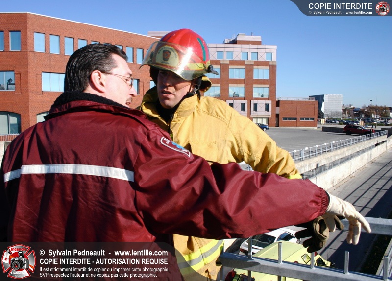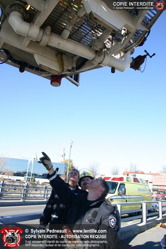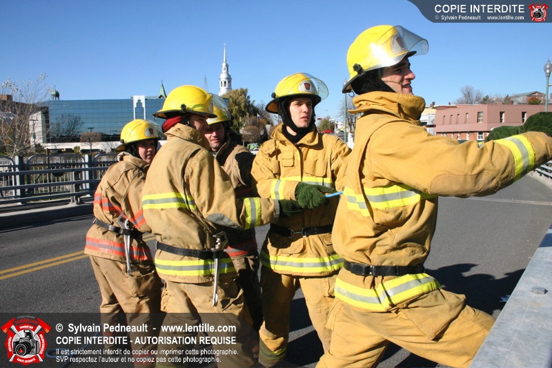 L'équipe de sauvetage en espace clos du Service de sécurité incendie de Saint-Hyacinthe intervient au pont Barsalou pour remonter le corps d'un homme gisant sur une surface rocheuse difficile d'accès sous le pont. L'intervention est suivie d'un debriefing et de la remise en état de l'équipement.