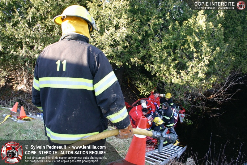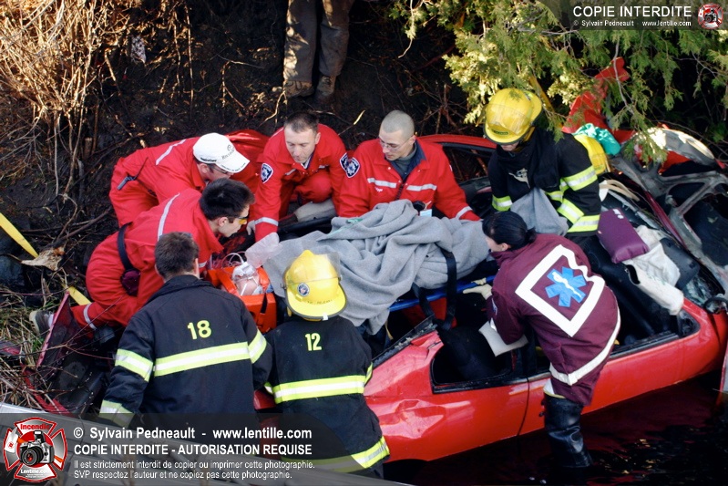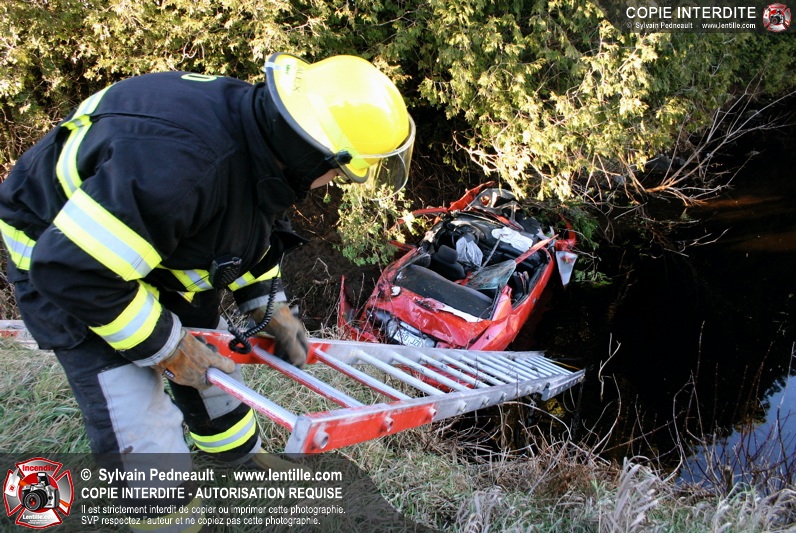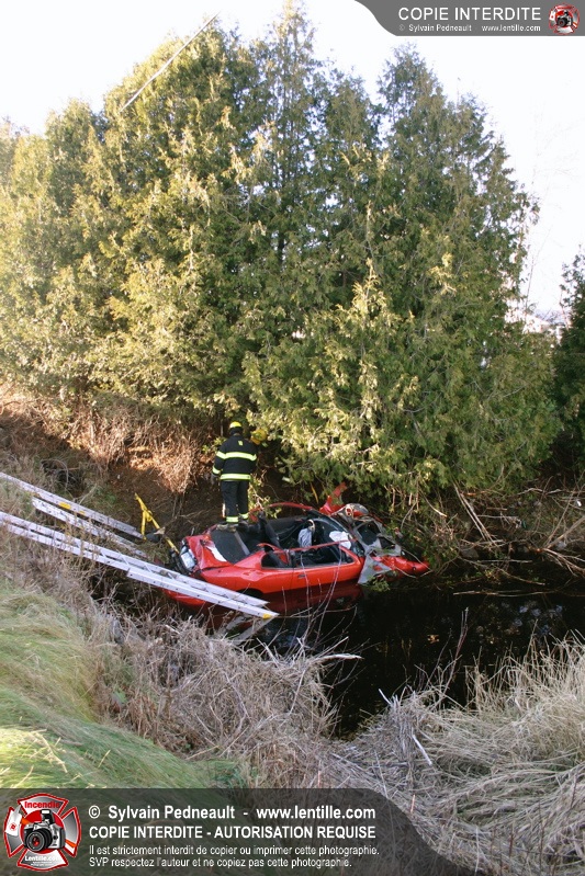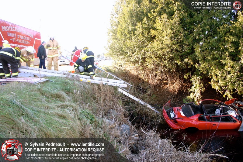Les PR et le SSI de St-Valérien se sont rendu sur les lieux d'un grave accident impliquant un véhicule. La conductrice de 23 ans s'en tire tout de même très bien, considérant l'état et la position du véhicule.