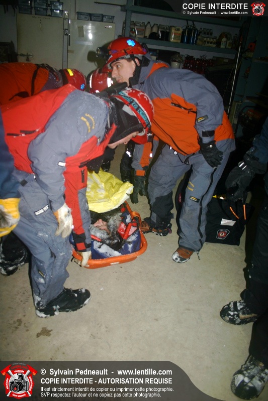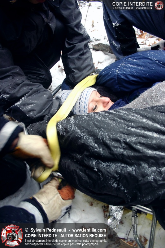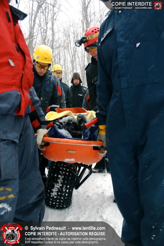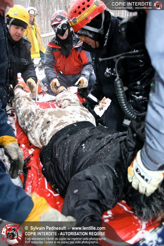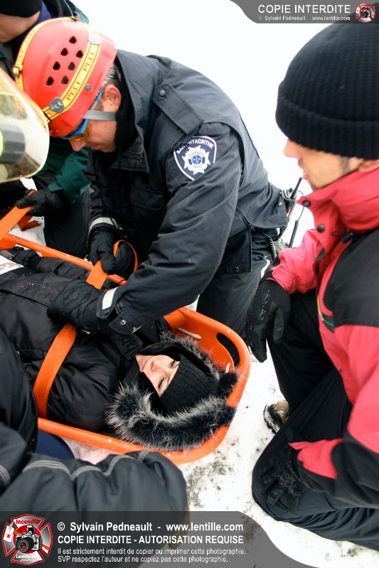 Les sauveteurs ont alors procédé à la délicate opération de dégager les victimes et les transporter sécuritairement jusqu'au centre de service où une ambulance fictive attendait.