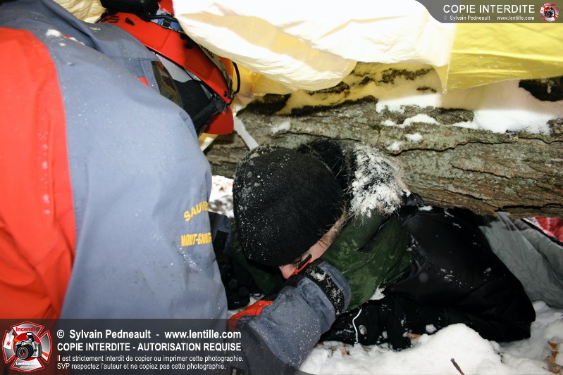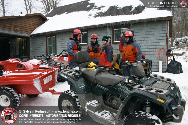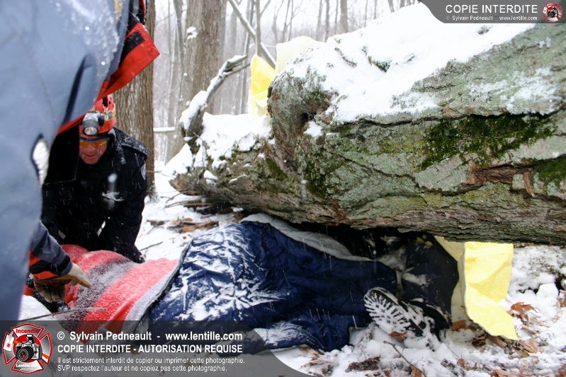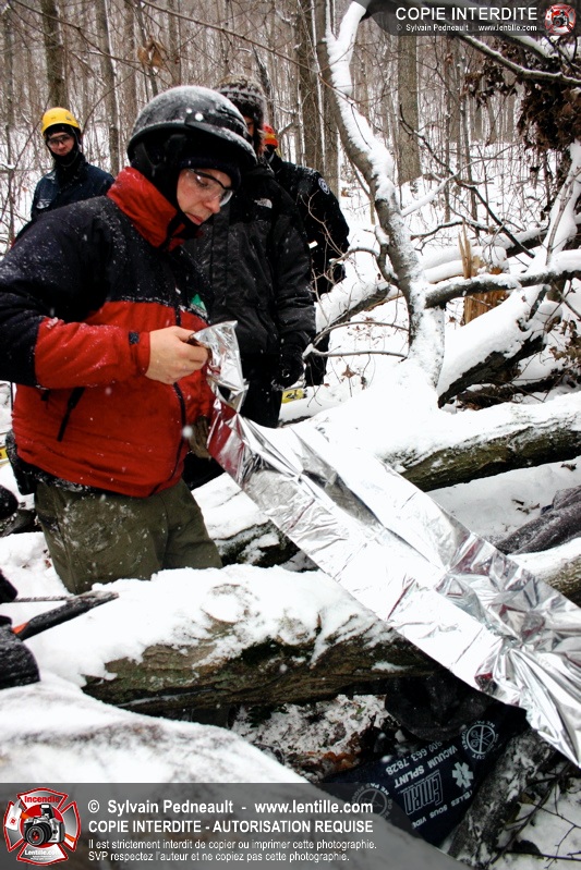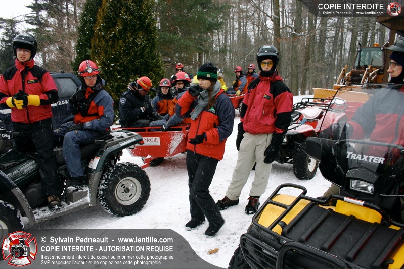 Après le dîner, une simulation à grande échelle a débuté avec la réception d'un appel indiquant que des randonneurs étaient blessés et incapables de bouger suite à la chute d'un arbre. Les équipes de sauvetage se sont rapidement mobilisées et se sont rendues sur les lieux de l'accident loin en forêt avec les patrouilleurs de McGill.