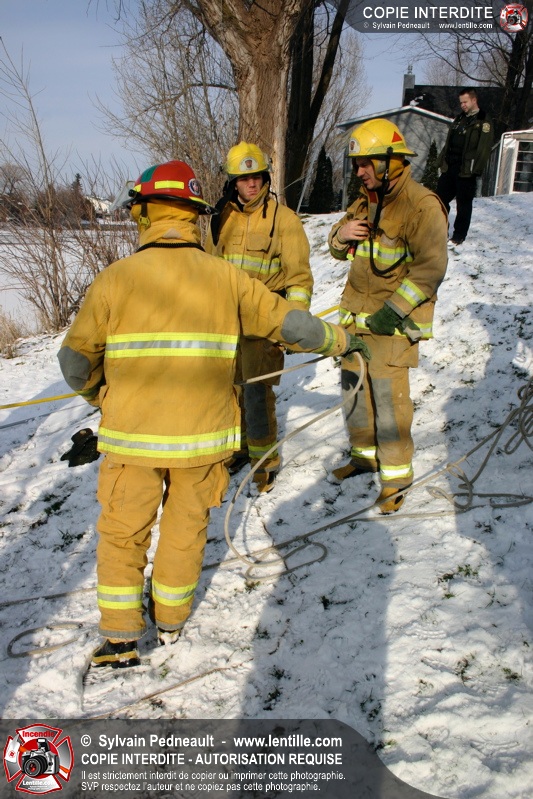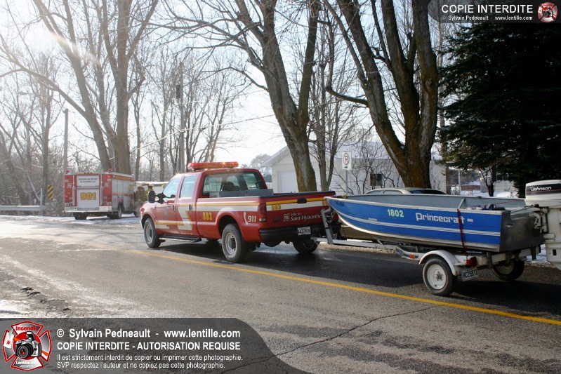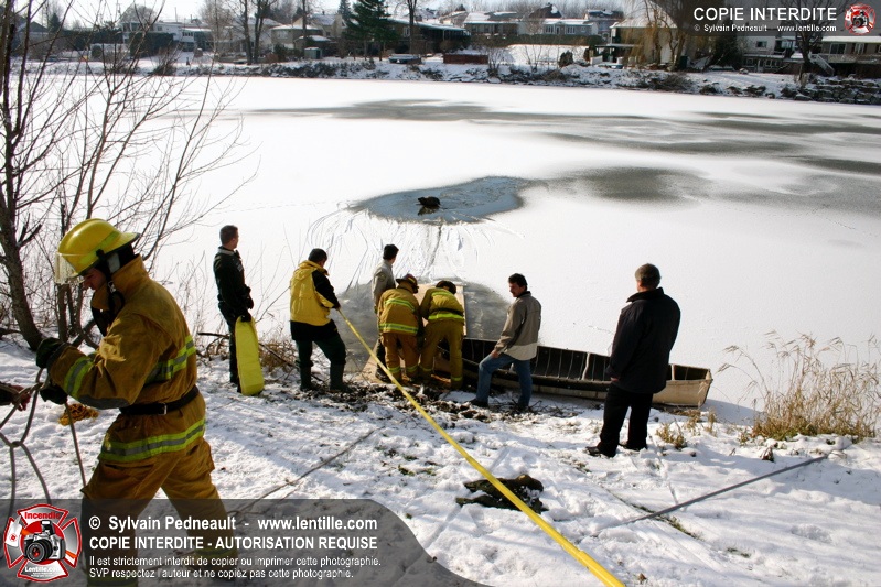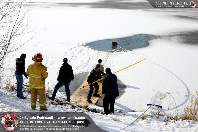 Une scène plutôt inquiétante attendait l'unité de sauvetage des pompiers de Saint-Hyacinthe. L'appel 9-1-1 initial indiquait qu'une personne et un chien étaient pris sur la glace de la rivière Yamaska; à leur arrivée cependant, les pompiers ne voyaient plus que le chien. Heureusement, l'information initiale était erronée et seulement le chien s'était rendu sur la rivière.