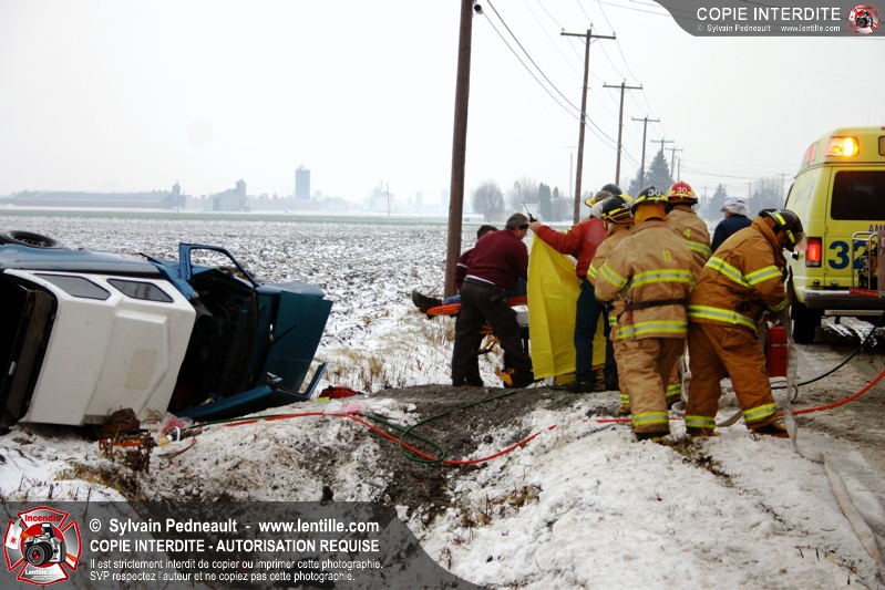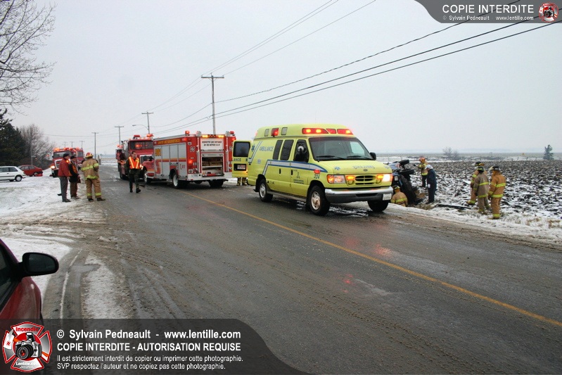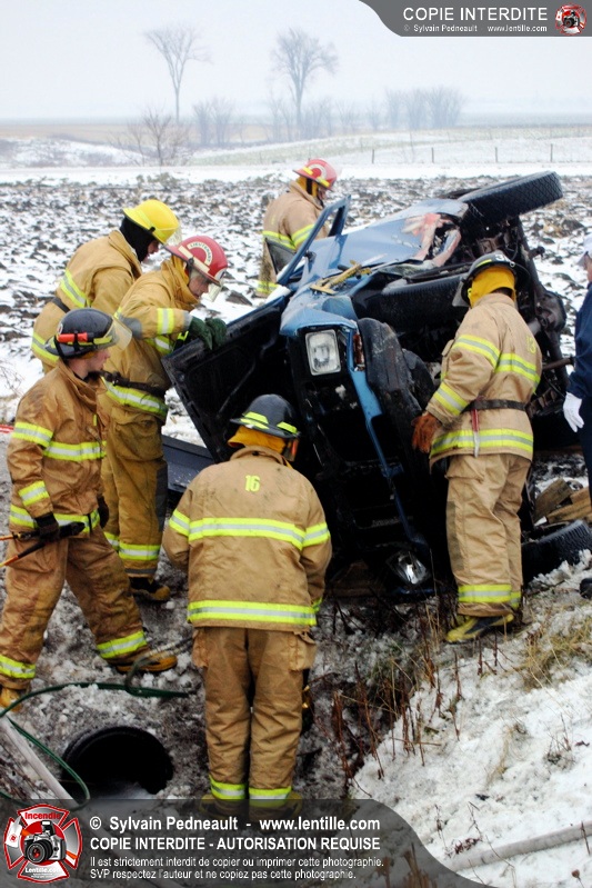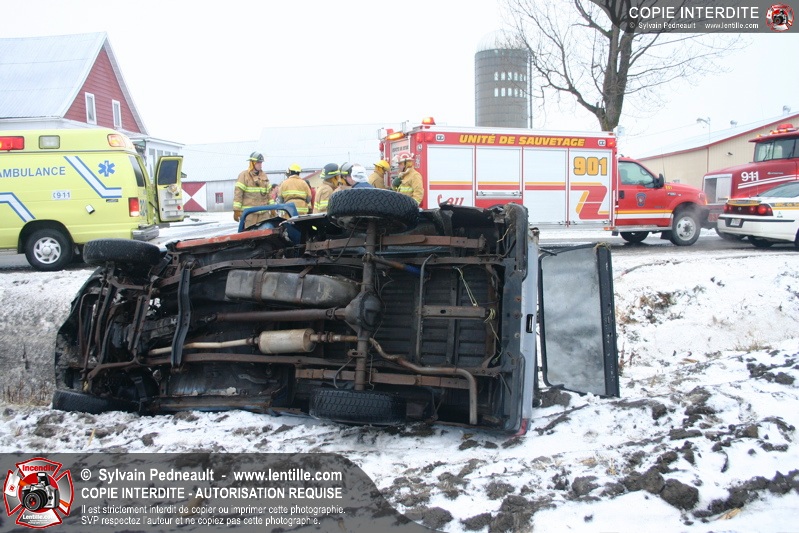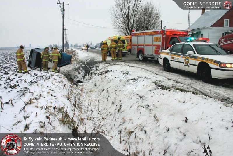 La chaussée glissante serait à l'origine d'un accident mortel sur le 2e Rang Ouest à St-Simon. L'unité de sauvetage 901 a été appelée sur les lieux pour la désincarcération.
