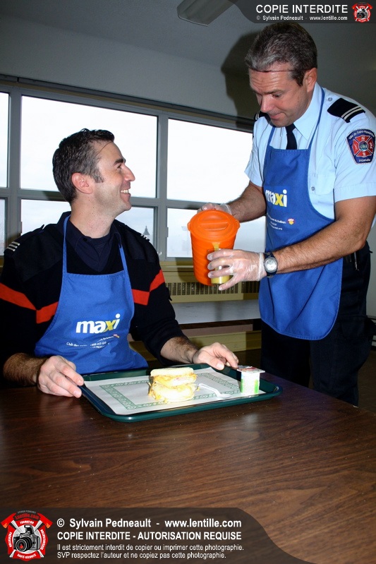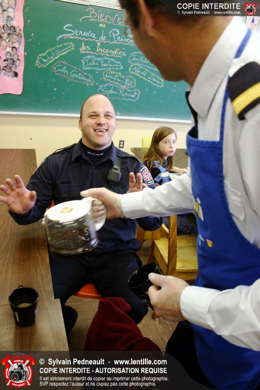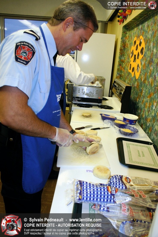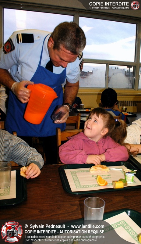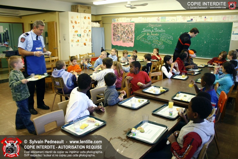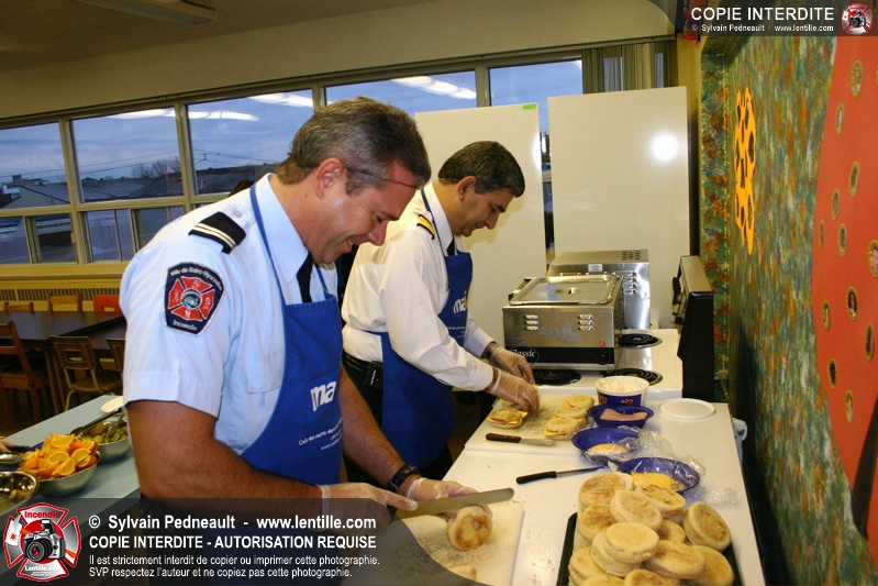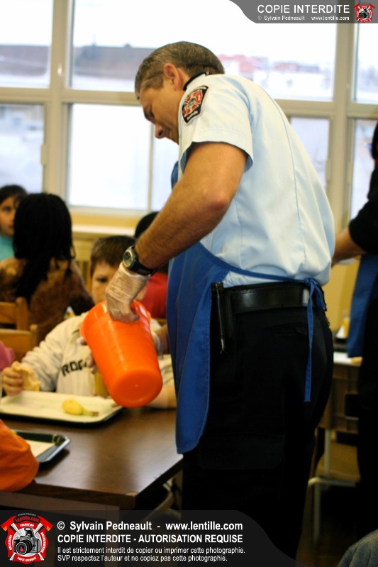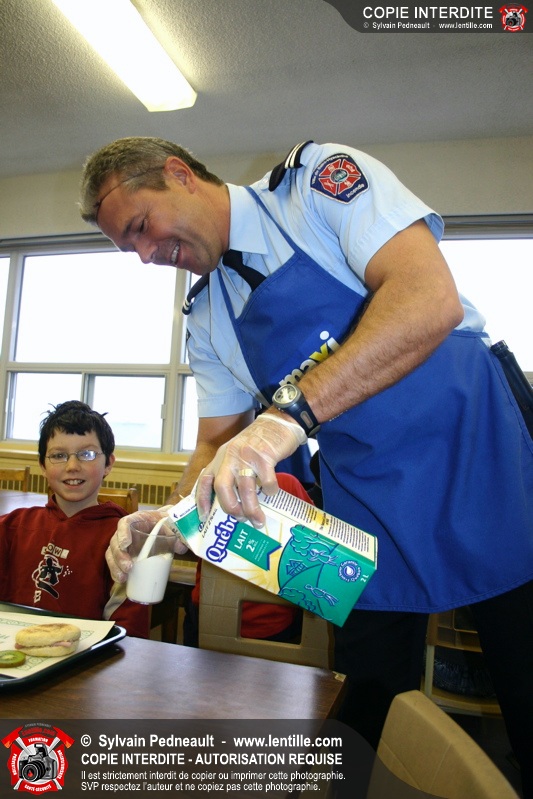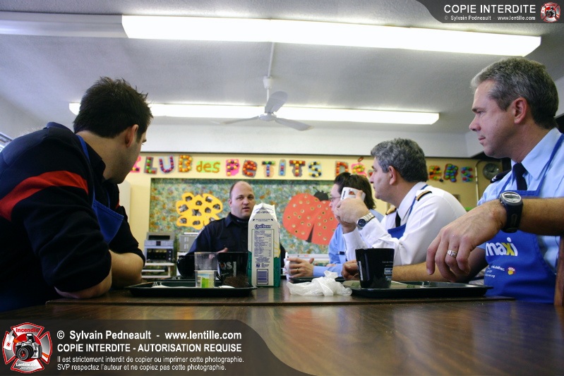 Le 1er décembre dernier, le Service de sécurité incendie de Saint-Hyacinthe est venu prêter main forte au Club des Petits Déjeuners dans une école primaire de Saint-Hyacinthe. Les officiers et pompiers ont ainsi préparé et servi le déjeuner à des dizaines d'enfants défavorisés.
