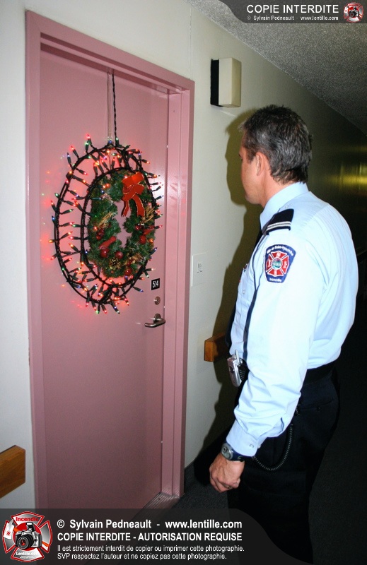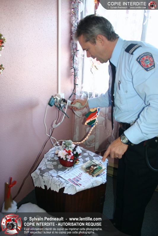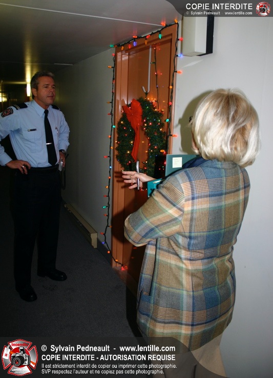 L'agent de prévention a également profité de l'occasion pour renseigner les gens sur les dangers d'installer des décorations de Noël lumineuses dans les portes de logements.