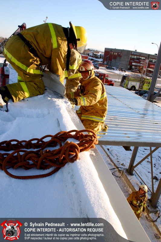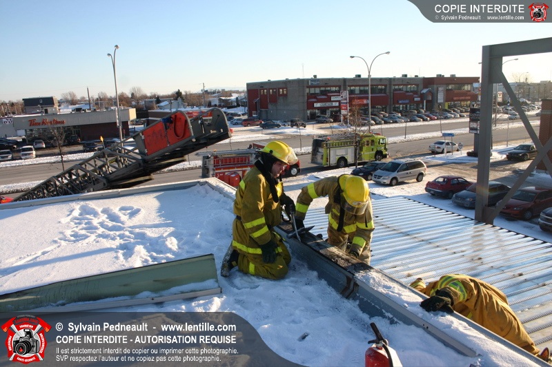 Des travaux de soudure ont causé un début d'incendie dans la toiture de l'édifice habritant autrefois la Caisse Populaire sur le boulevard Casavant. Le feu a cependant été rapidement contrôlé avec un extincteur, et les pompiers ont fait les vérifications nécessaires au toit, prenant bien soin de ne pas causer de dommages inutiles en retirant des morceaux de la toiture.