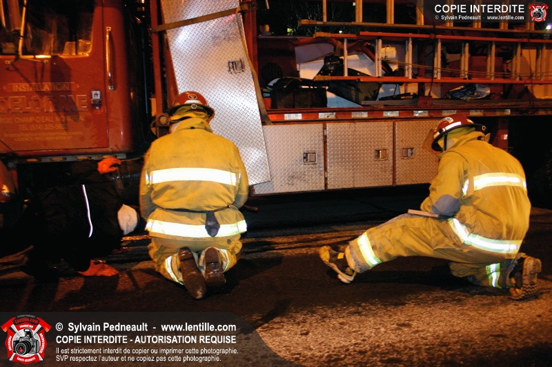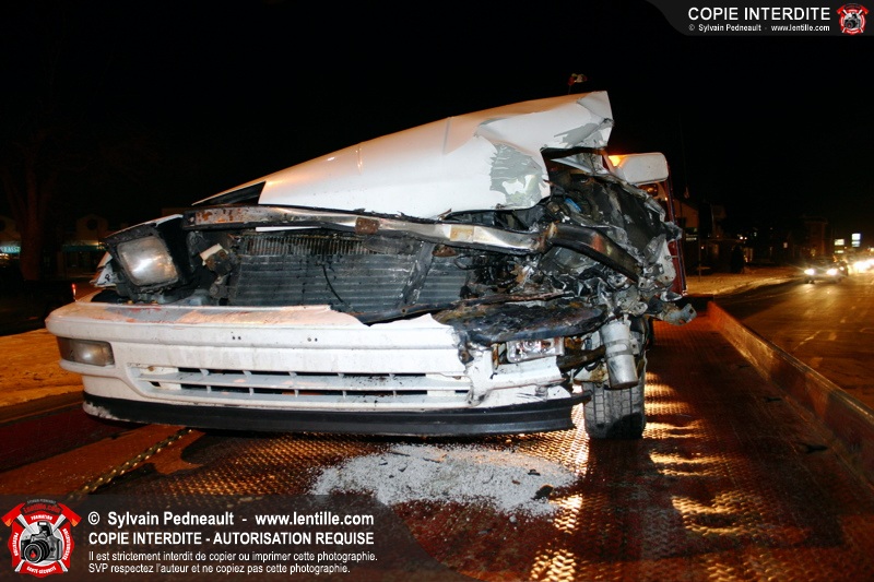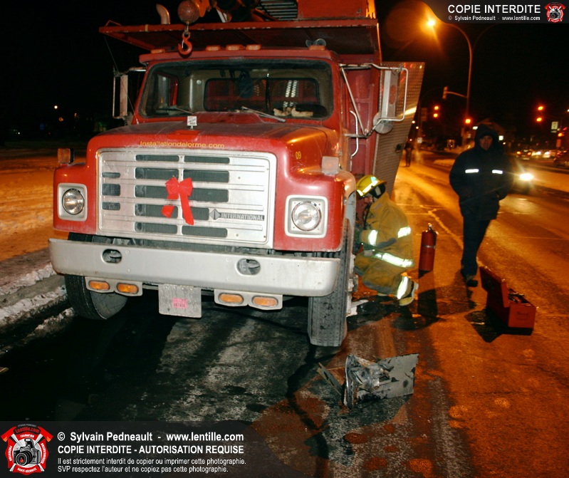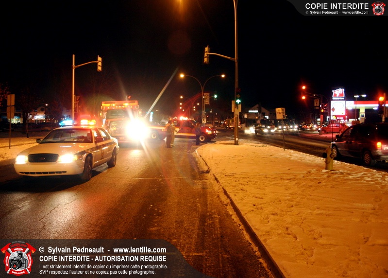 Vers 18h15, un camion a percuté une voiture ayant omis de s'arrêter à un feu rouge à l'intersection très achalandée des boulevards Laframboise et Ste-Anne. La conductrice a été conduite à l'hôpital qui se trouvait juste en face par les paramédics.