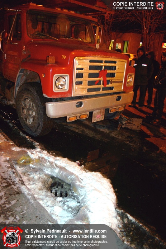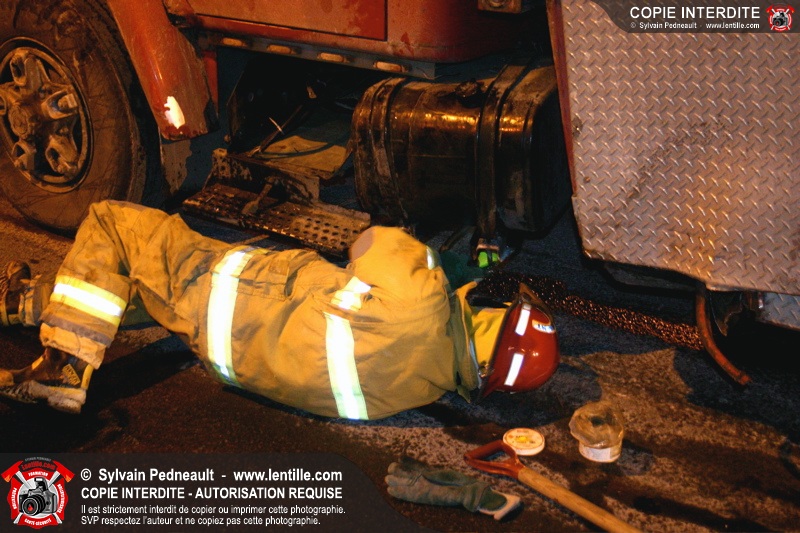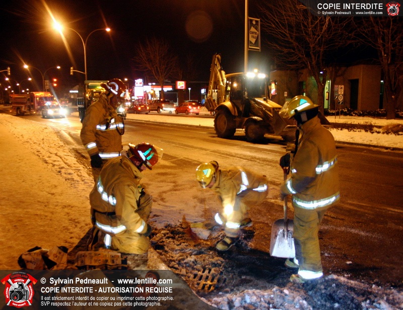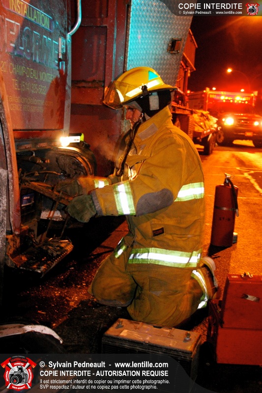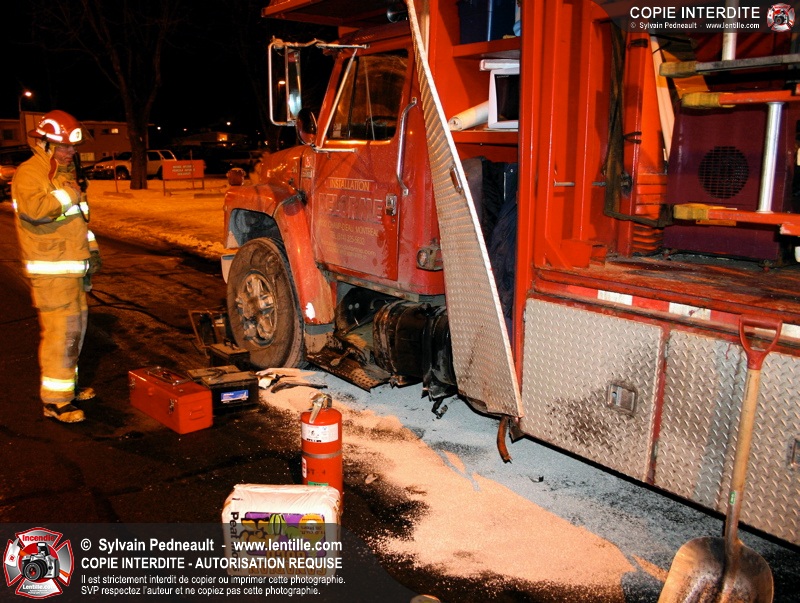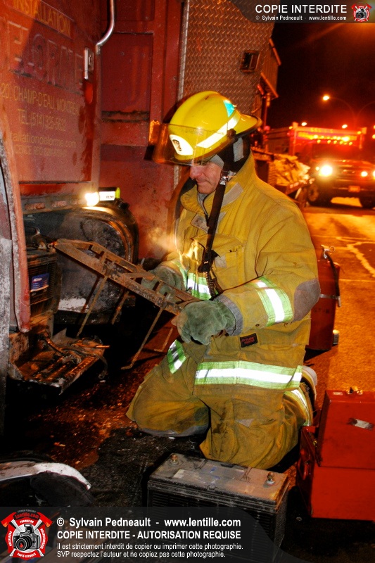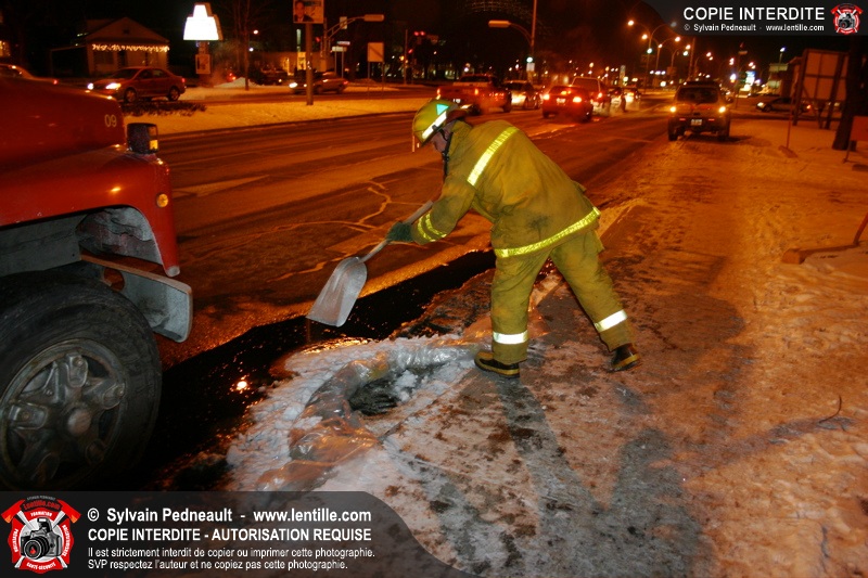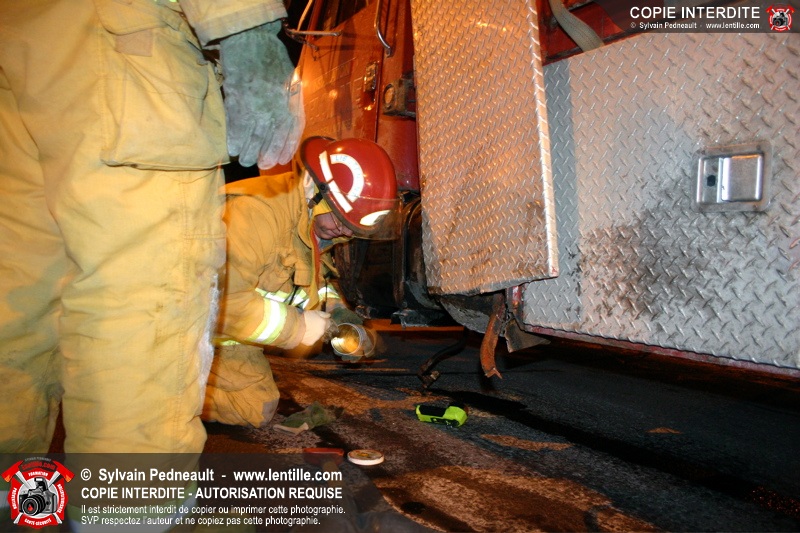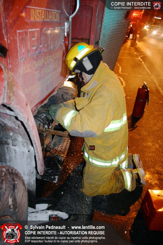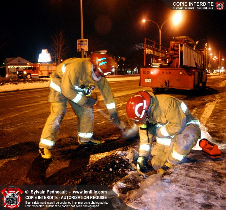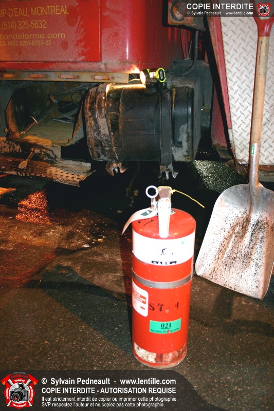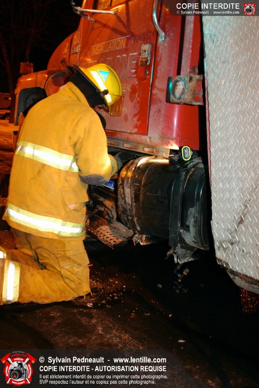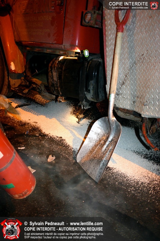 Le camion a subit des dommages à un réservoir de carburant, ce qui a causé une importante fuite de diesel. Les pompiers ont dû rester sur place pendant de longues heures pour gérer, avec Environnement Québec, le transporteur et la Ville, la récupération du liquide qui s'était infiltré dans une bouche d'égout fluvial et sanitaire. Le 10-90 a été donné à 1h30, soit six heures après le 10-17 initial.