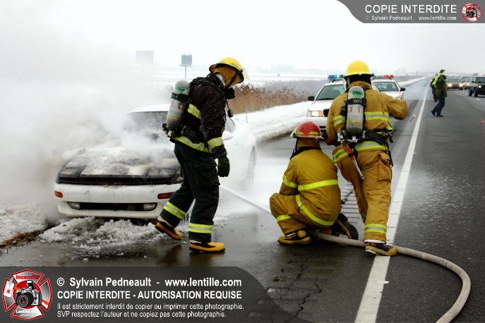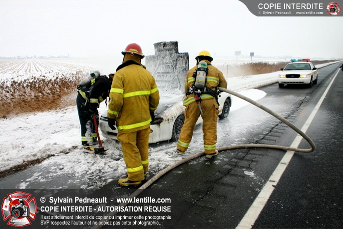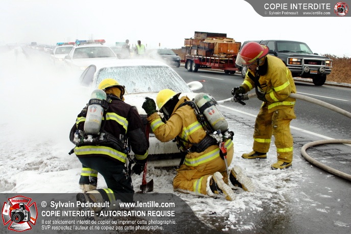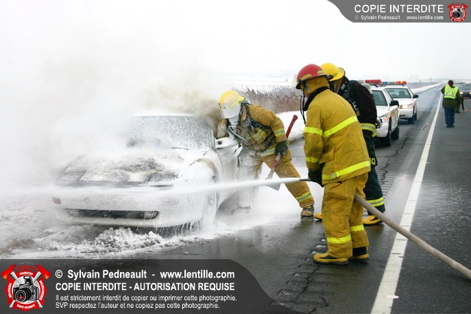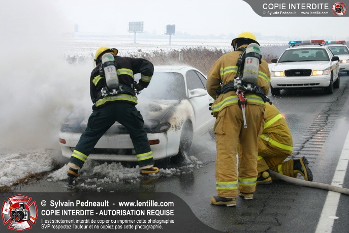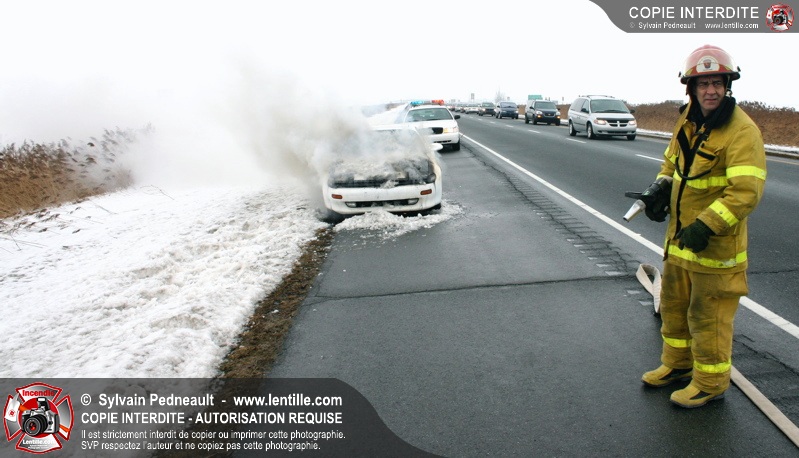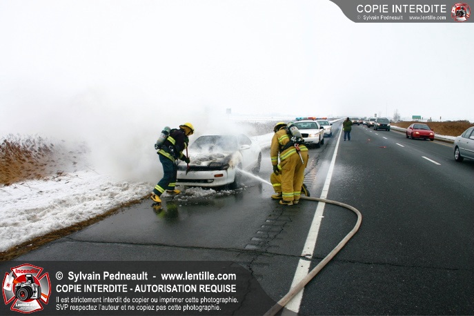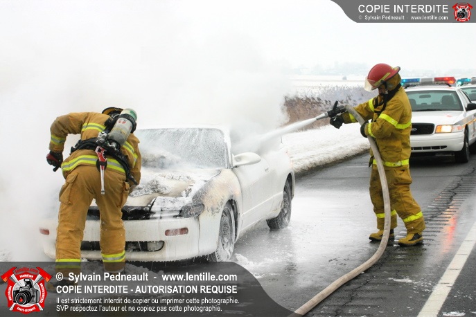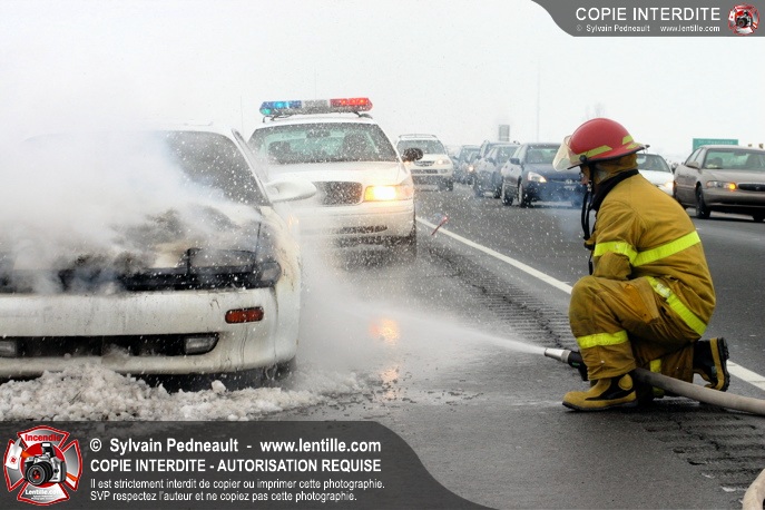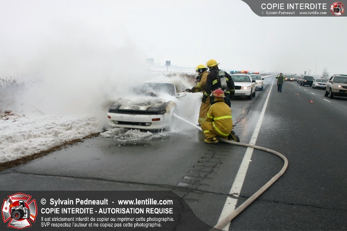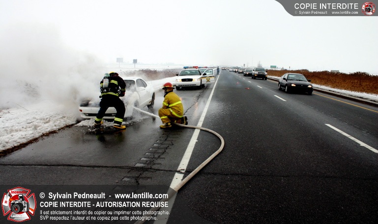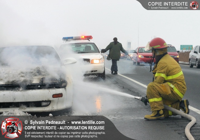 Les pompiers se sont rendus sur l'autoroute 20 Est près de la sortie La Présentation pour éteindre un incendie dans un véhicule.