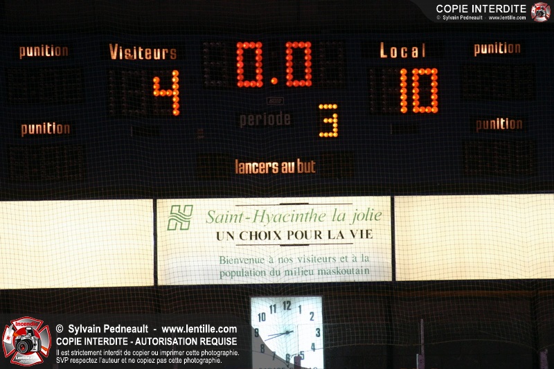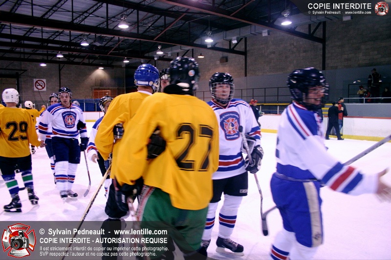 Le match s'est terminé 10 à 4 pour la Ville. Les buts ont été comptés par: Pompier#28 Nicolas Millote, Ville#33 Pascal M., Ville#30 Yves Maheu, Ville#26 Émilien Pelletier, Ville#29 François St-Pierre, Ville#27 Marco Péloquin, Ville#25 Maxime P., Pompier#24 Louis Dautrey, Ville#23 Bernard B., Ville#25 Maxime P., Ville#25 Maxime P., Ville#22 Daniel L., Pompier#24 Louis Dautrey, Pompier#28 Nicolas Milotte.