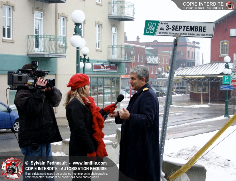 Le directeur du Service de sécurité incendie de la Ville de Saint-Hyacinthe, M. Gilles Courtemanche, a participé à un reportage réalisé par TV Cogeco relatif aux grands incendies dans l'histoire de Saint-Hyacinthe.