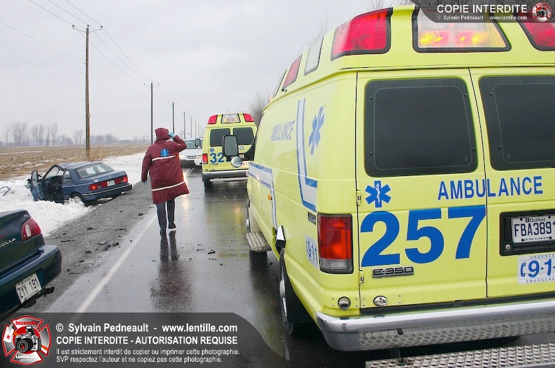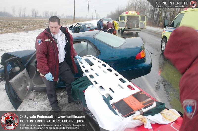 Les paramédics d'Ambulance Saint-Hyacinthe et les policiers de la Sûreté du Québec ont été dépêchés sur les lieux pour stabiliser et évacuer les occupants des véhicules. Les pompiers ont été appelés pour neutraliser le déversement de carburant survenu lors de l'accident.