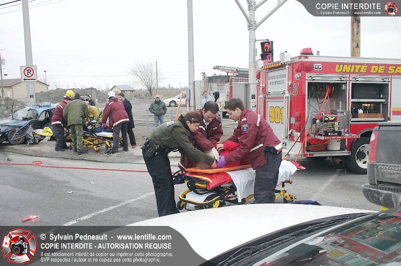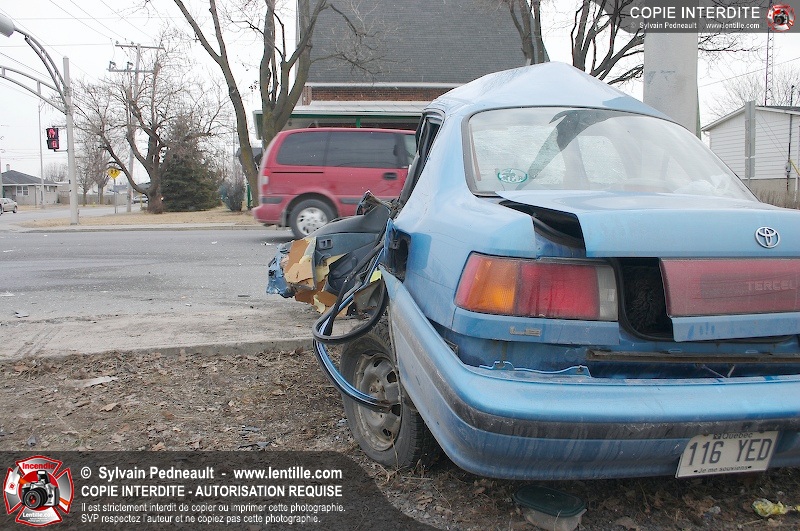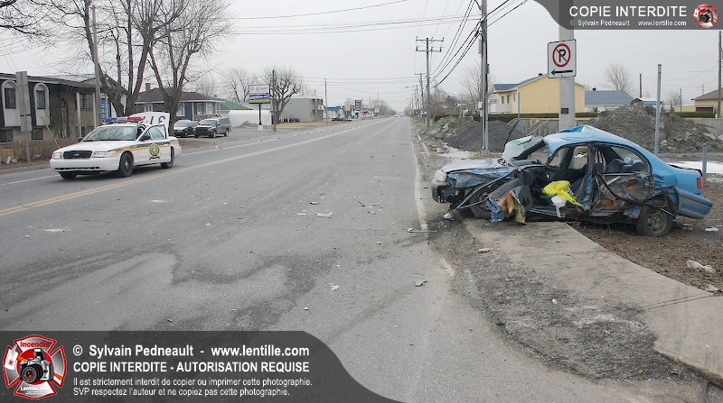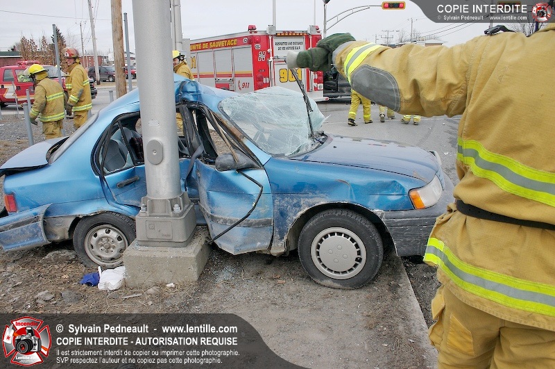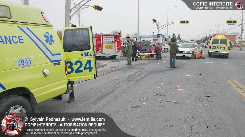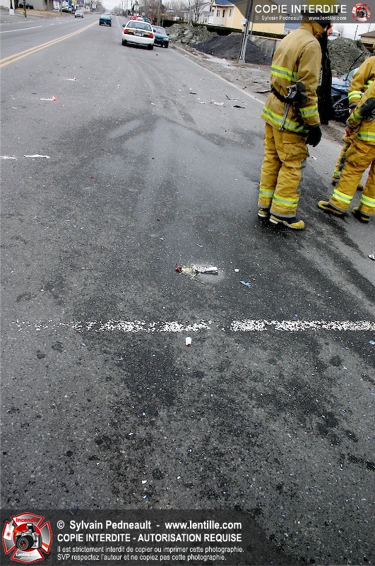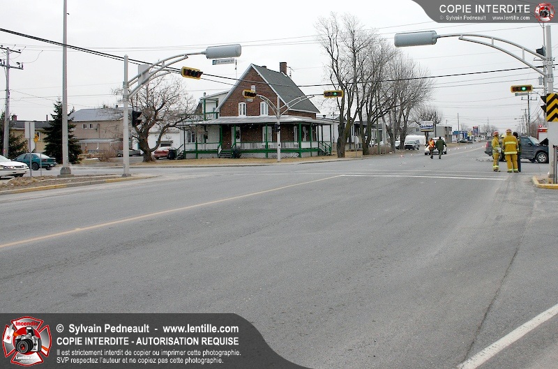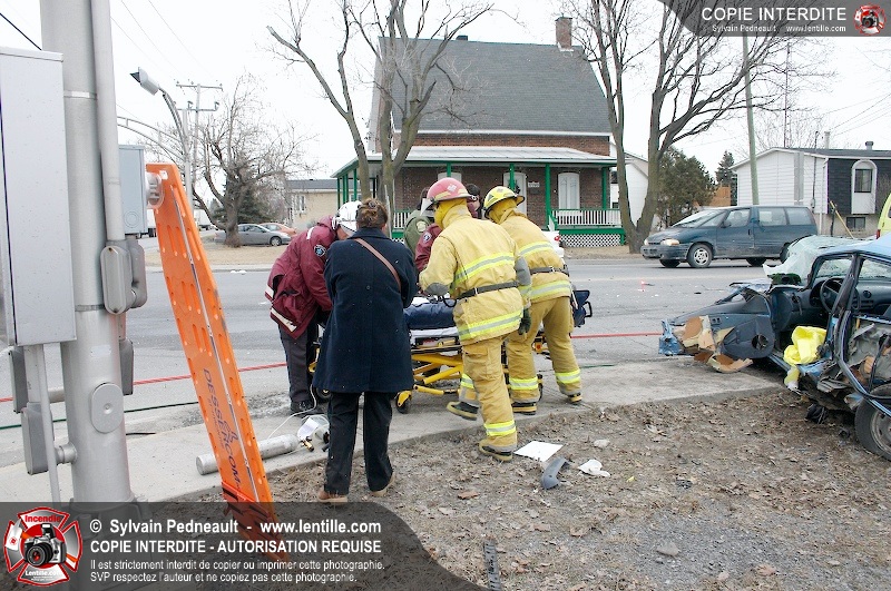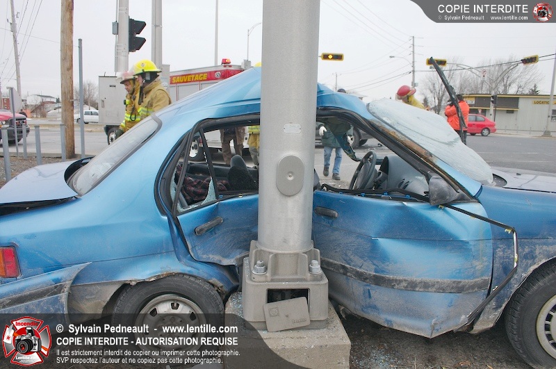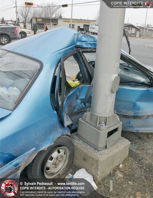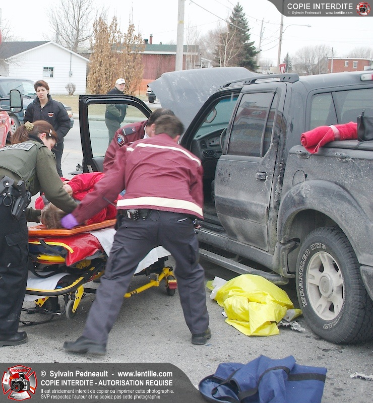 Une violente collision est survenue entre une camionnette et une petite voiture à l'angle des rues St-Louis et Des Seigneurs dans le secteur St-Joseph. Sous la force de l'impact, la voiture a été projetée contre un lampadaire. Après la désincarcération par les pompiers de Saint-Hyacinthe, les victimes ont été transportées d'urgence à l'hôpital par les paramédics d'Ambulance Saint-Hyacinthe. La Sûreté du Québec a pris en charge le site en attendant de compléter les expertises requises.