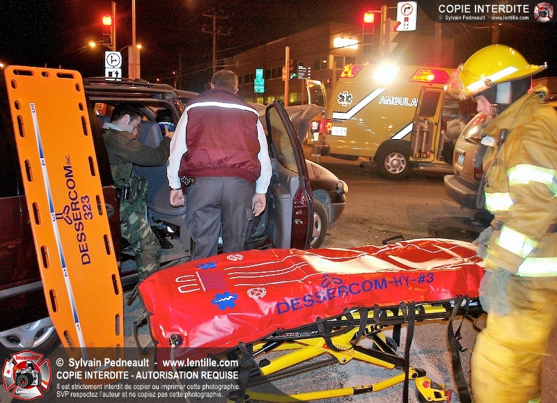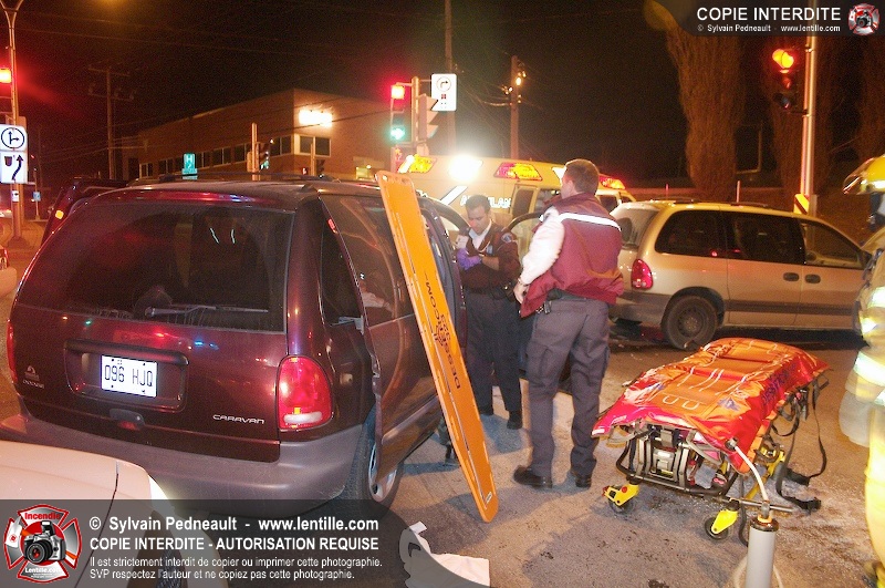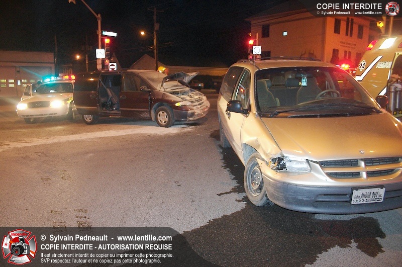 Deux minifourgonnettes sont entrées en collision à l'intersection Dessaules/Girouard juste en face de la caserne 1 à Saint-Hyacinthe. Les pompiers, paramédics et policiers sont intervenus pour neutraliser un début d'incendie, évacuer les occupants des véhicules et les acheminer au centre hospitalier. Heureusement, l'enfant et le bébé qui prenaient place à l'intérieur du véhicule le plus touché s'en sont sortis indems.
