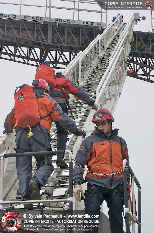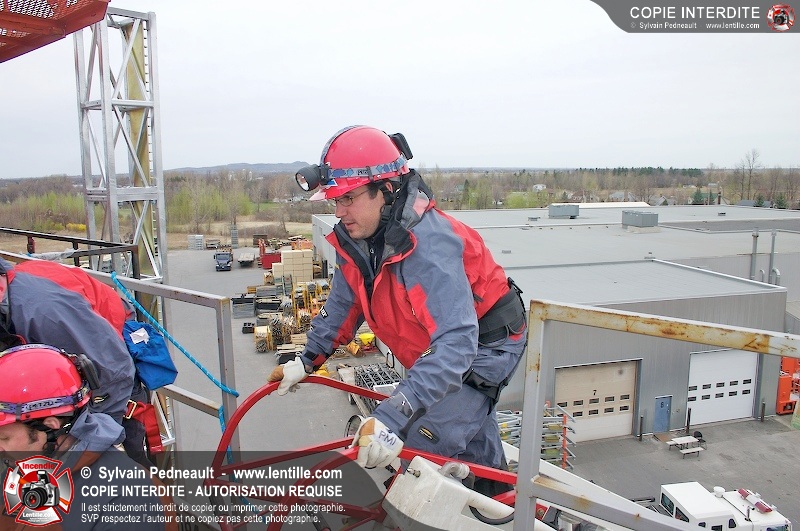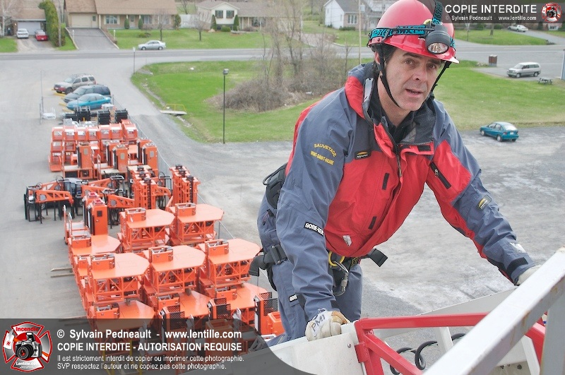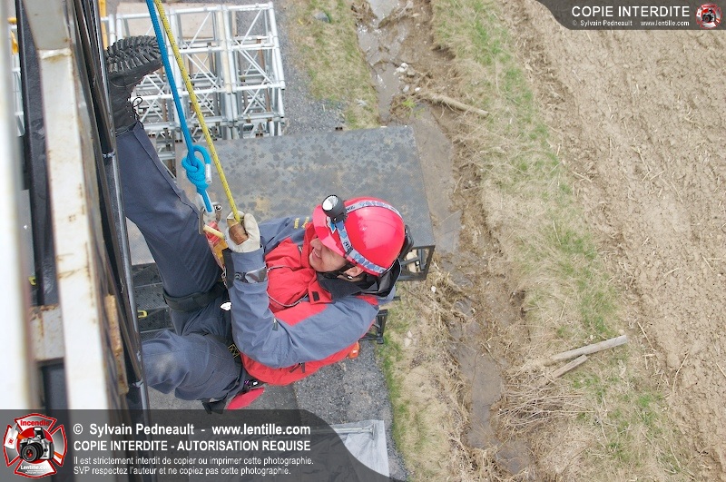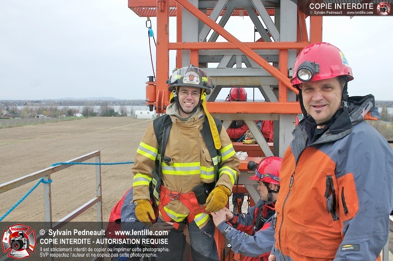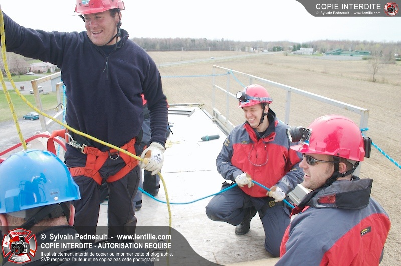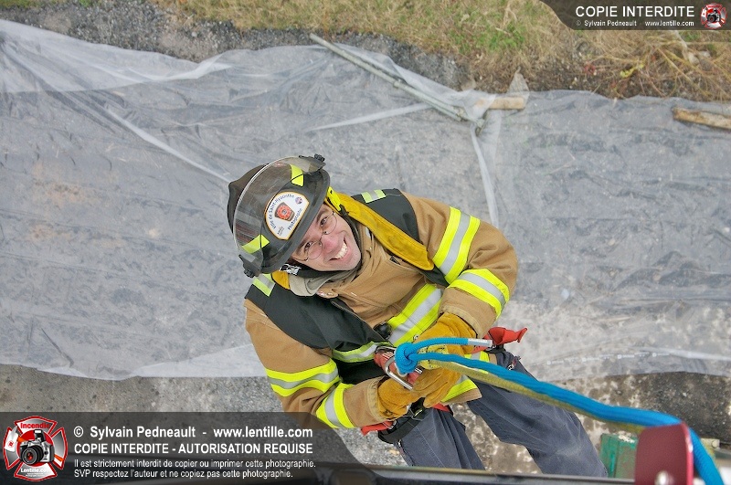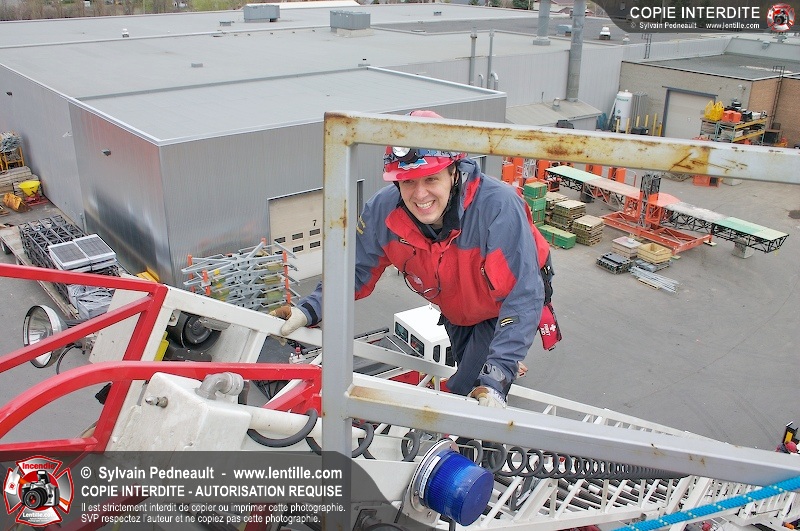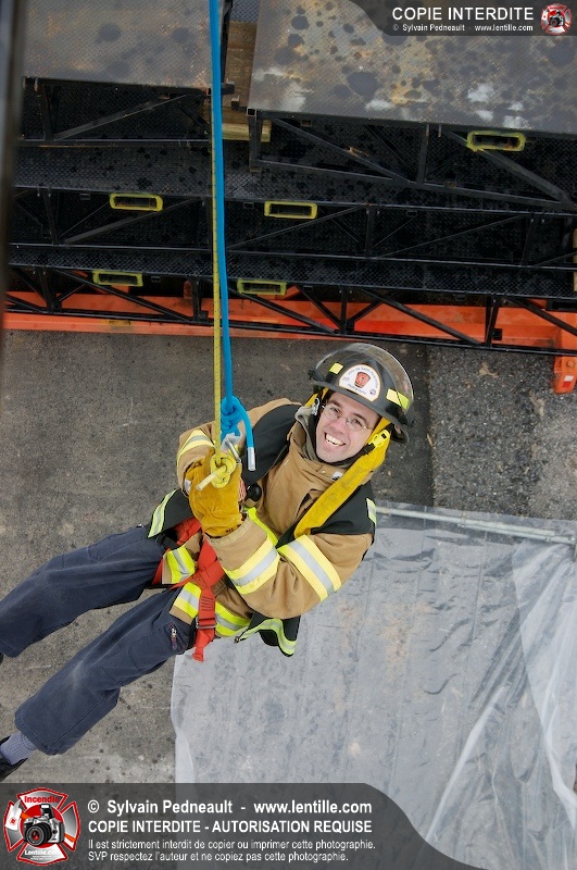 Les pompiers ont profité de l'occasion pour pratiquer leurs techniques et parfaire leurs connaissances du sauvetage en hauteur à travers différents types de descentes. Toujours soucieux d'impliquer à fond leurs collaborateurs, les pompiers ont même offert une descente au vice-président exécutif de FRACO M. François Villeneuve, ainsi qu'au photographe incendie Sylvain Pedneault :)