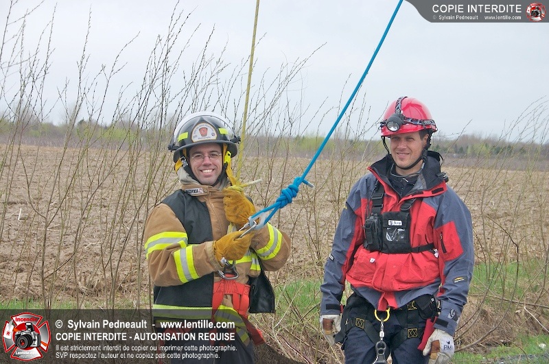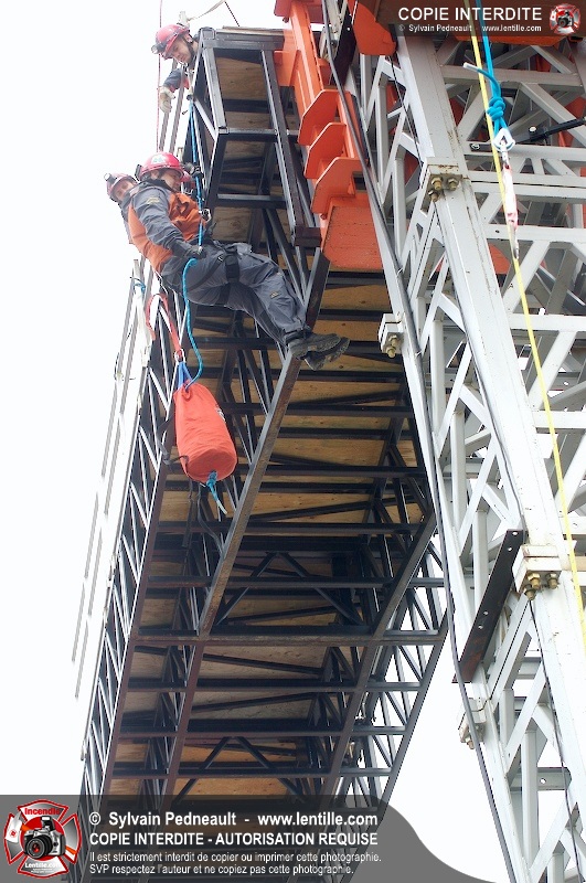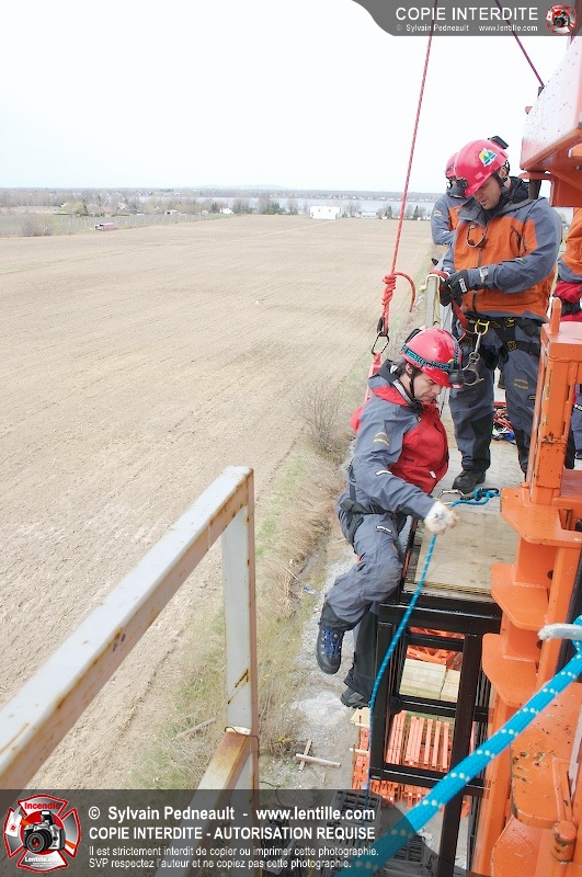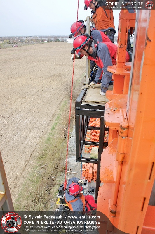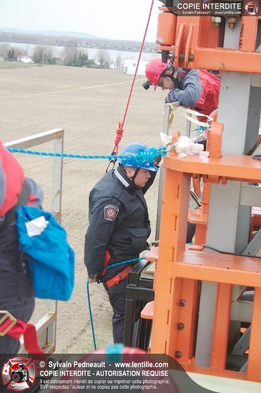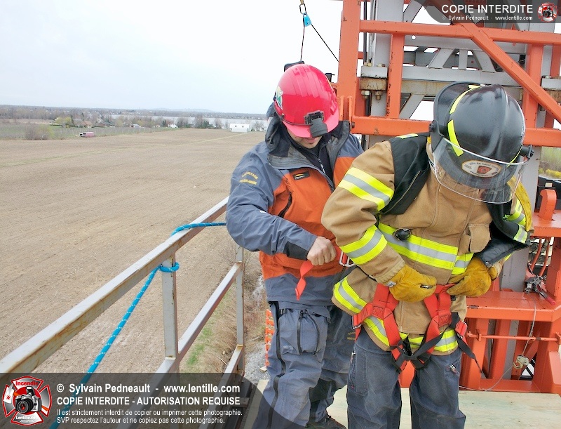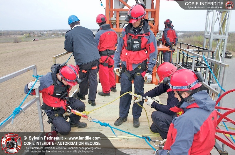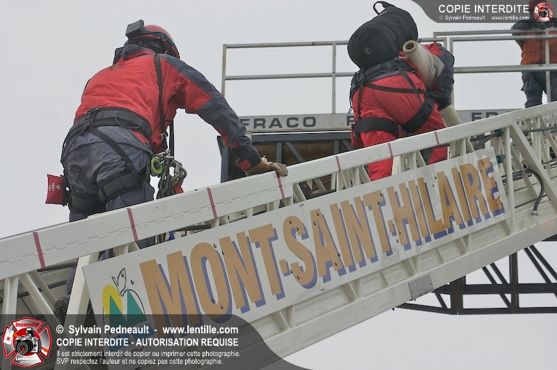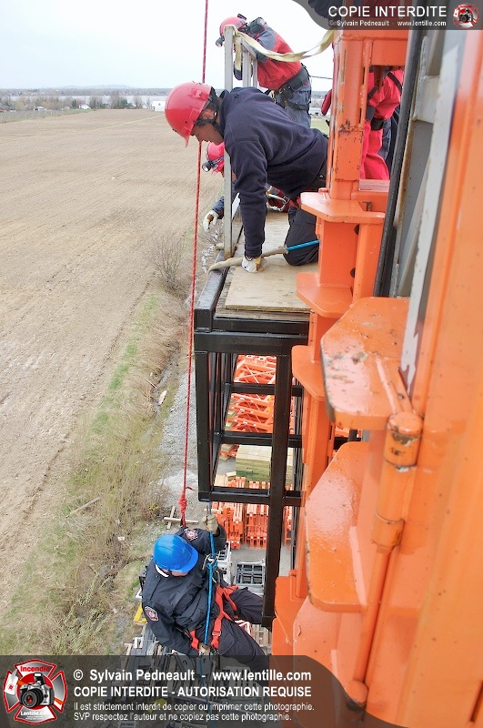 Les pompiers ont profité de l'occasion pour pratiquer leurs techniques et parfaire leurs connaissances du sauvetage en hauteur à travers différents types de descentes. Toujours soucieux d'impliquer à fond leurs collaborateurs, les pompiers ont même offert une descente au vice-président exécutif de FRACO M. François Villeneuve, ainsi qu'au photographe incendie Sylvain Pedneault :)