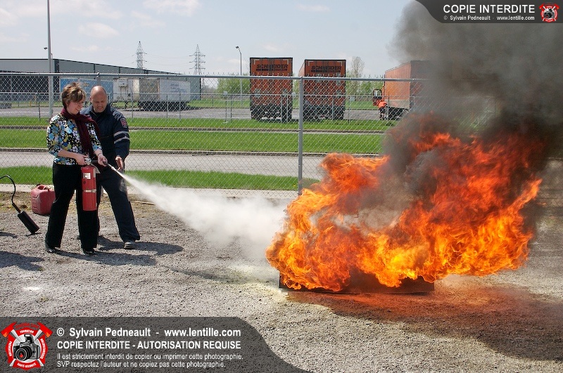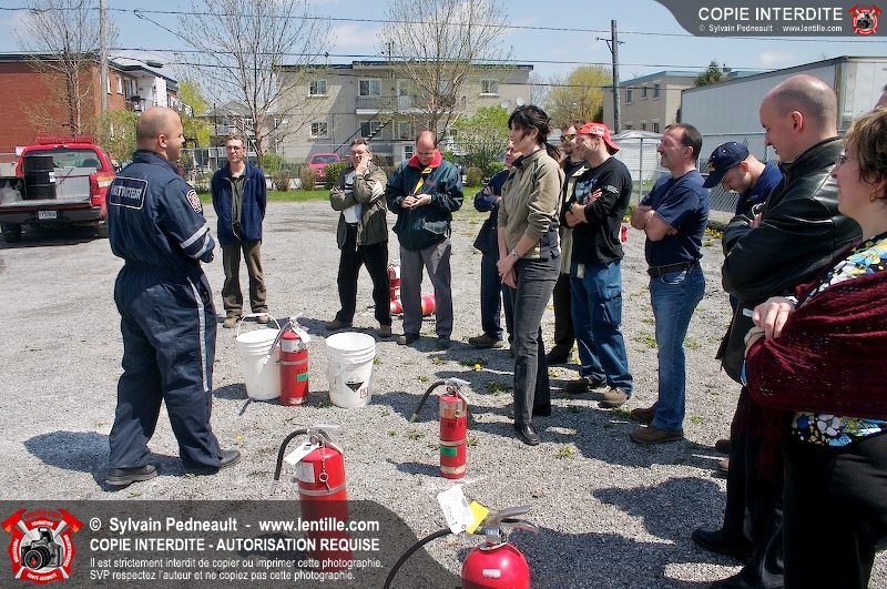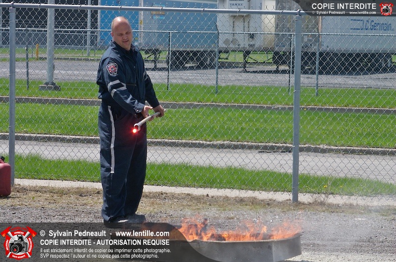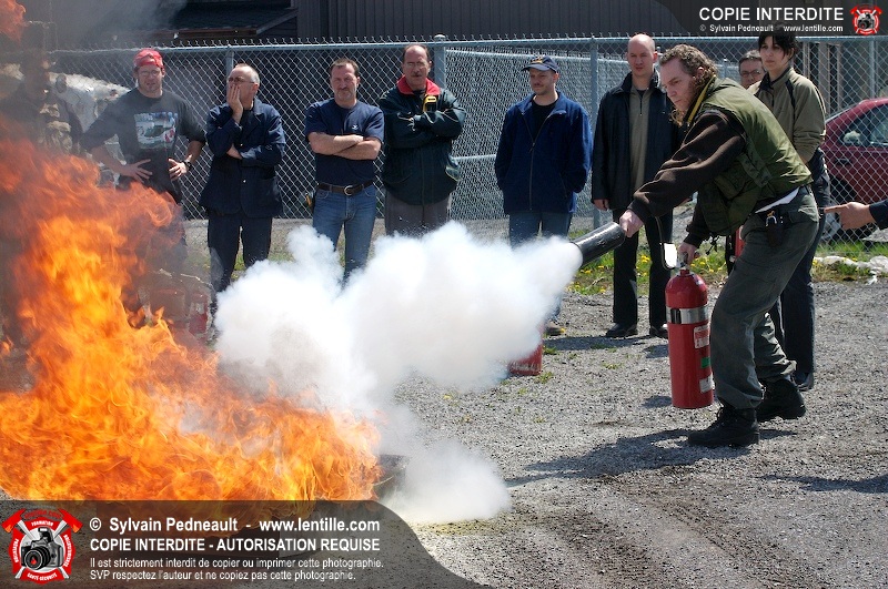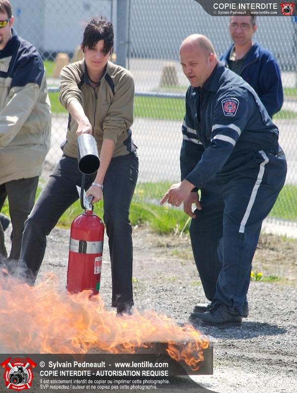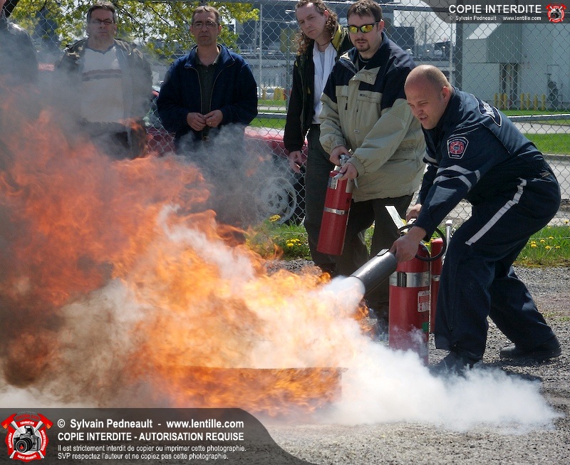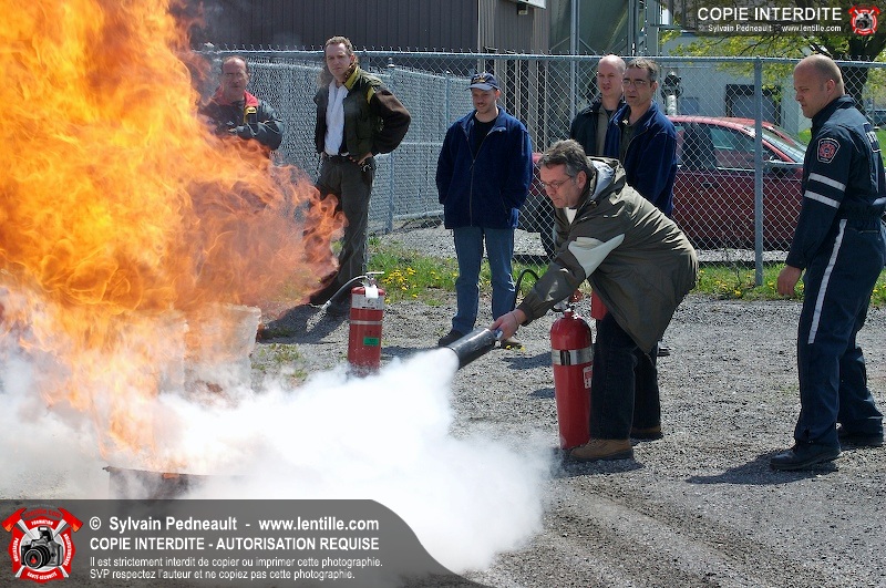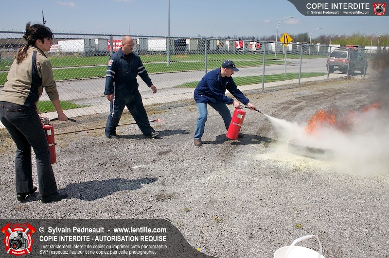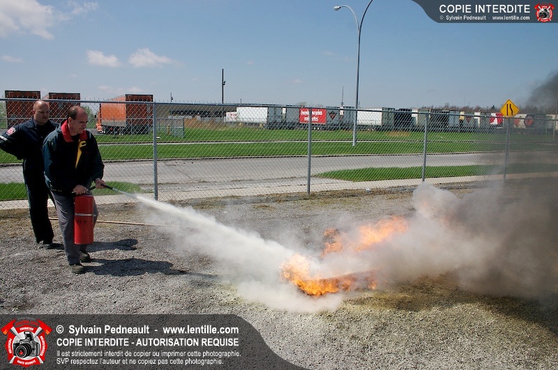 Des employés de l'entreprise CDMV ont participé à une pratique d'extincteurs portatifs avec le Service de sécurité incendie de Saint-Hyacinthe.